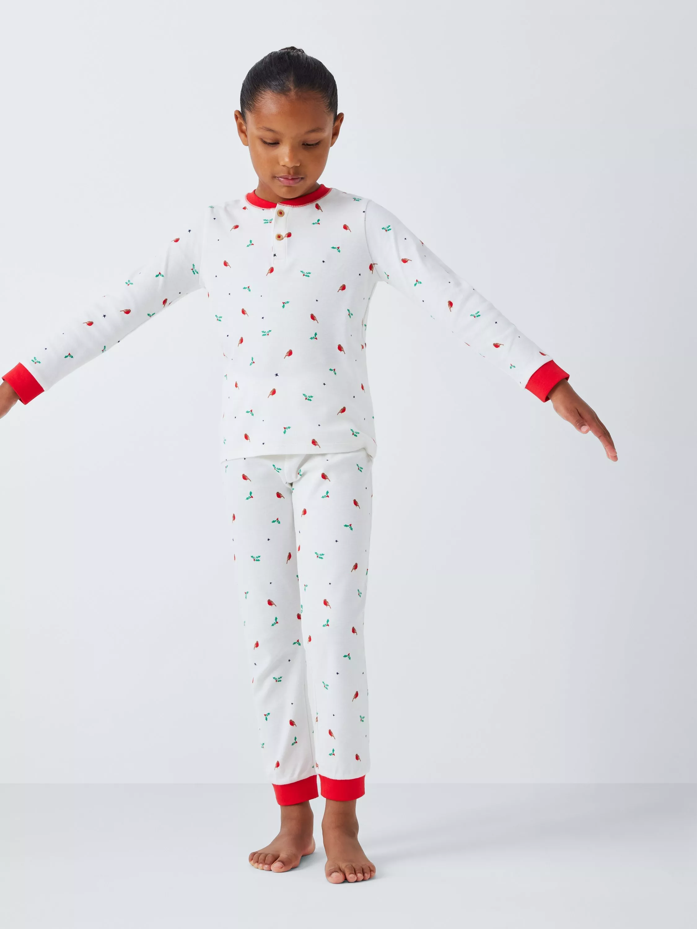 Made from 100% cotton, these pyjamas are covered in robins and hollies for a festive feel. Ribbed cuffs ensure a great fit.