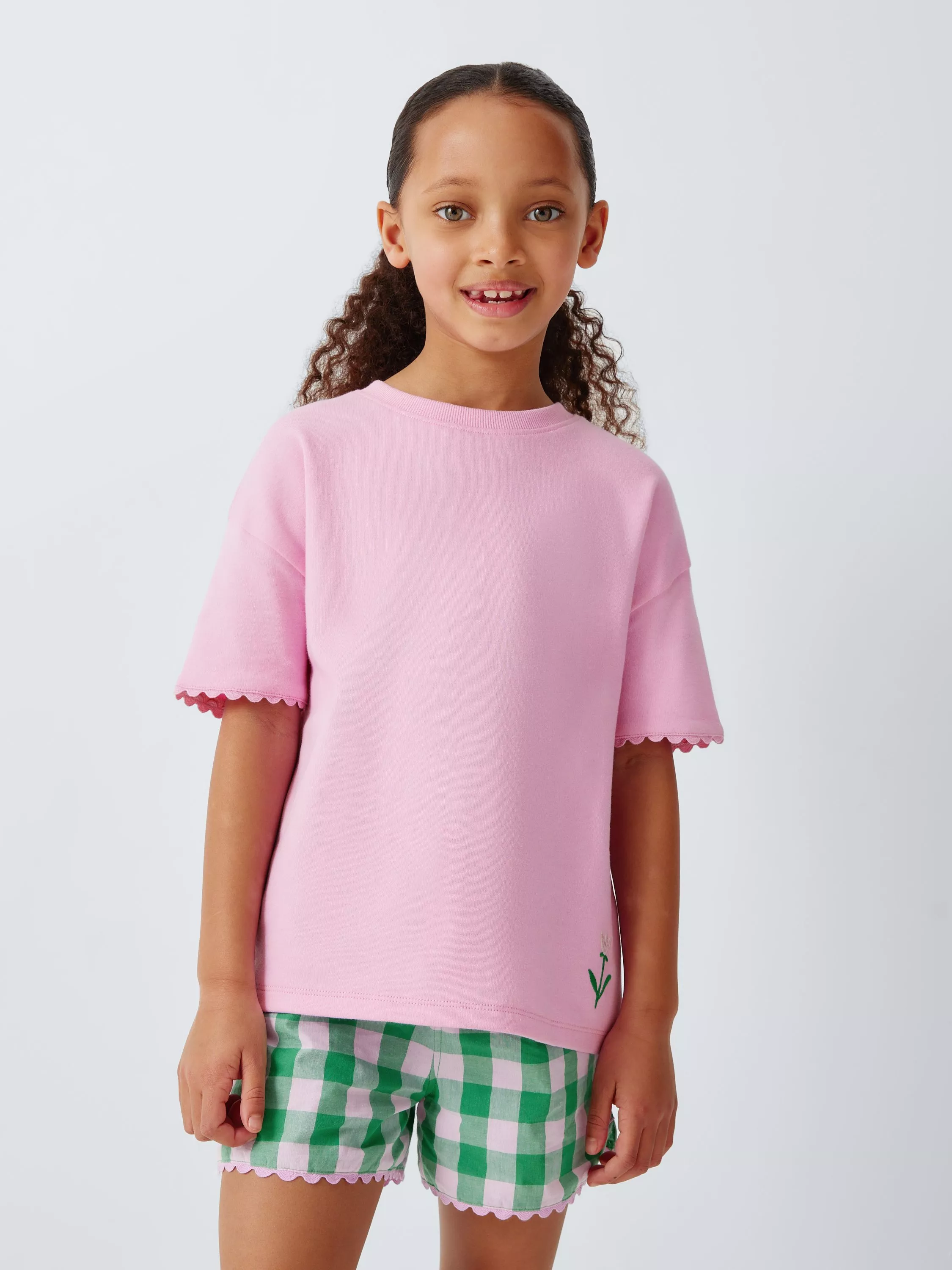 A T-shirt and shorts pyjama set, with scalloped trim details. Made from 100% cotton for guaranteed comfort.