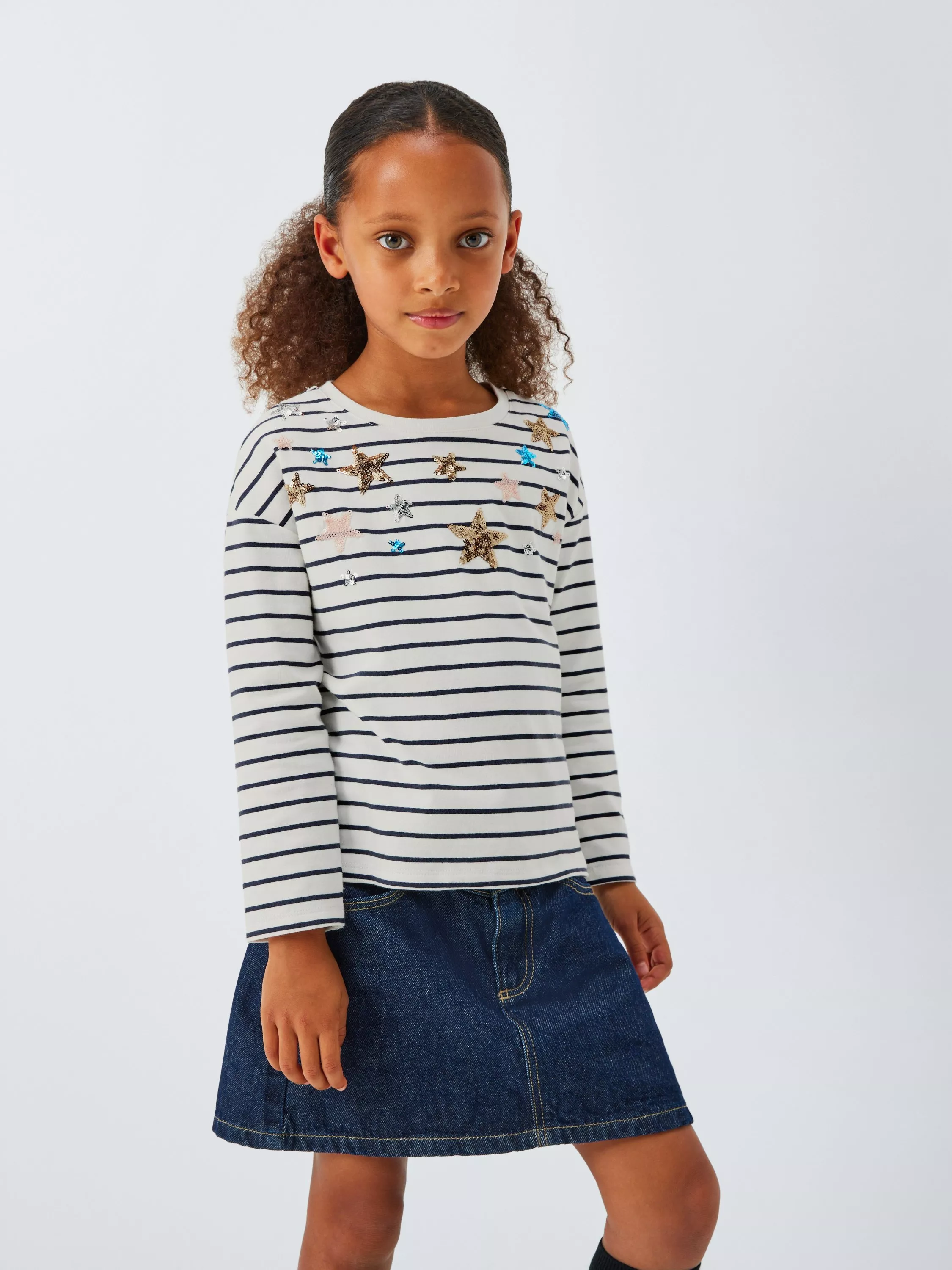 A shimmering, sequin star take on the classic, cotton-rich stripe jersey top.
