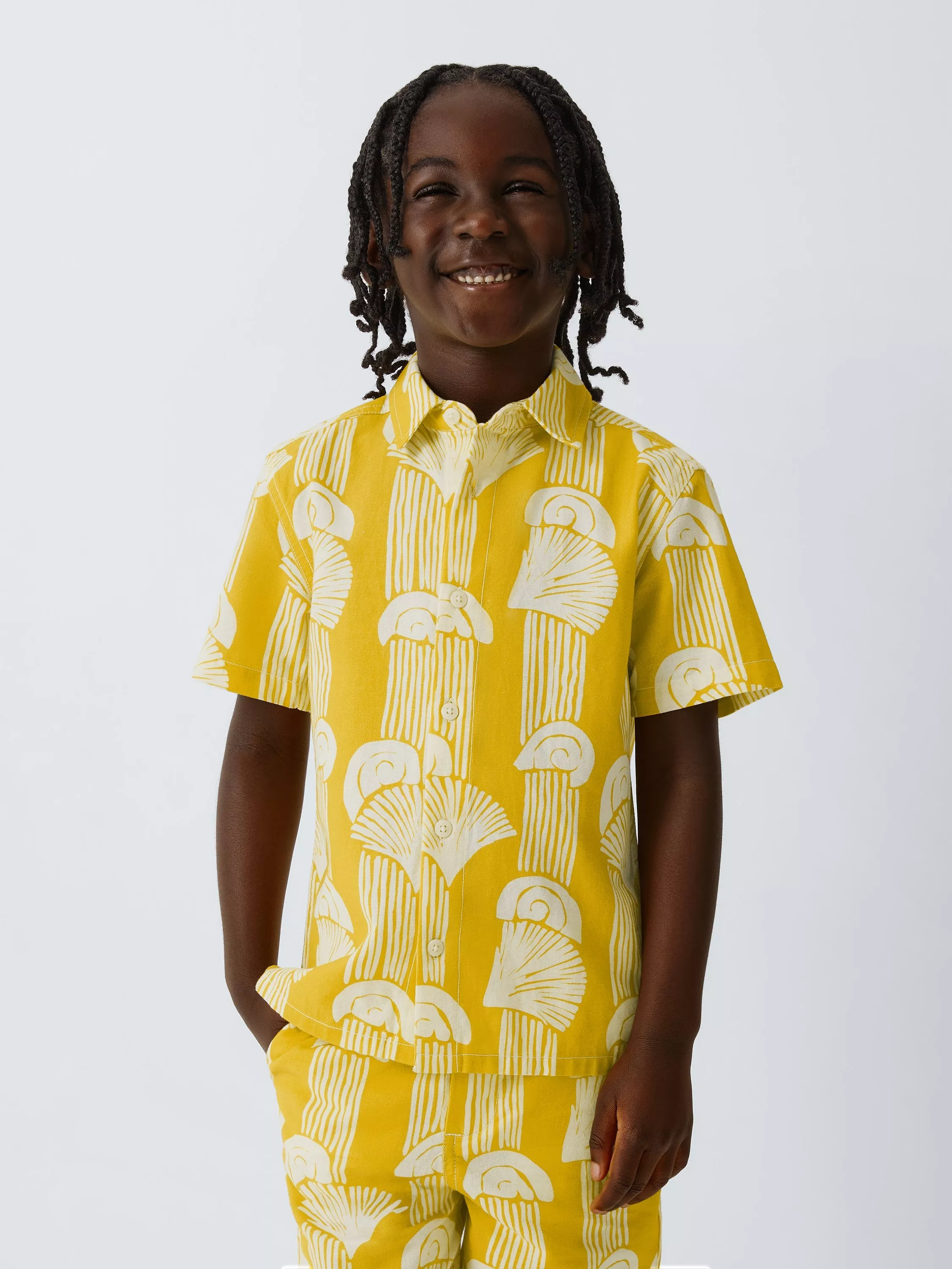 With a summer-ready shell stripe print and a cotton-linen fabric blend, this short-sleeve shirt was designed for fun in the sun.