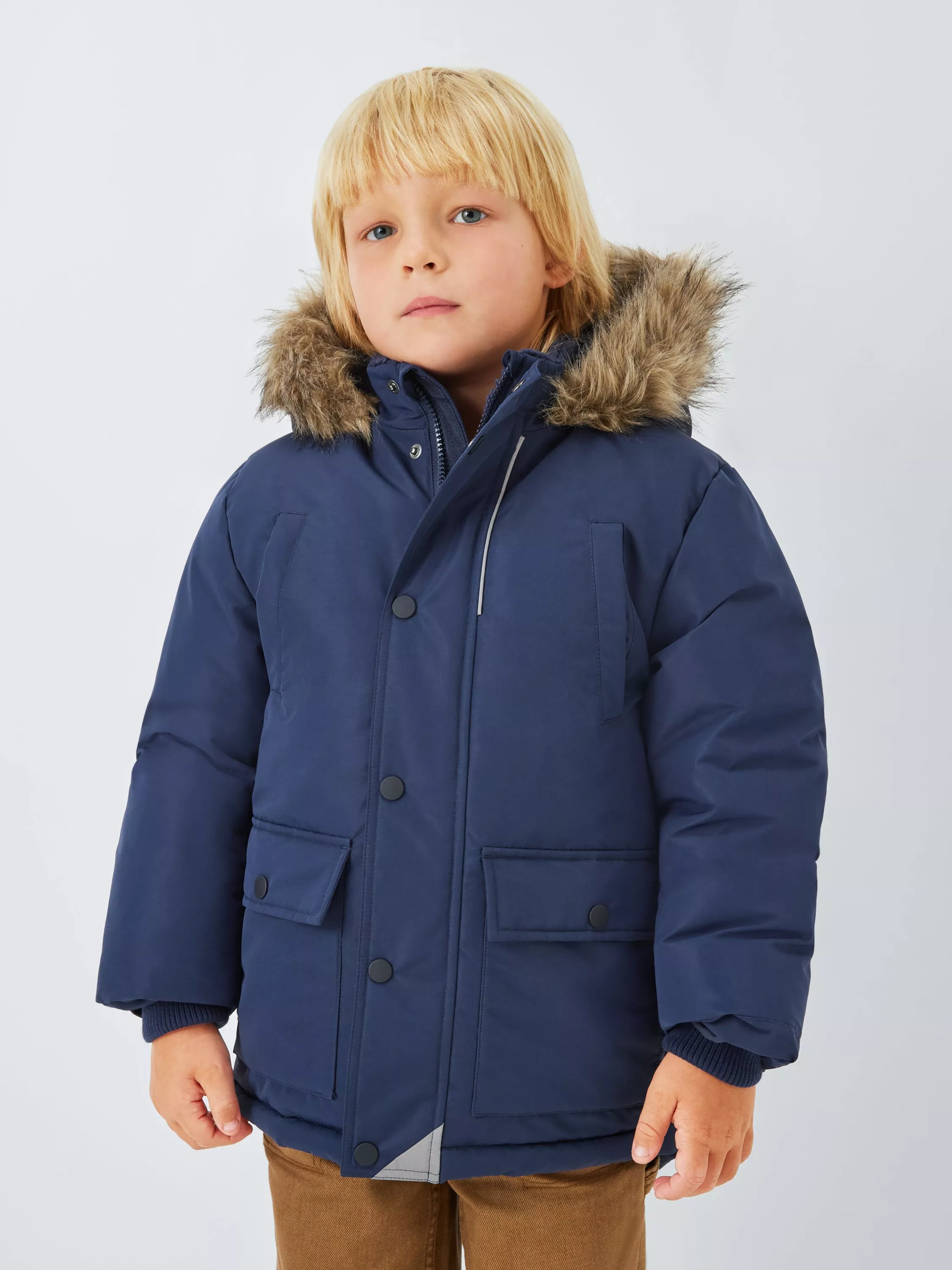 John LewisKids' Shower Resistant Borg Lined Parka, Navy