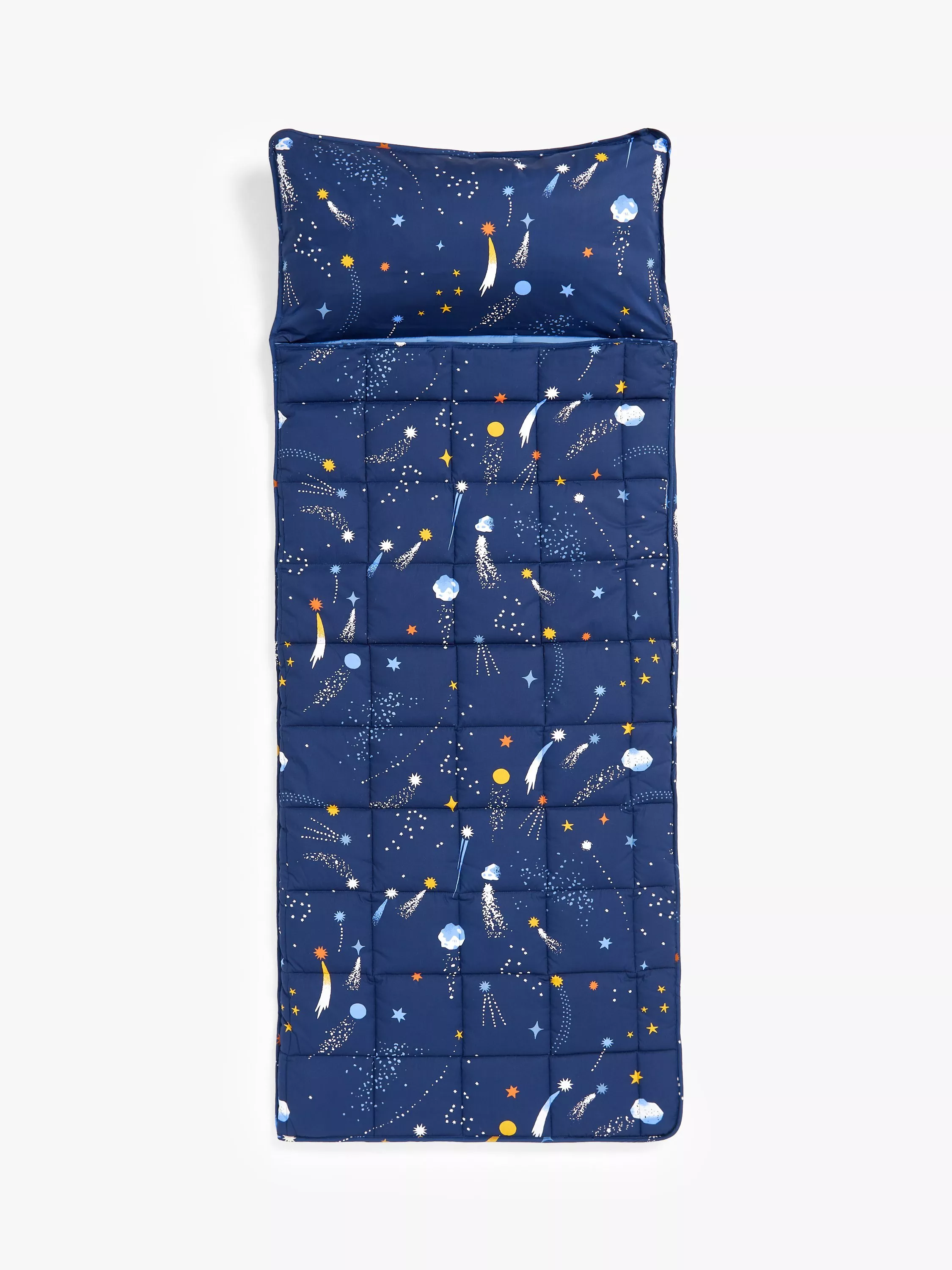 Create a fun sleepover environment for little ones with this cosy and comfy sleeping bag. Made from soft cotton so it's breathable and gentle on delicate skin, this bag features a fun space print that they're sure to love. Once all the fun is done, the bag easily packs away for storage.