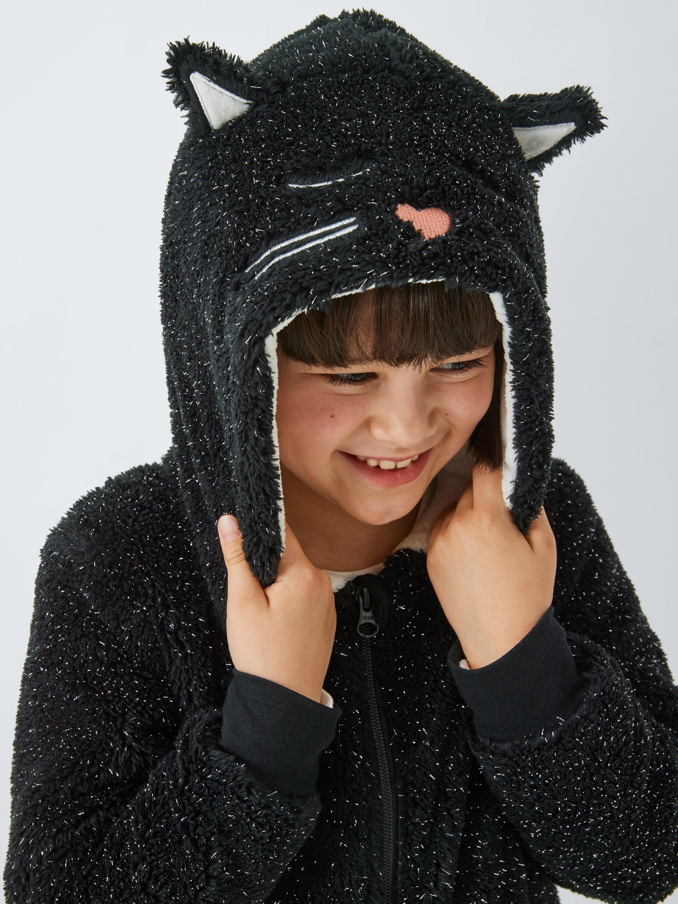 John LewisKids' Sparkle Cat Onesie, Black