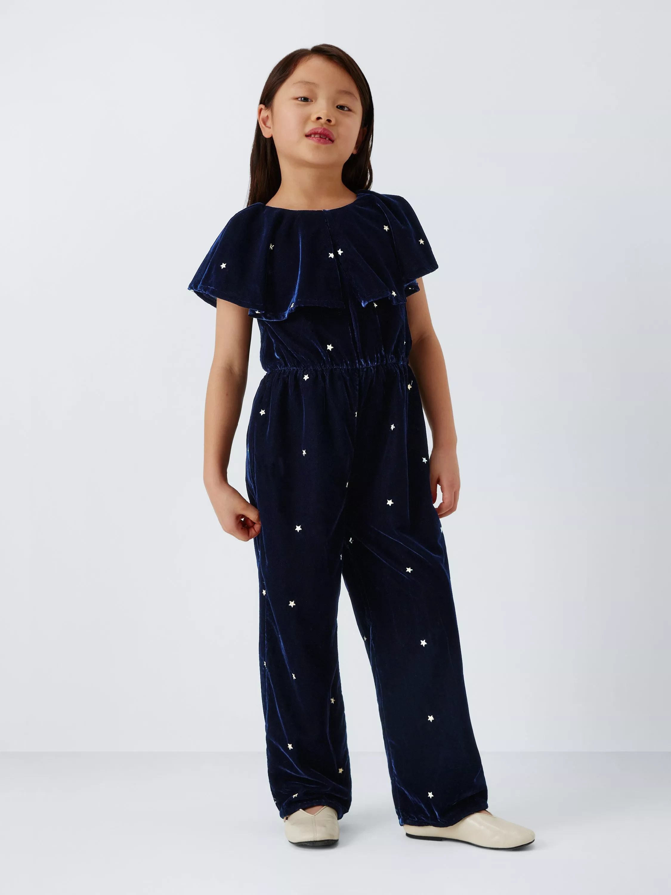 In an all-over velvet with dazzling star detailing, this jumpsuit makes a fun alternative to a party dress.