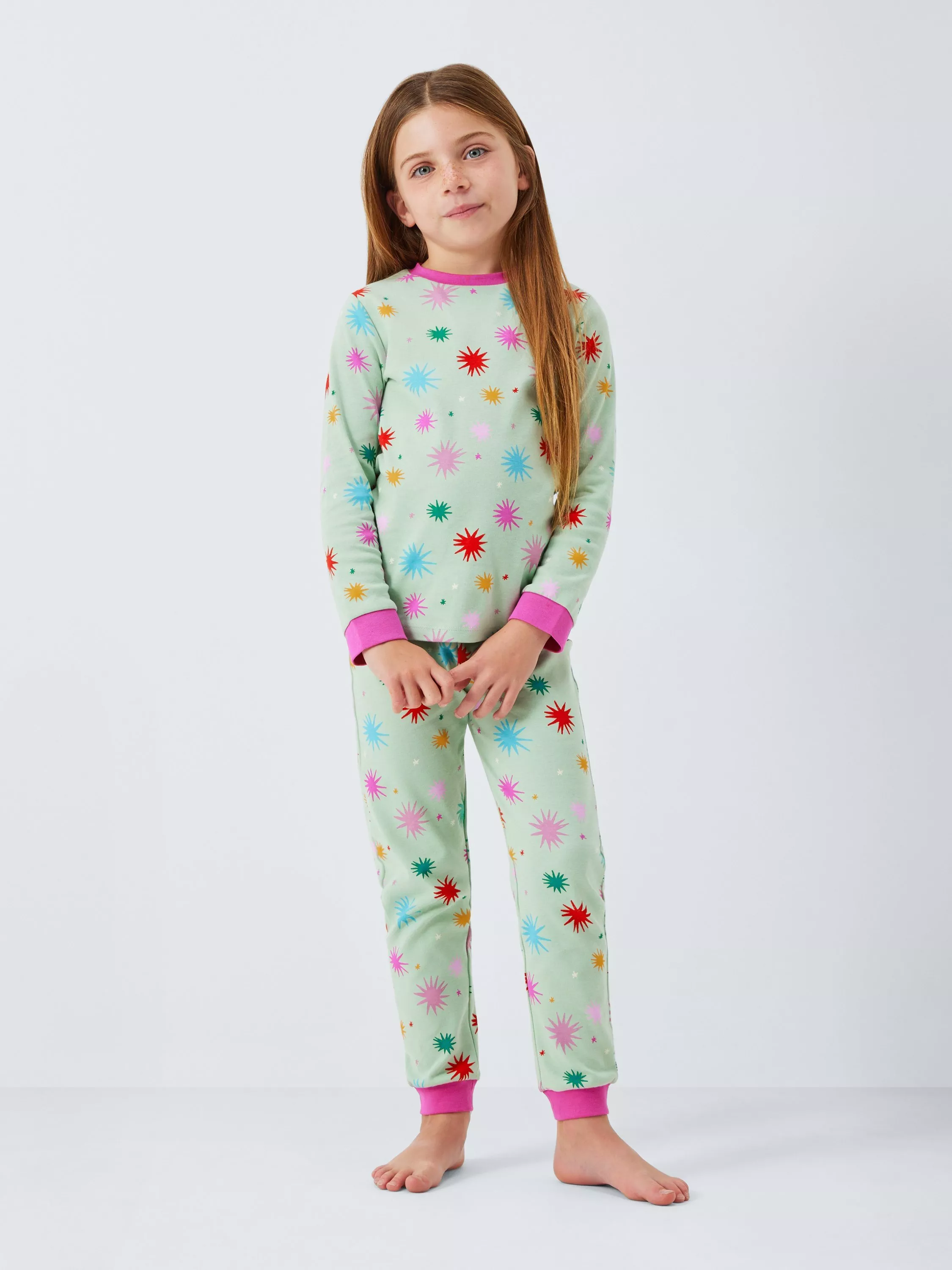 Colourful pyjamas with contrasting trims for an extra pop of colour. Made from pure cotton for softness with an elasticated waistband and cuffs for a snug fit.