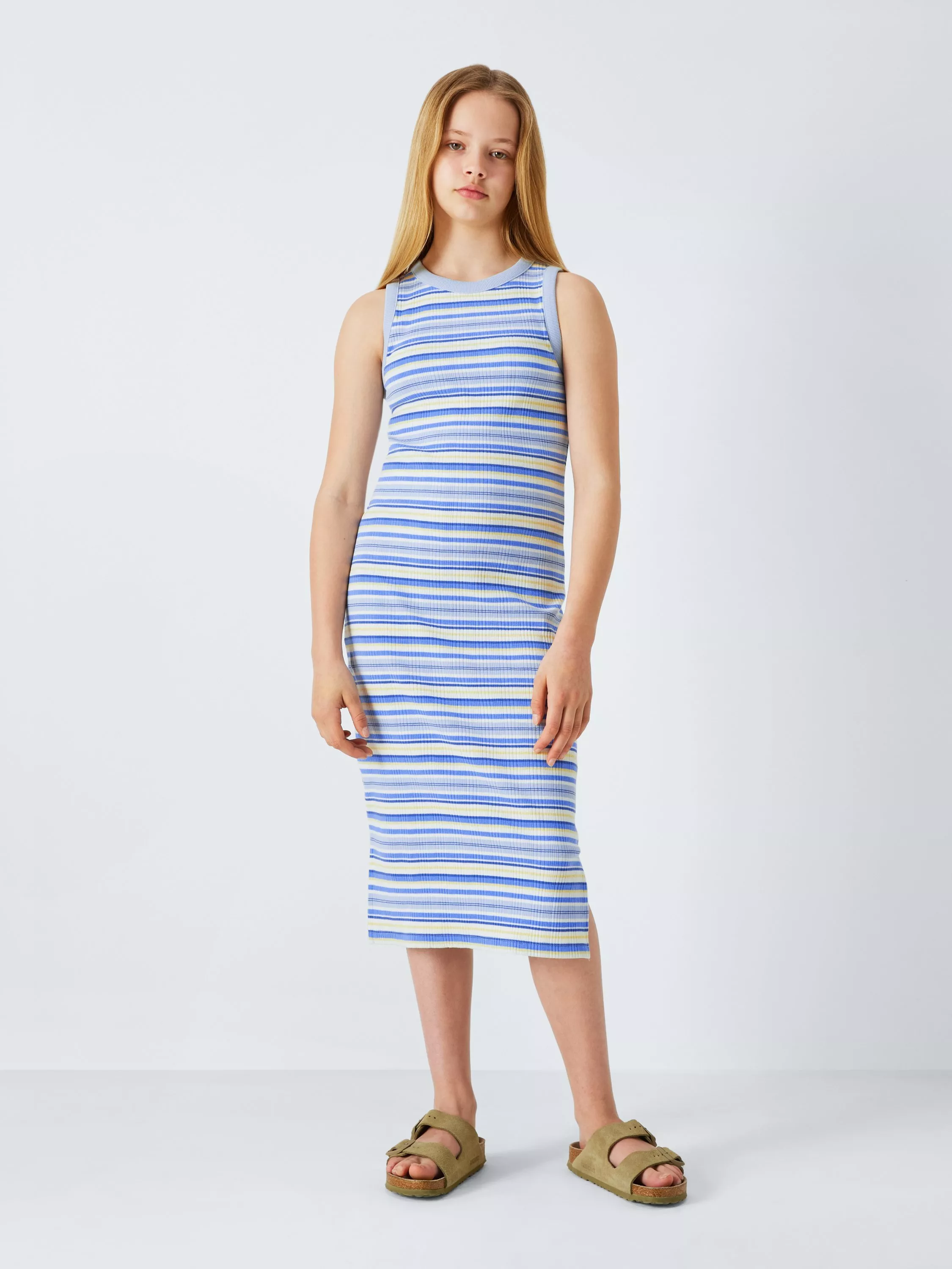 In a stretchy ribbed fabric for a fuss-free fit and feel, this cotton-rich dress comes in a can't-go-wrong stripe with colour contrast neckline and armholes.