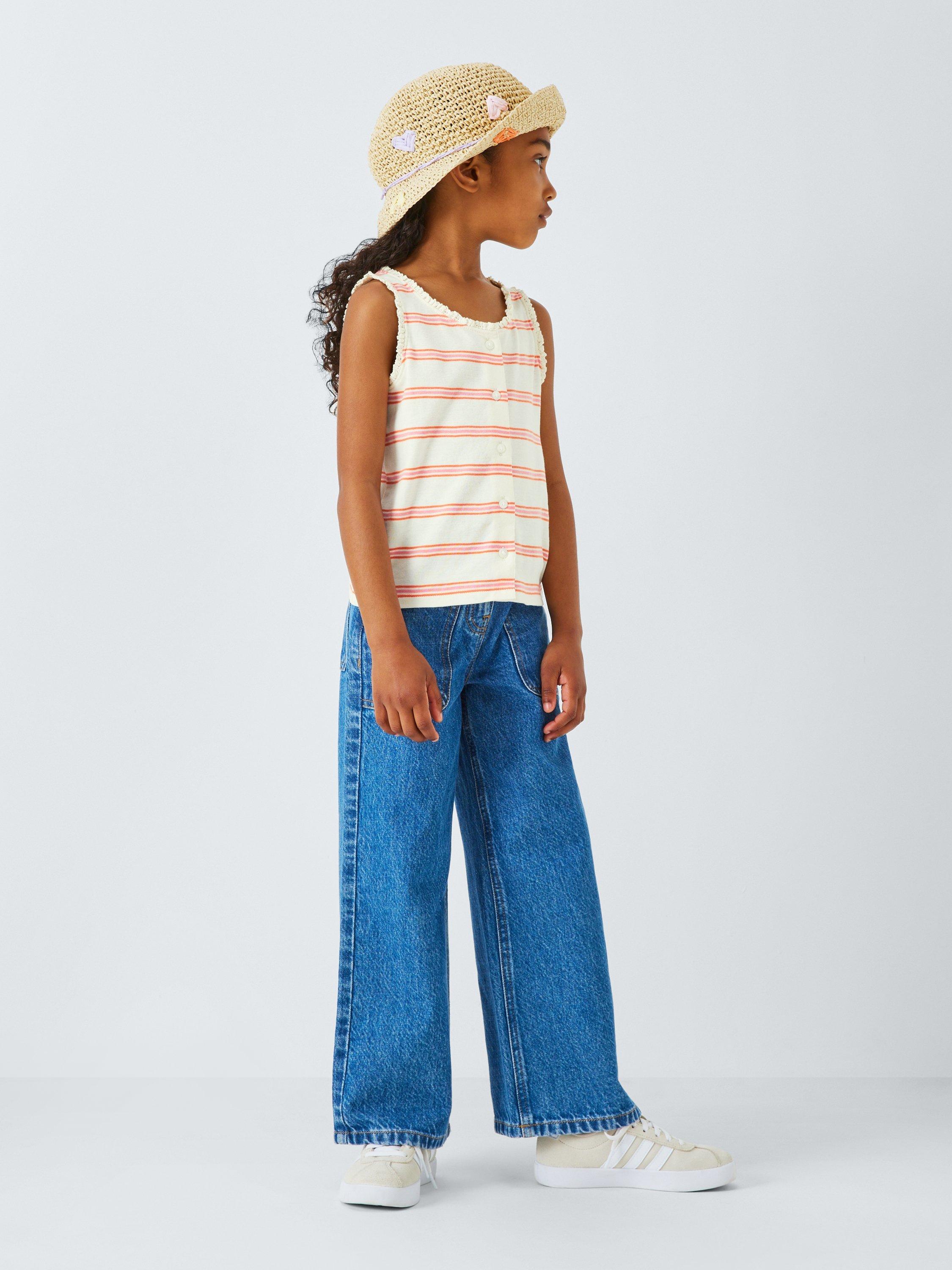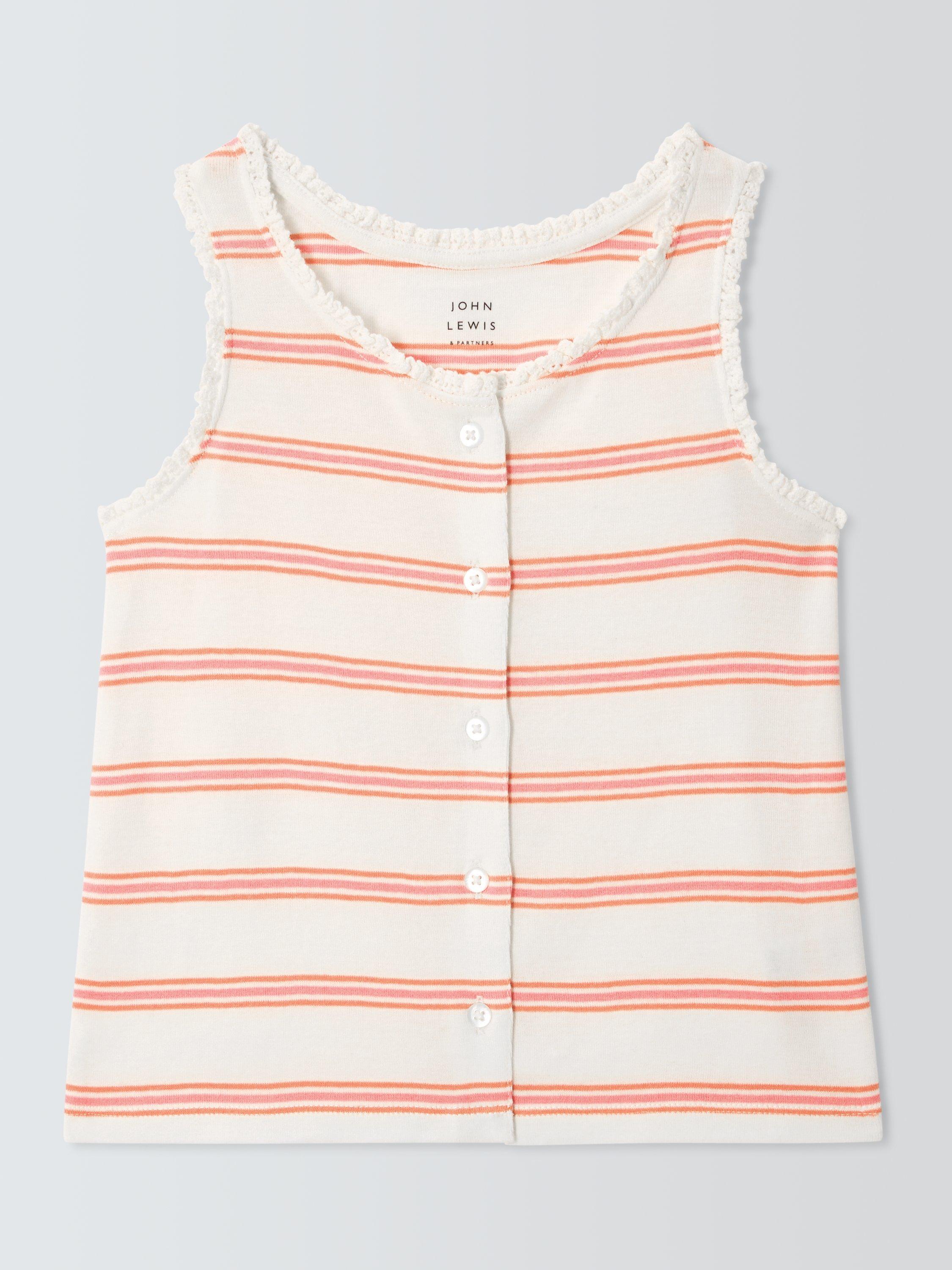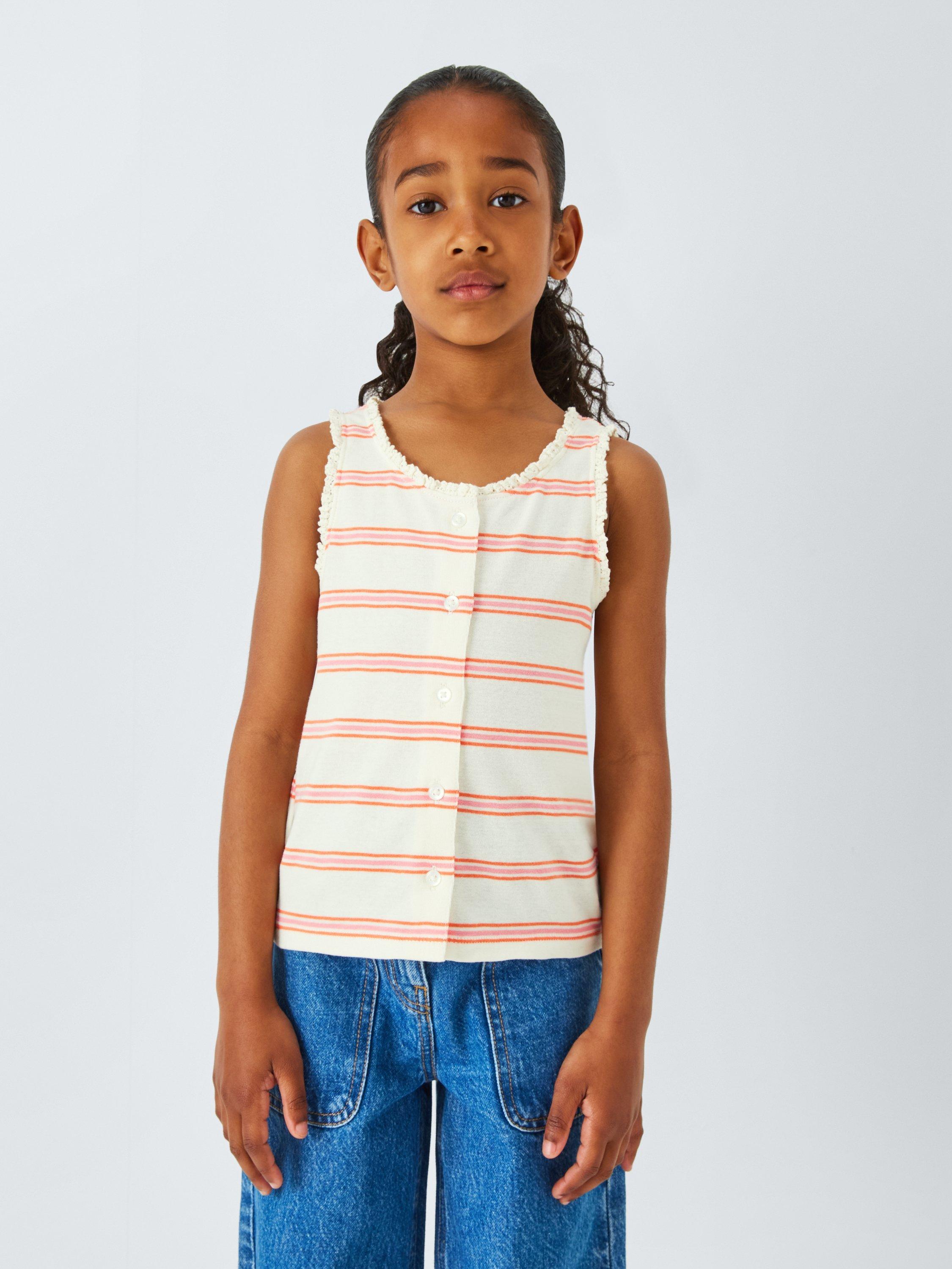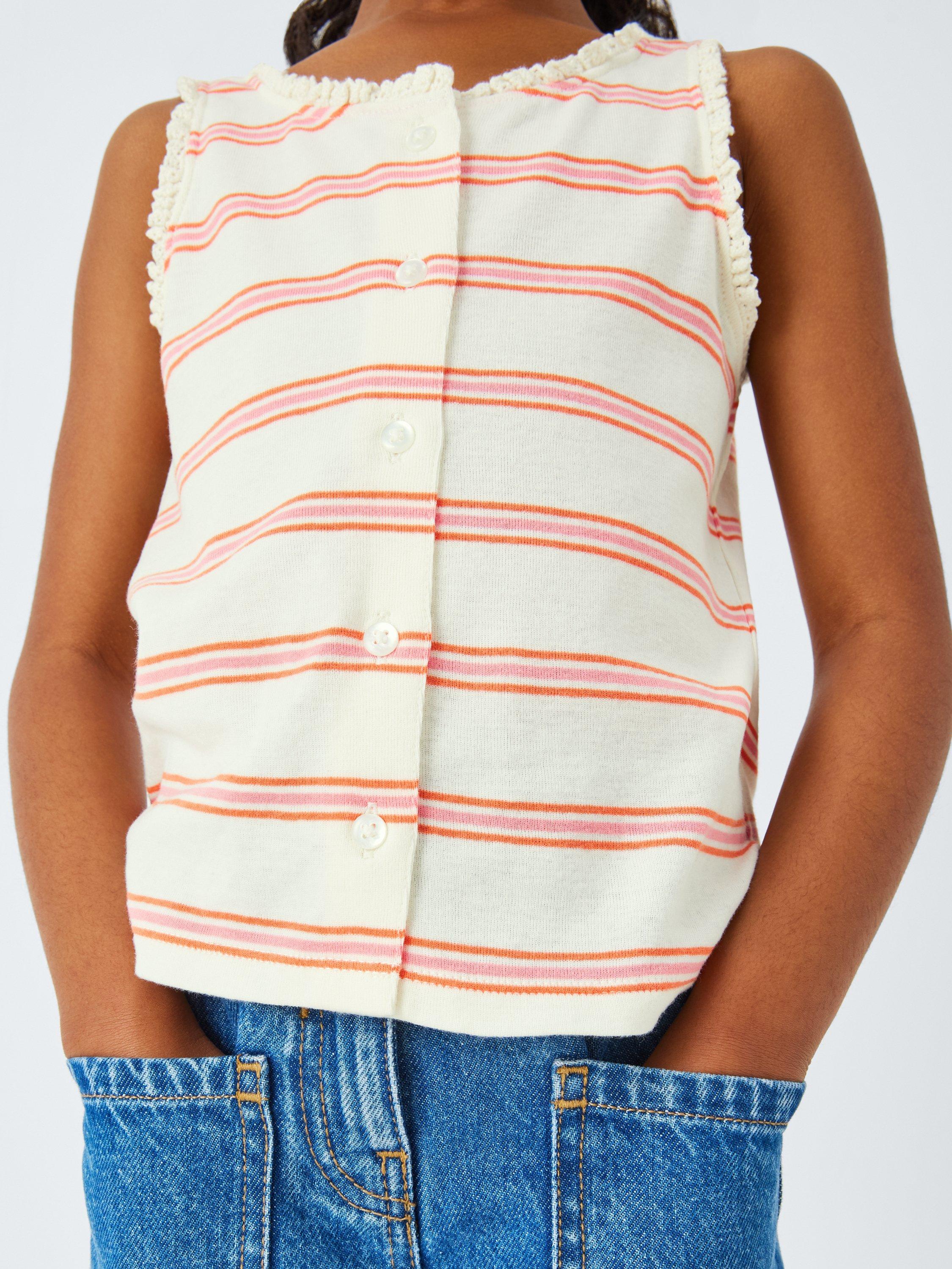 In a soft and breathable cotton that's perfect for hot summer days, this stripe top comes with a smart button detail front and fun frill detailing on the sleeve hole and neckline.