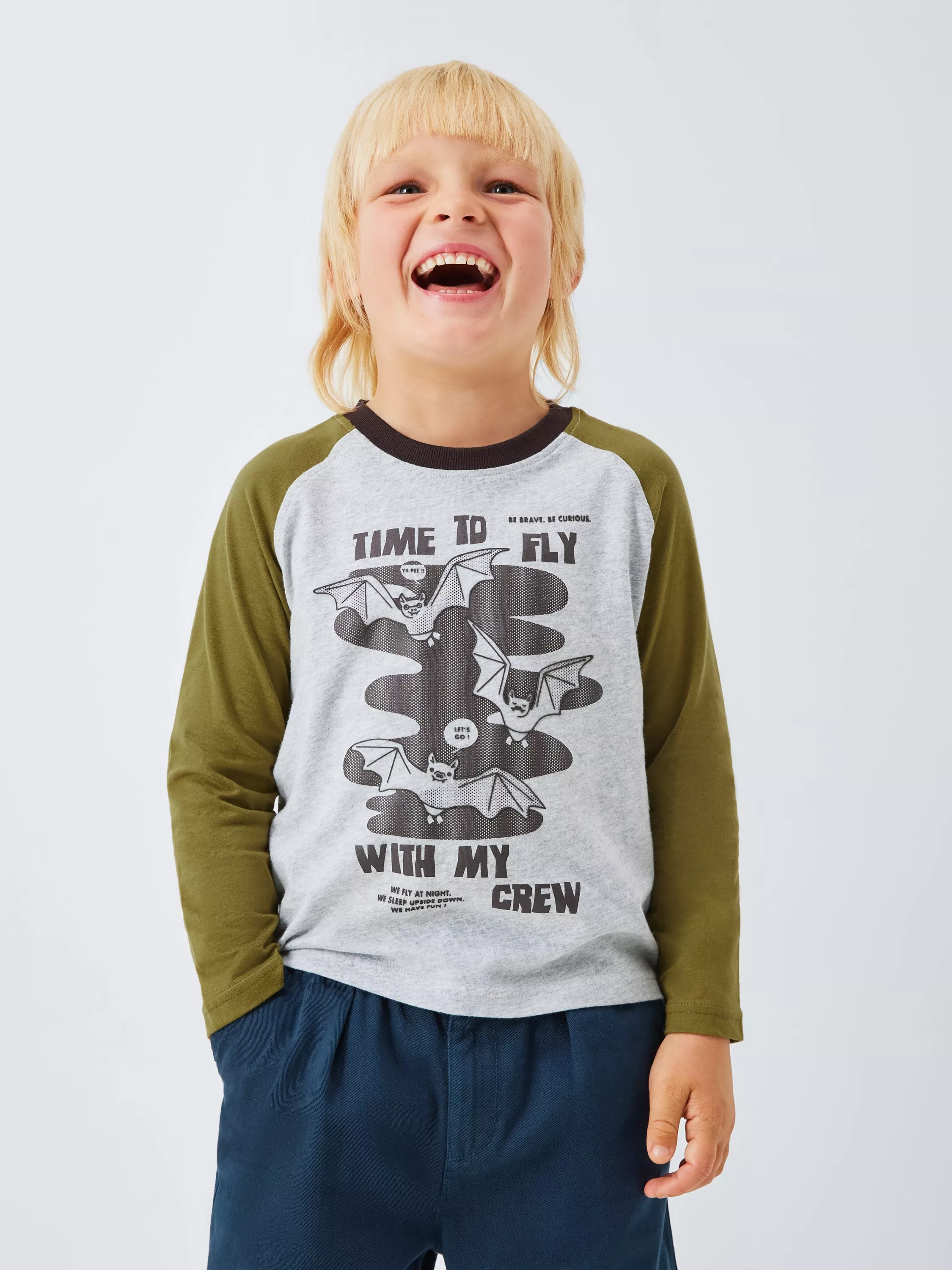 With a fun, bat-themed graphic print, this raglan sleeve top is made from 100% comfy cotton.