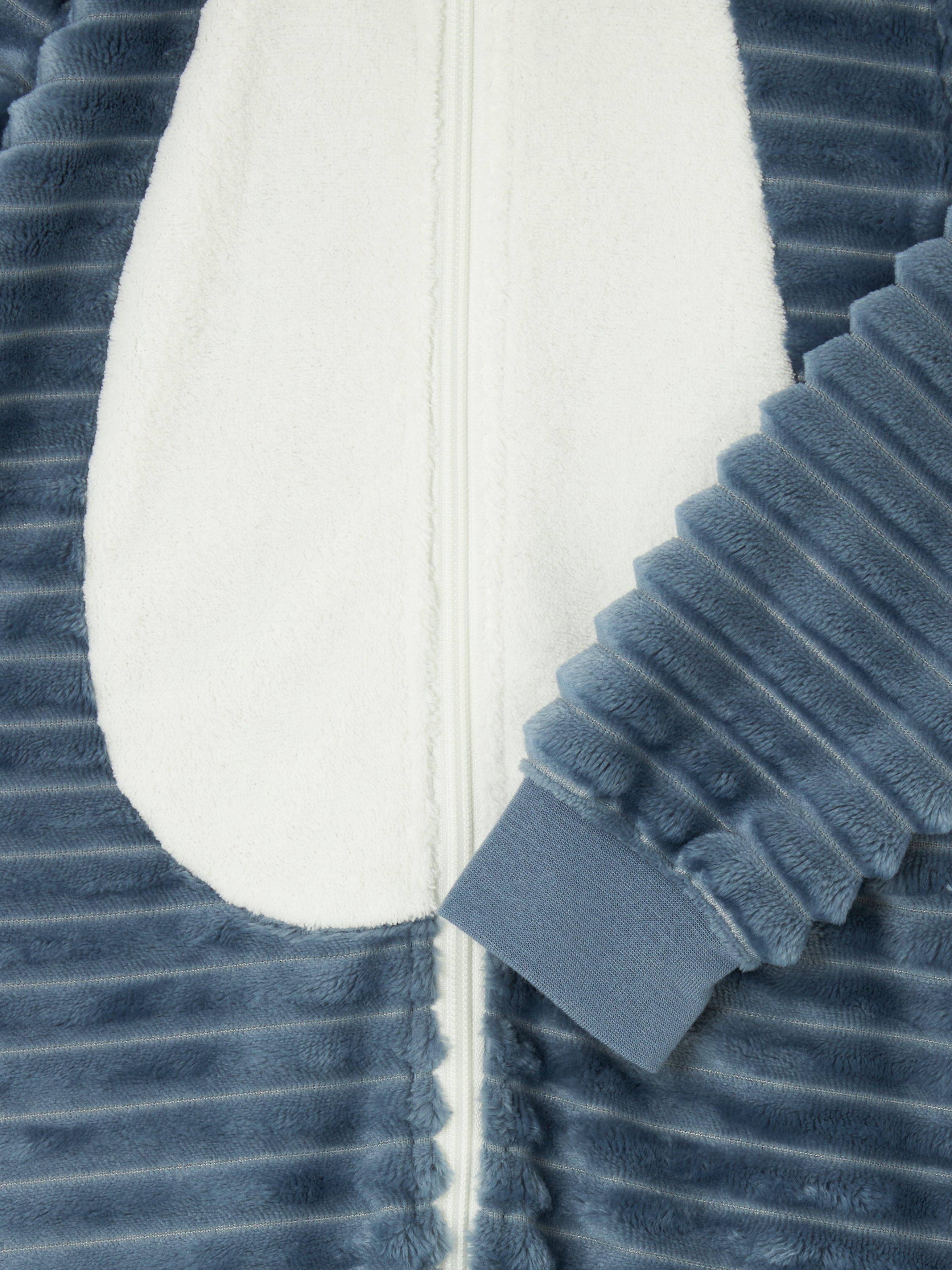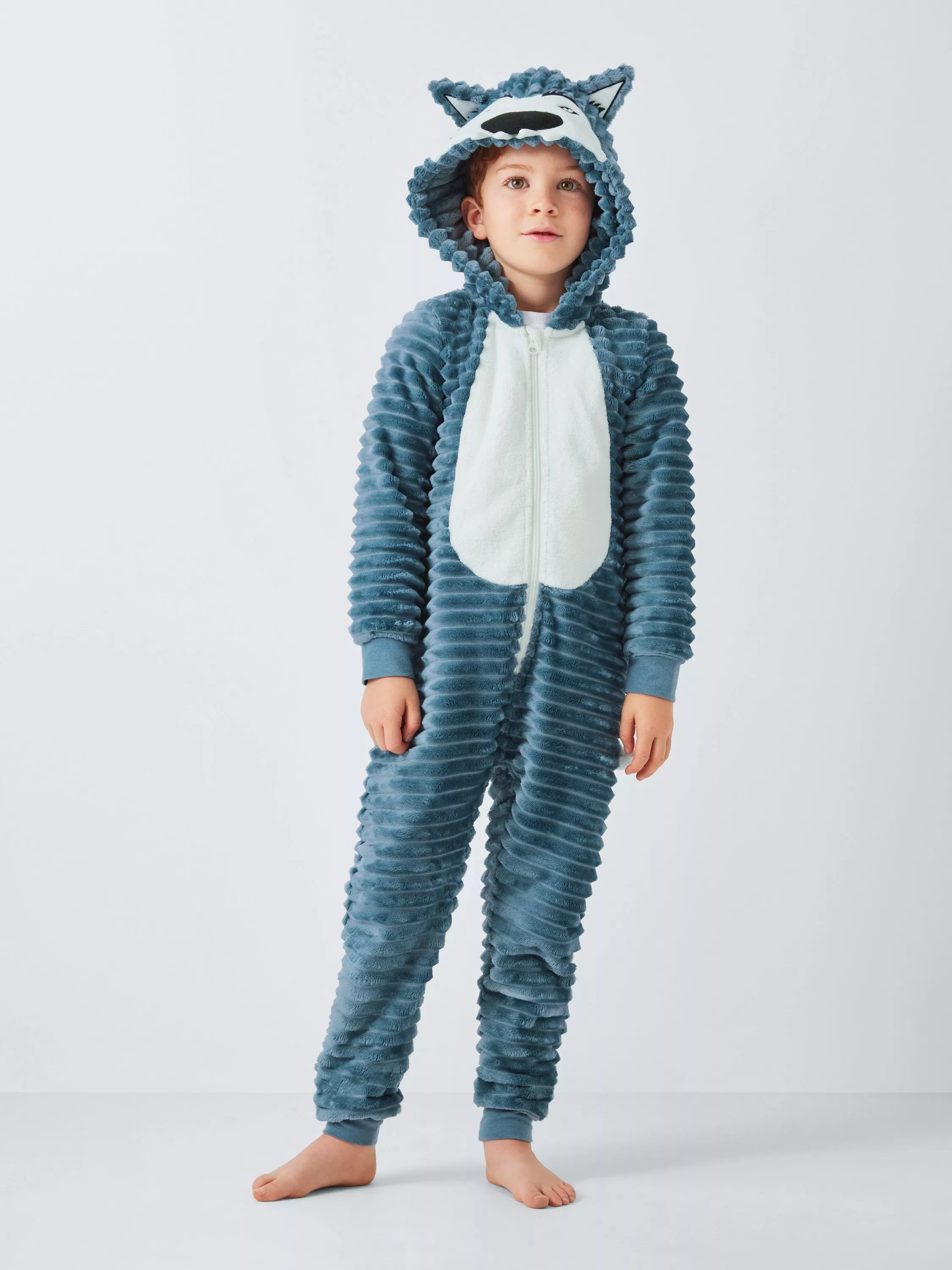 Soft and warm, this ribbed onesie comes with a fearsome werewolf face on the hood and a tail to the back. The ribbed cuffs ensure a great fit while the zip-through front makes for easy dressing.