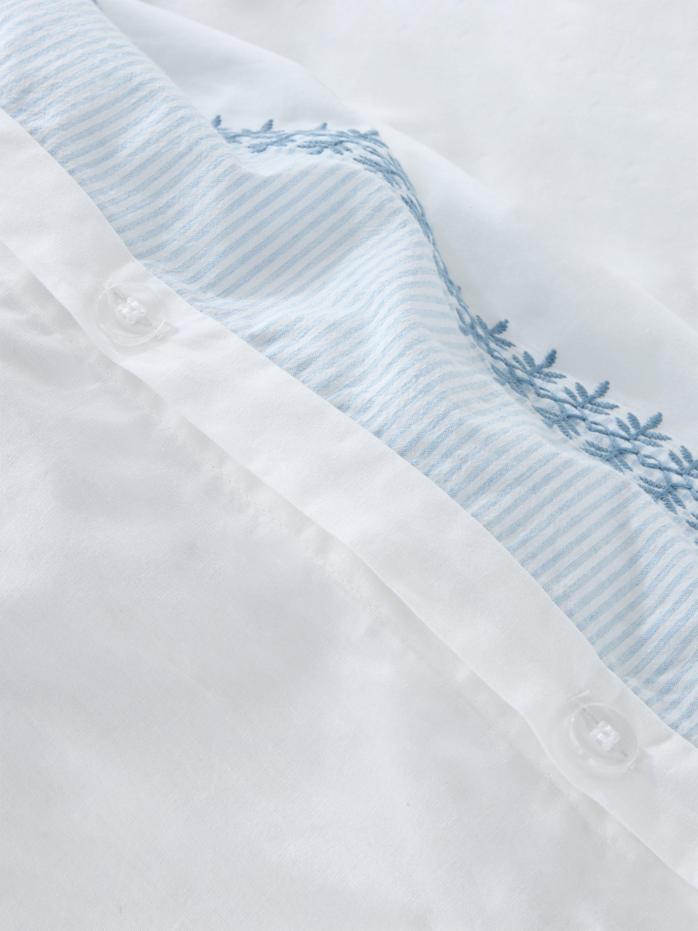 This fresh and pretty duvet cover set features a striped border with small floral embroidery. Made from naturally breathable cotton, it's perfect for summer.