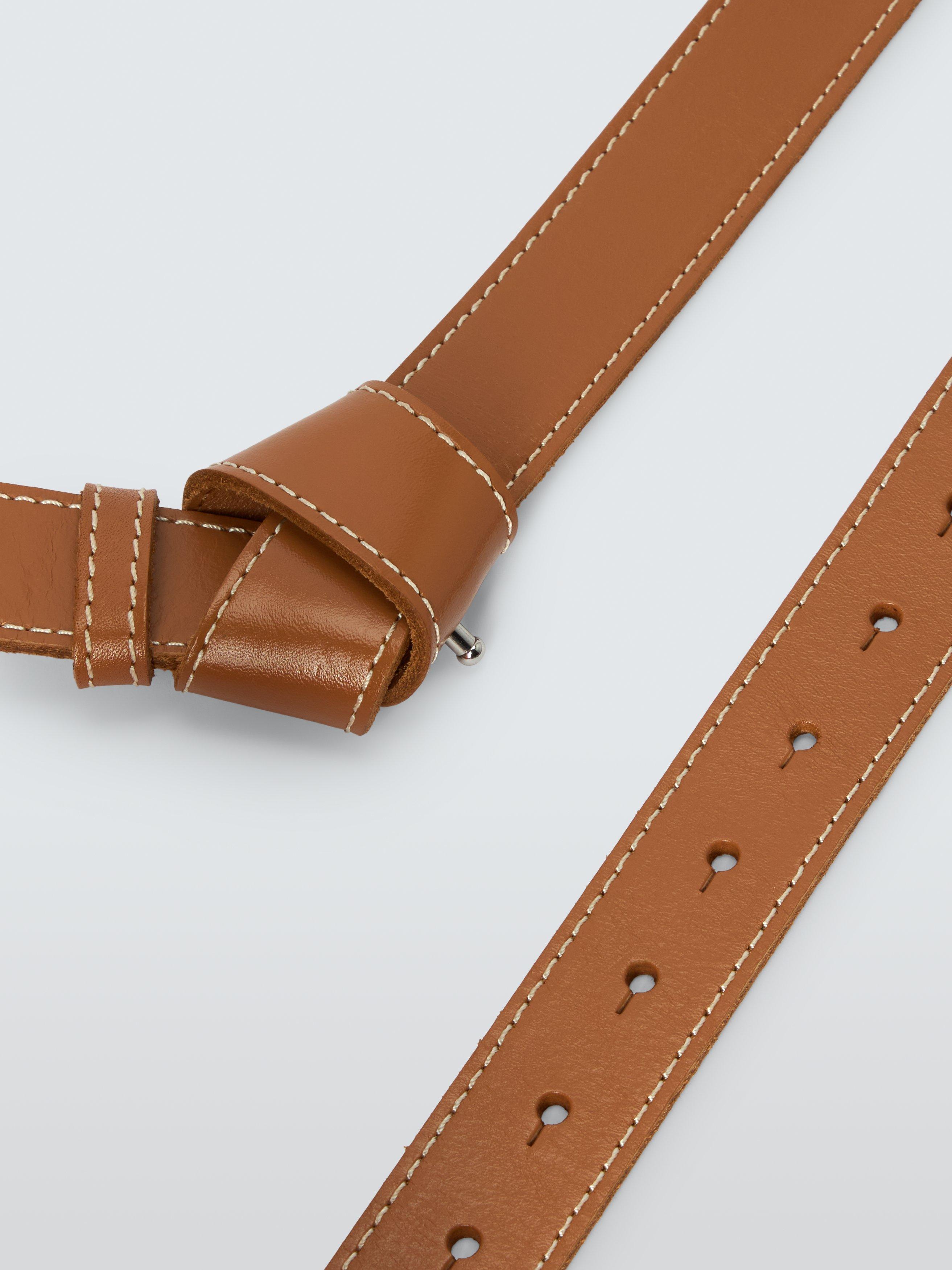 With a knot front and topstitch detailing, this leather belt gives an outfit a modern edge.