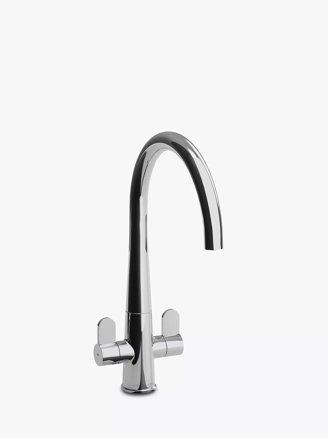 A contemporary swan neck design by a European architect, the John Lewis & Partners Kone kitchen tap is a two-lever model with a cone-shaped base. The paddle handles make it easy to control the hot and cold water flowing out of a single spout. The spout has 360-degree rotation so you can direct exactly where the water comes out over your sink.