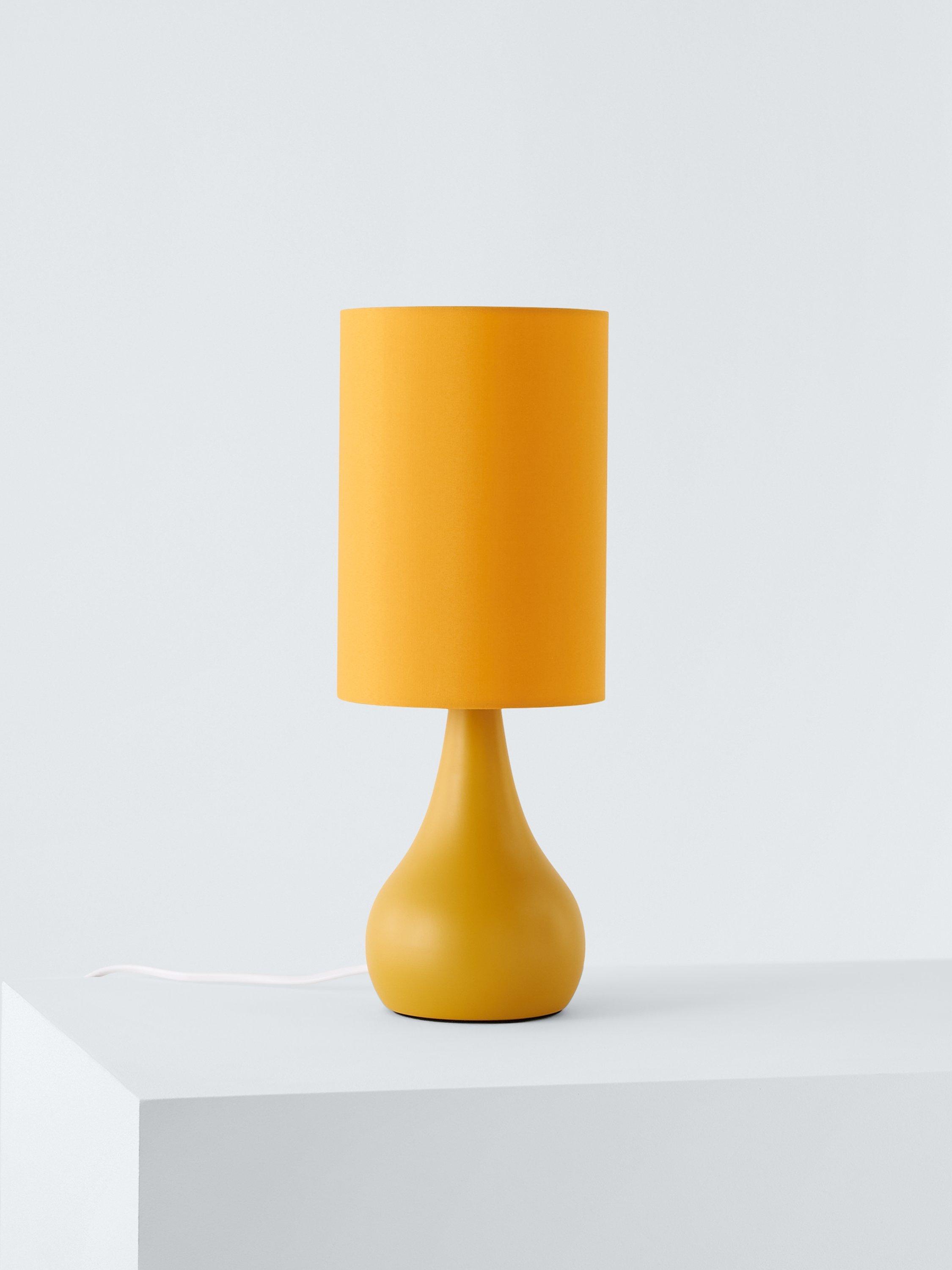 With a fluid, teardrop-shaped base and tall cylinder lampshade, this modern table lamp is ideal for your bedside. Its touch functionality offers three light levels. Simply tap the base once to turn it on, again to make it brighter, and a final time to turn it off.