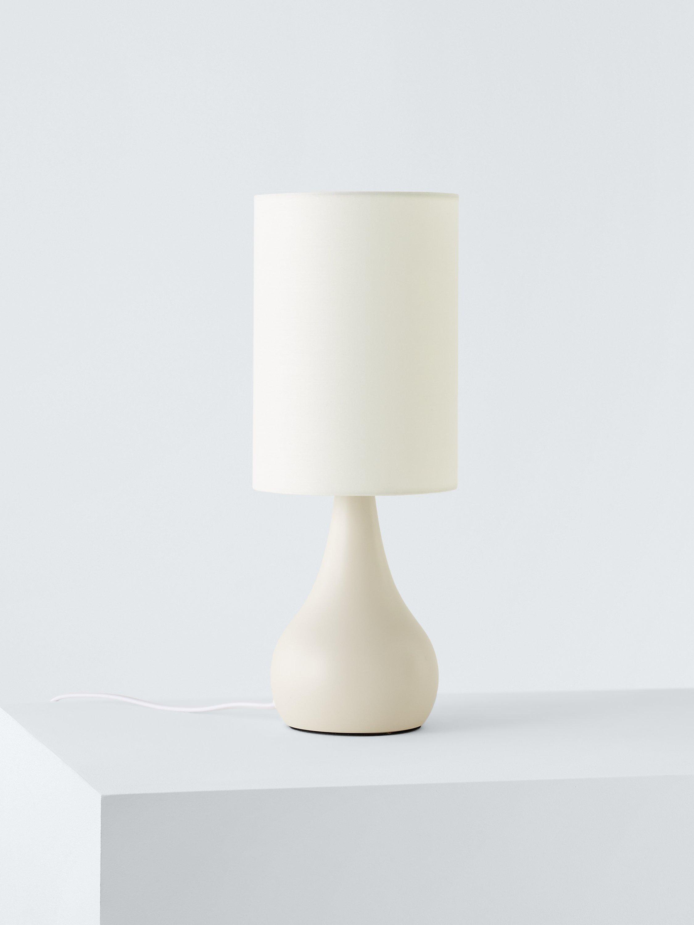 With a fluid, teardrop-shaped base and tall cylinder lampshade, this modern table lamp is ideal for your bedside. Its touch functionality offers three light levels. Simply tap the base once to turn it on, again to make it brighter, and a final time to turn it off.