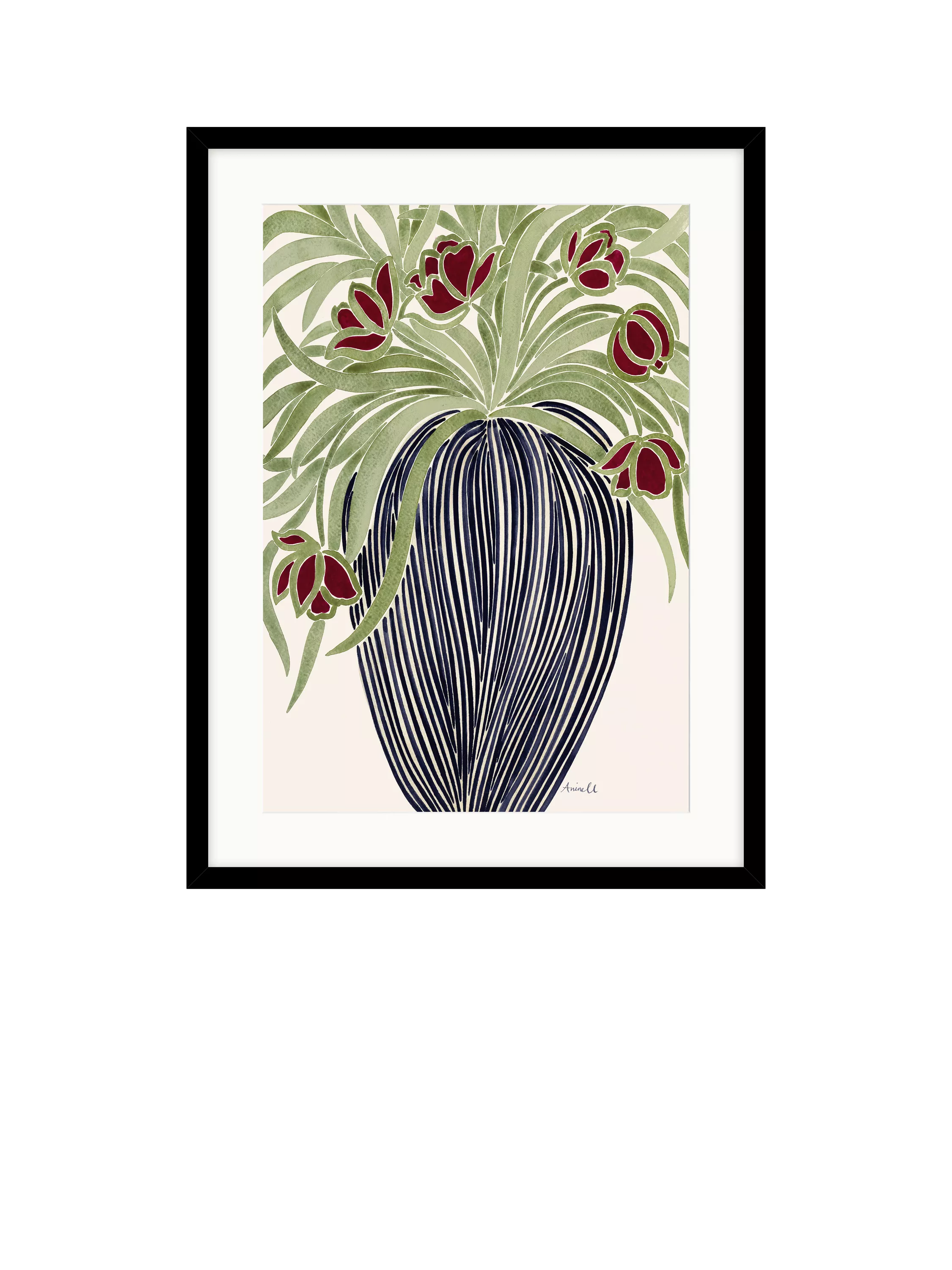 Framed floral print by La Poire. Made in the UK, the print is glazed, set behind a mount and presented in a contemporary black frame, ready to hang on your wall.