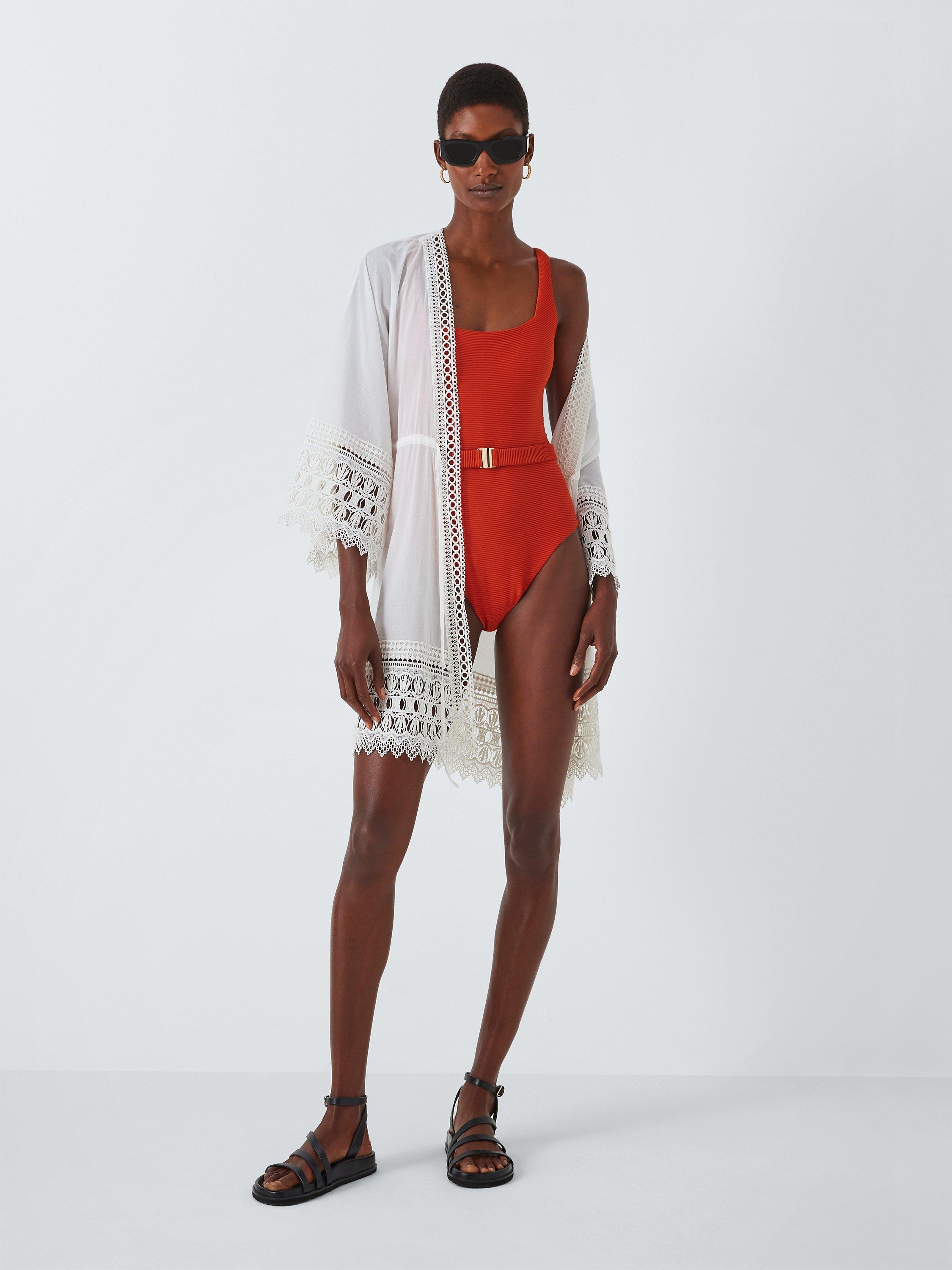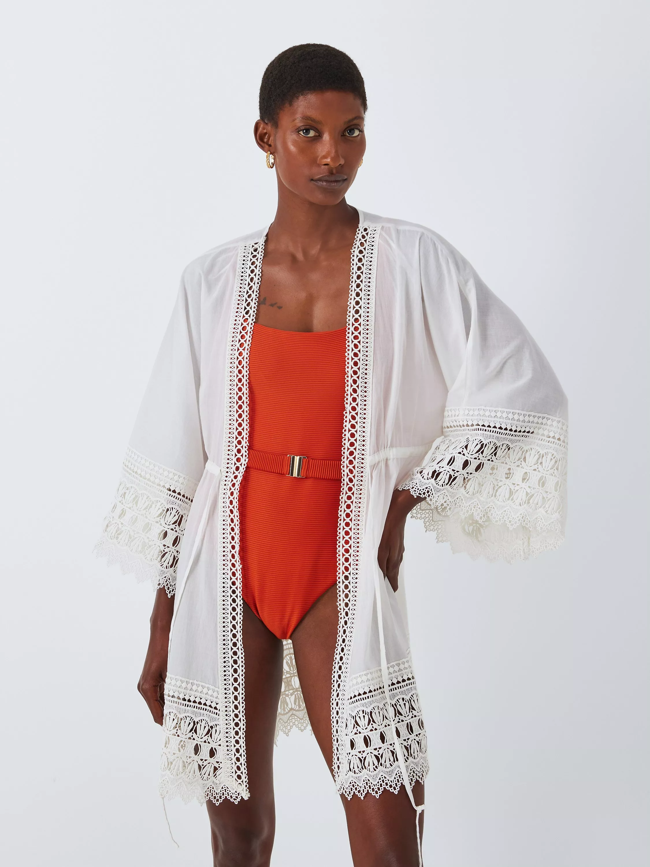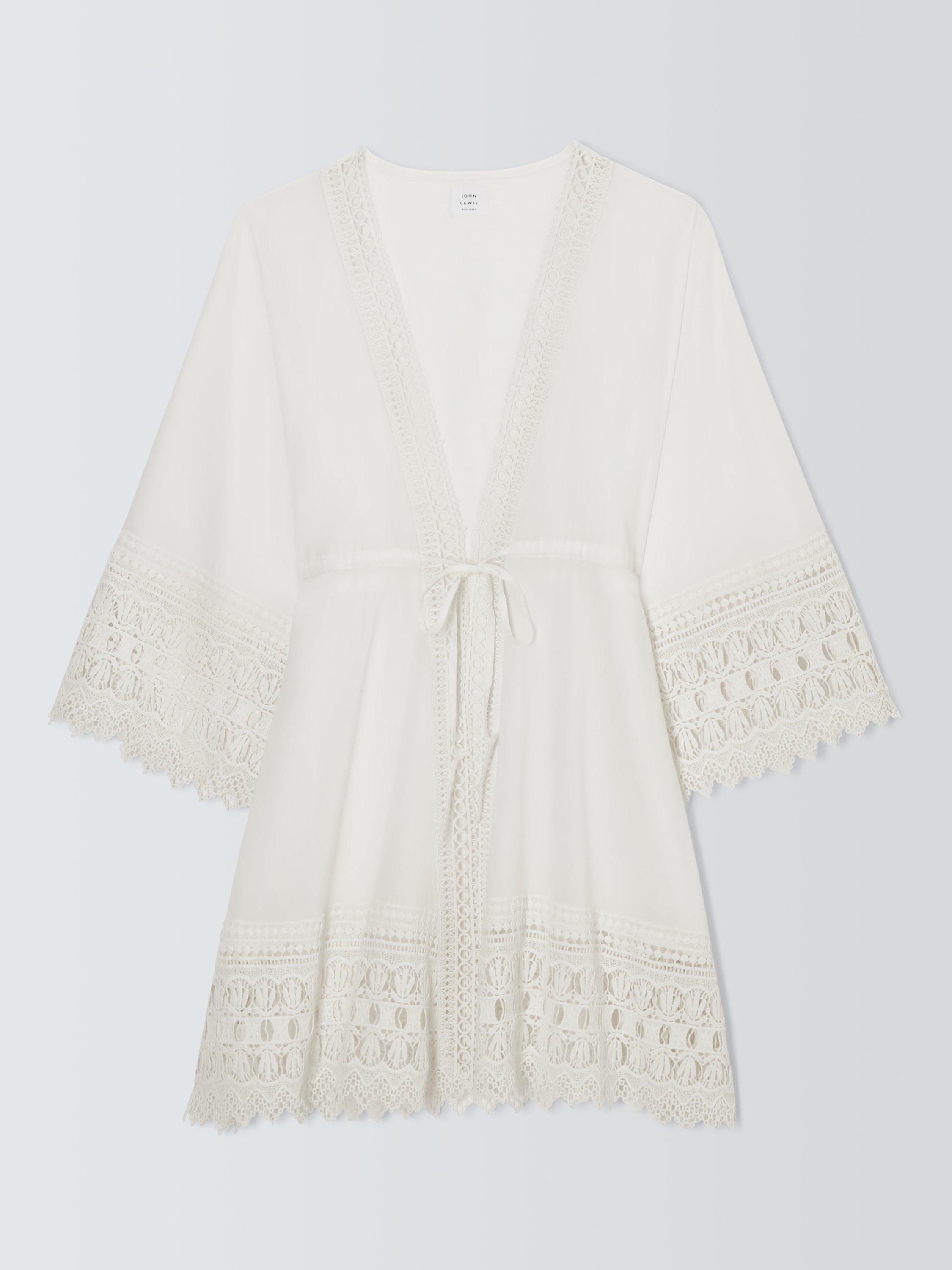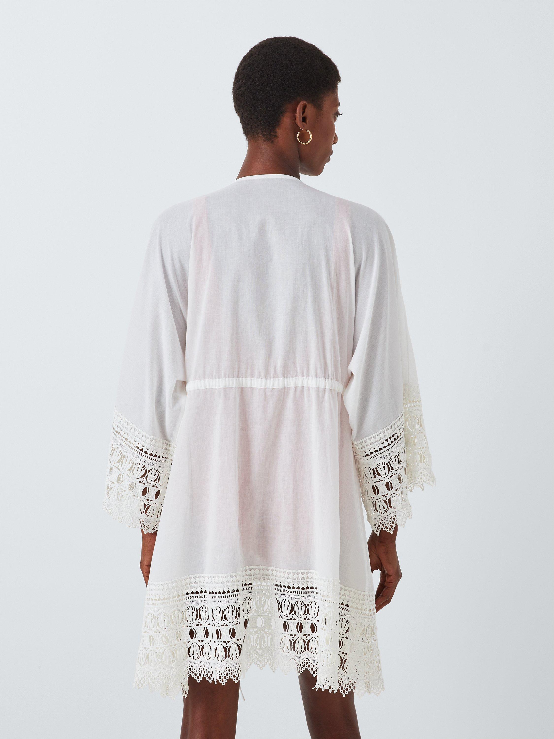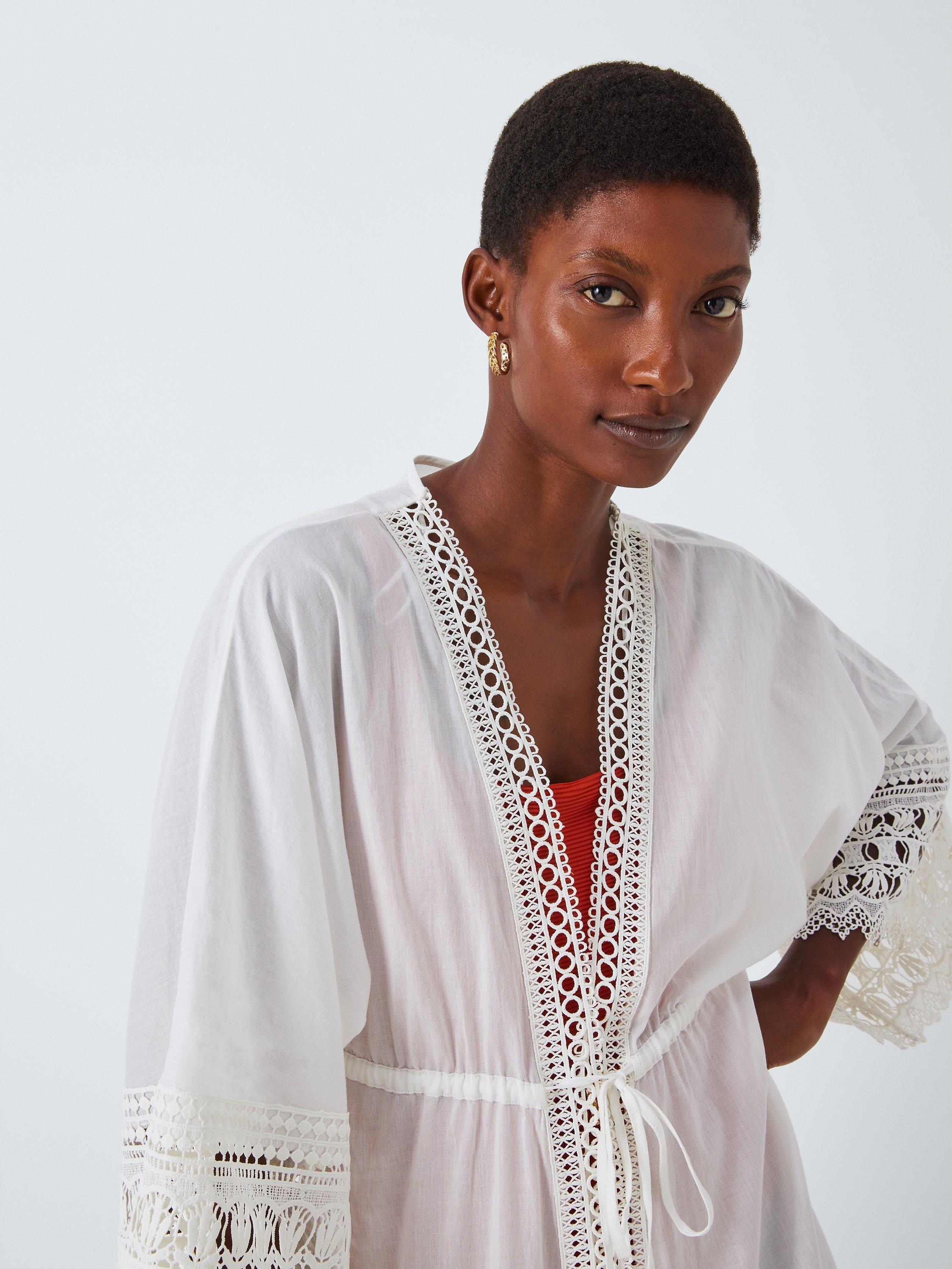 Beautifully detailed with intricate scallop embroidery throughout, this kaftan comes in a simple open neck style with self tie waist - perfect for throwing on after a dip in the pool.