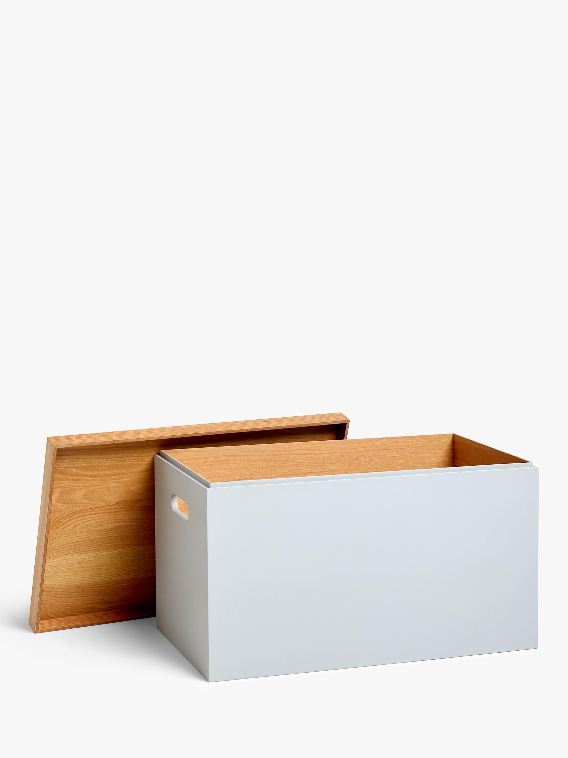 Perfect for storing books, clothing or accessories, this lacquered box comes with an ash veneer lid that fits flush with the sides for a neat profile.