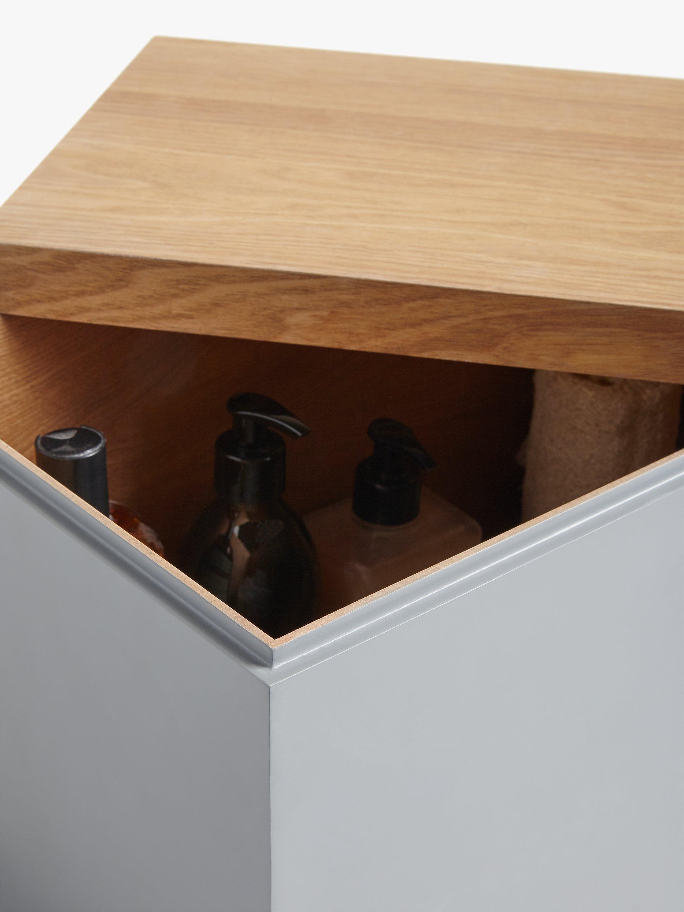 Perfect for storing kitchen, cleaning or bathroom accessories, this lacquered box comes with an ash veneer lid that fits flush with the sides for a neat profile.