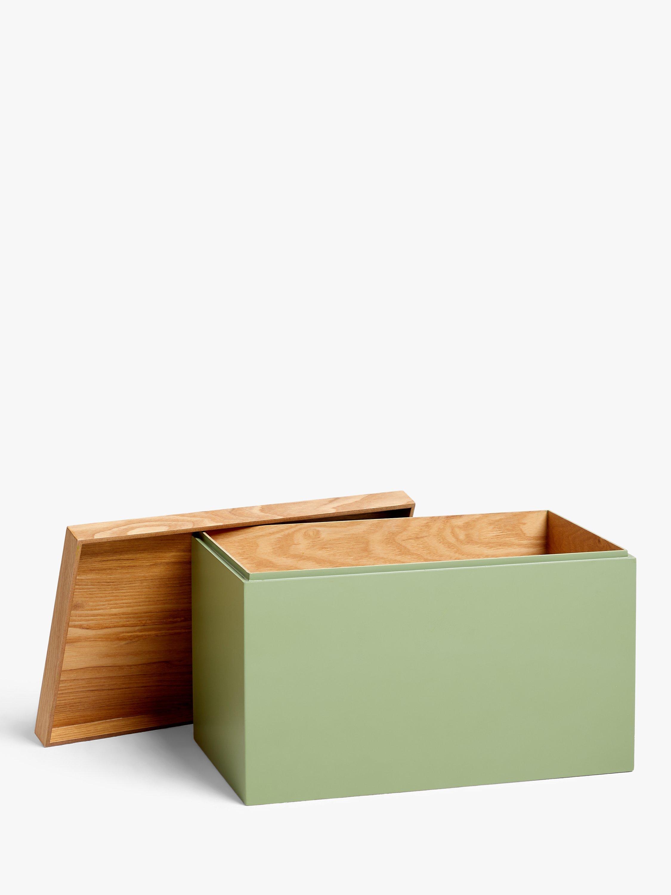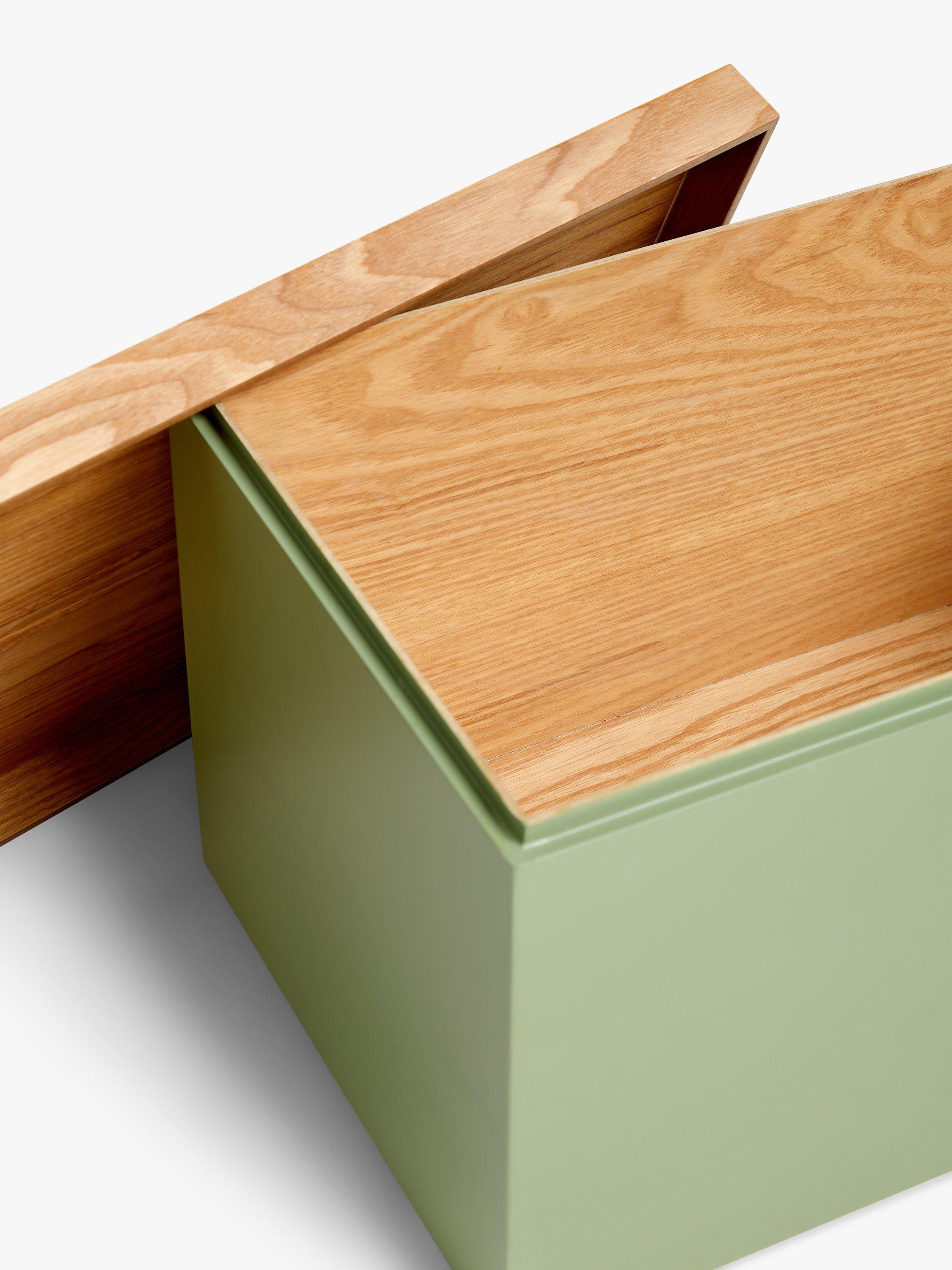 Perfect for storing kitchen, cleaning or bathroom accessories, this lacquered box comes with an ash veneer lid that fits flush with the sides for a neat profile.