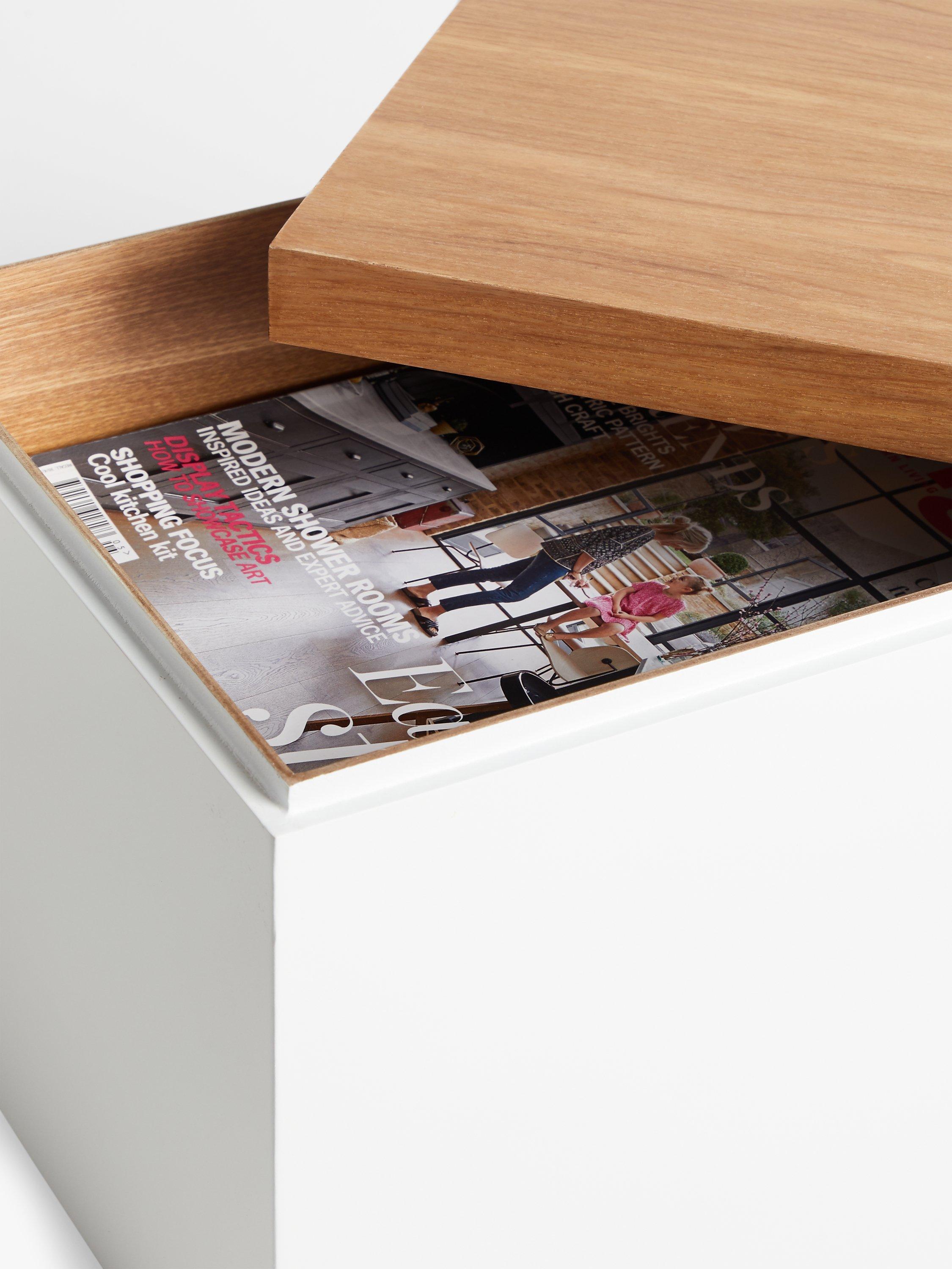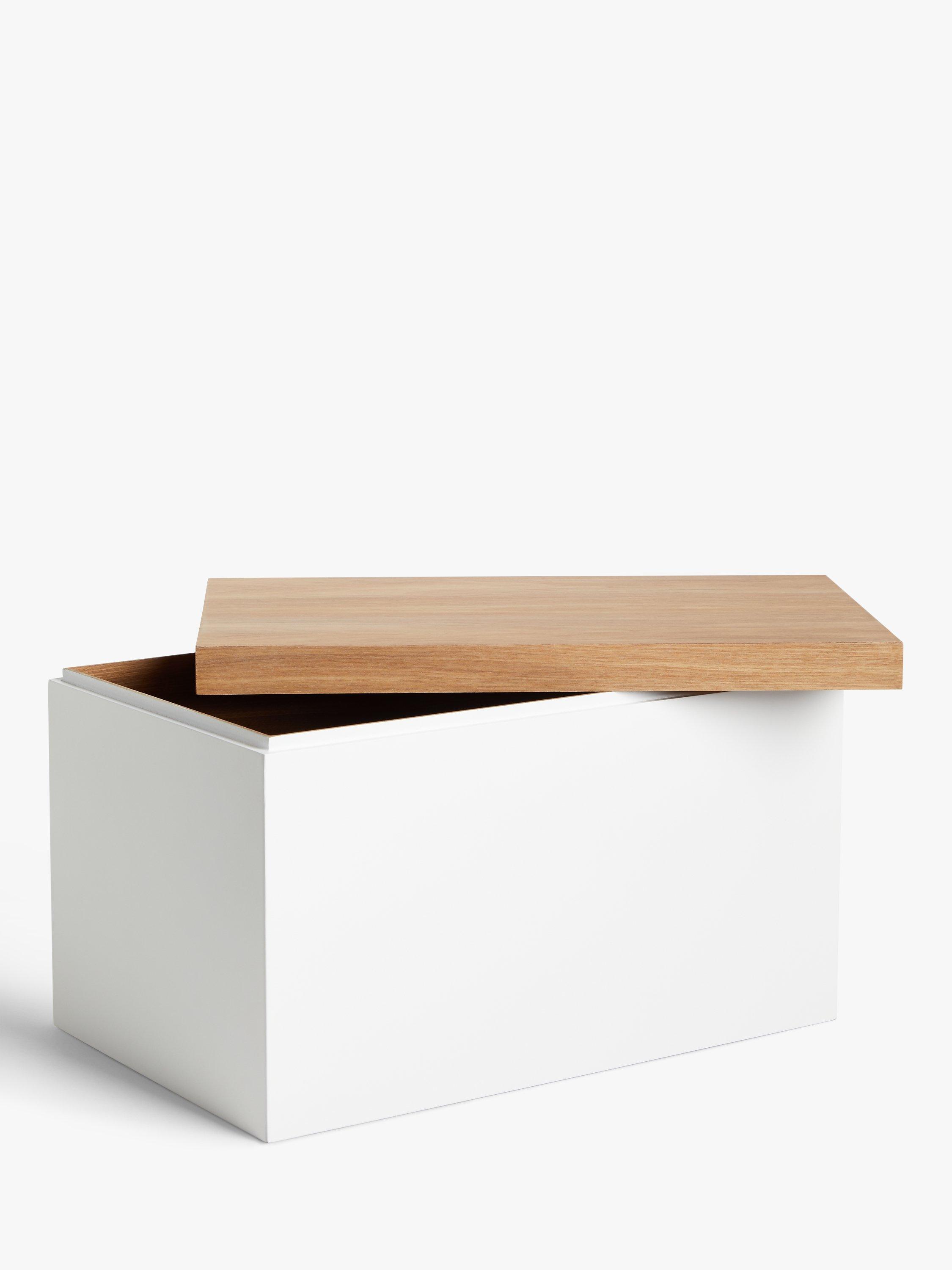 Perfect for storing kitchen, cleaning or bathroom accessories, this lacquered box comes with an ash veneer lid that fits flush with the sides for a neat profile.