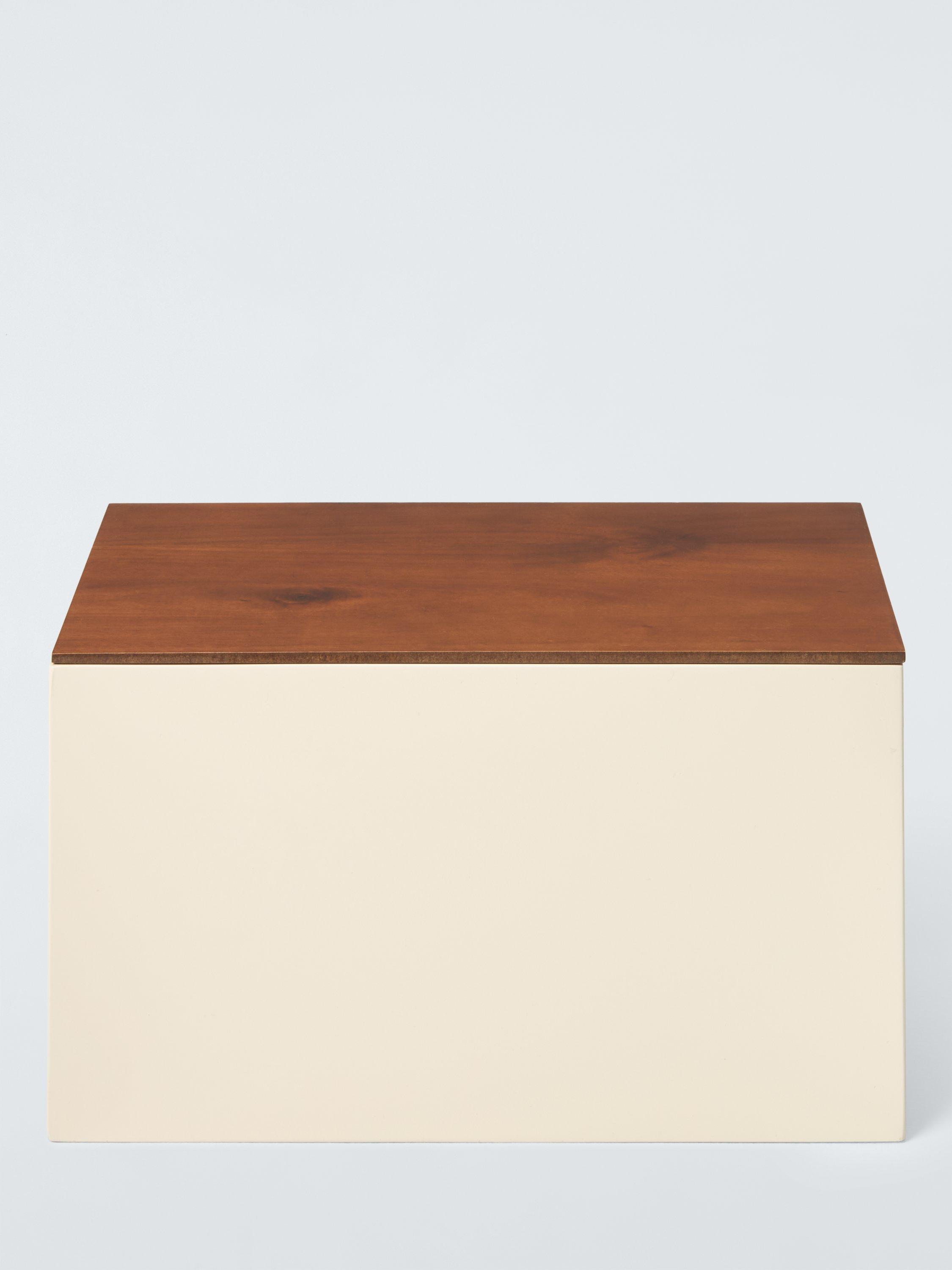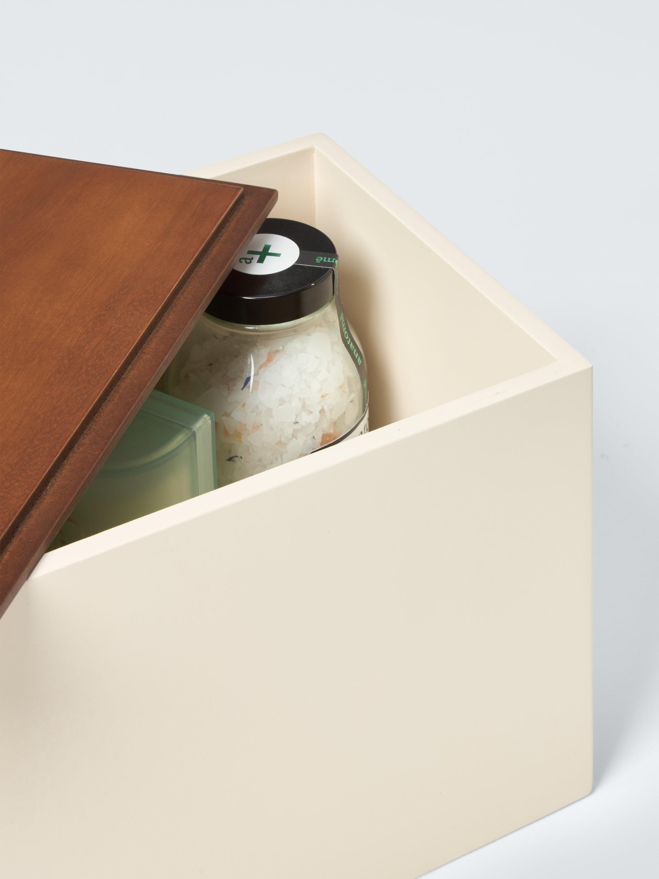 Perfect for storing bathroom or shoe care accessories, this lacquered box comes with an ash veneer lid that fits flush with the sides for a neat profile.