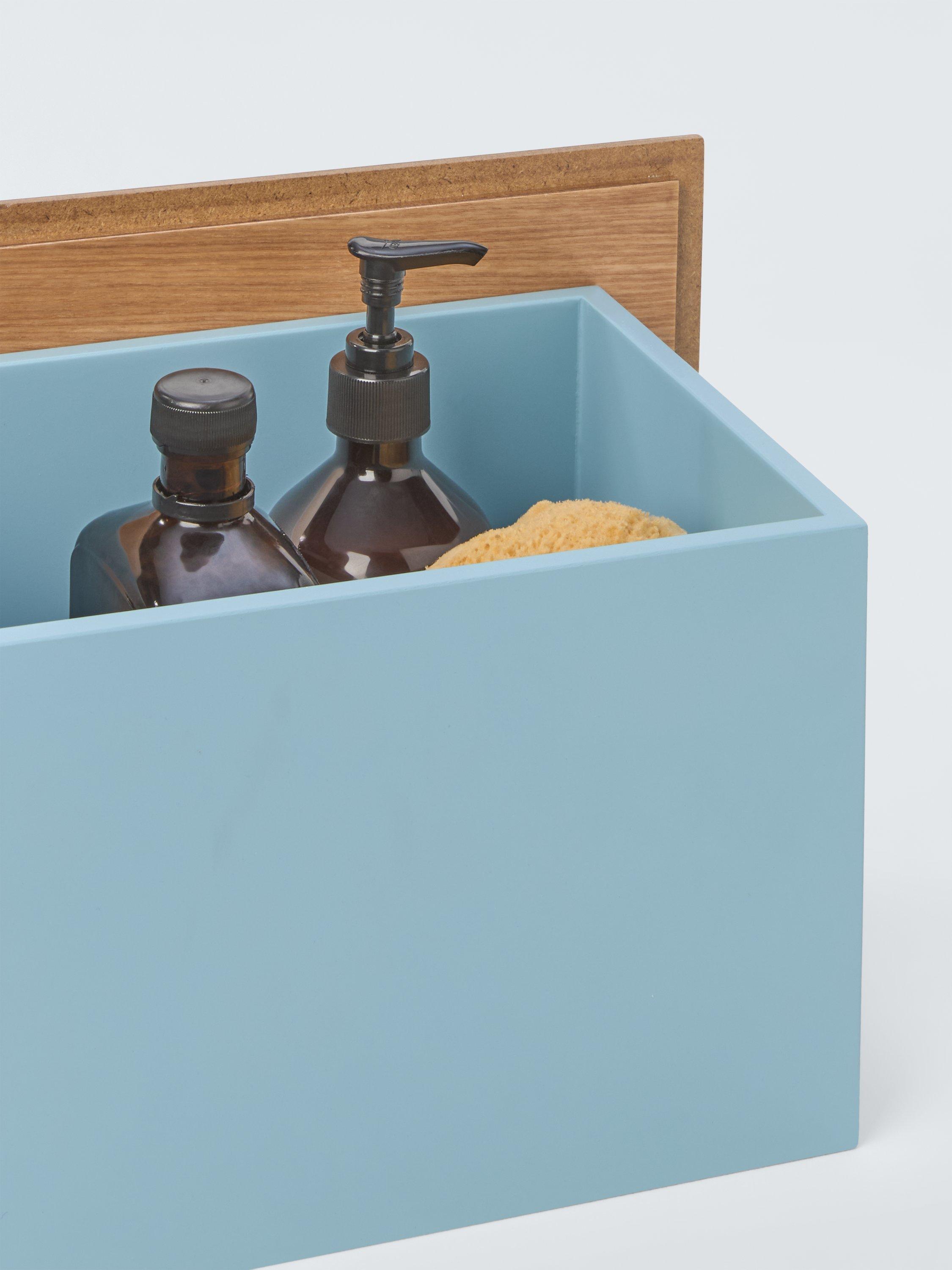 Perfect for storing bathroom or shoe care accessories, this lacquered box comes with an ash veneer lid that fits flush with the sides for a neat profile.