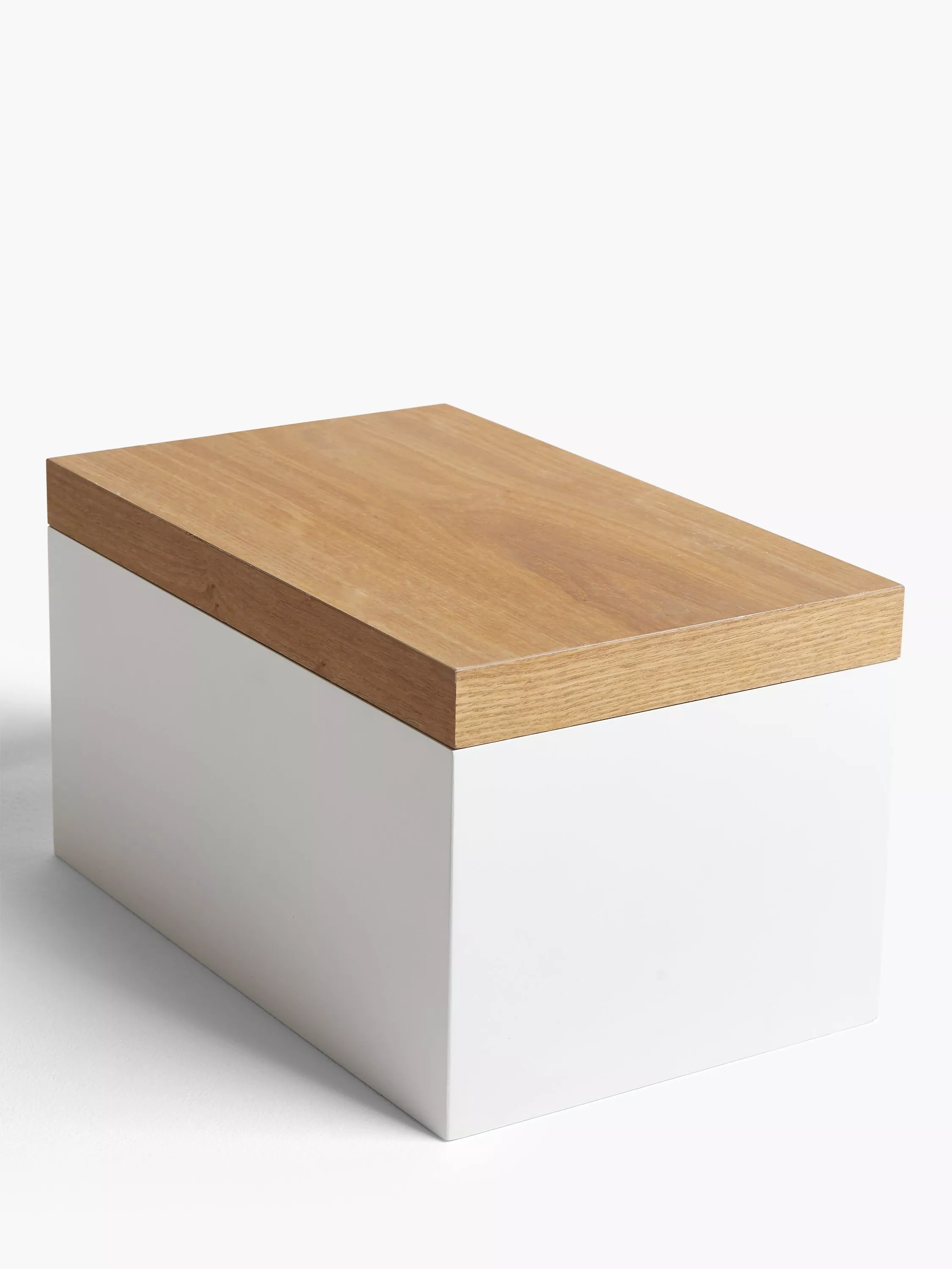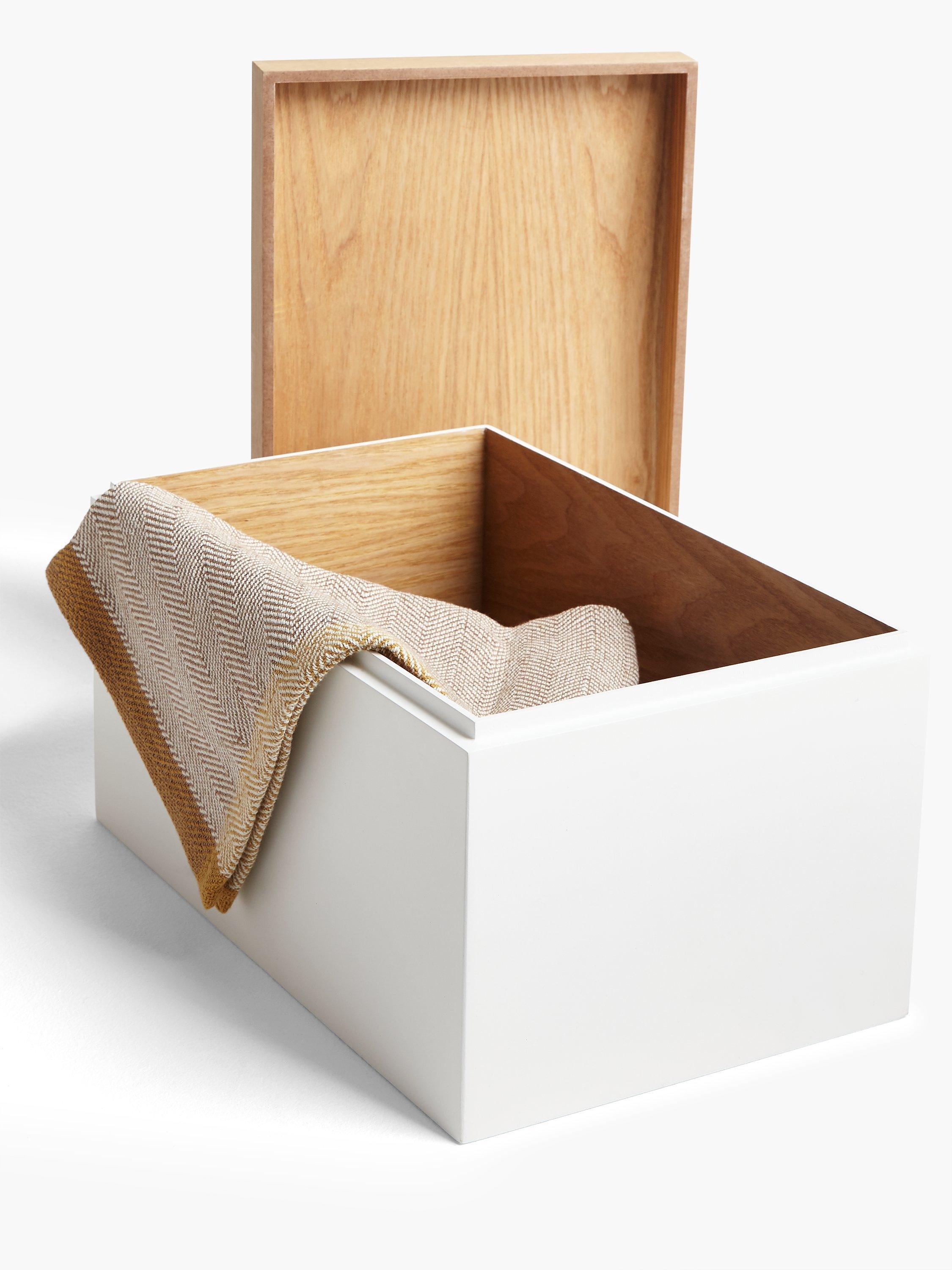 Perfect for storing bathroom or shoe care accessories, this lacquered box comes with an ash veneer lid that fits flush with the sides for a neat profile.