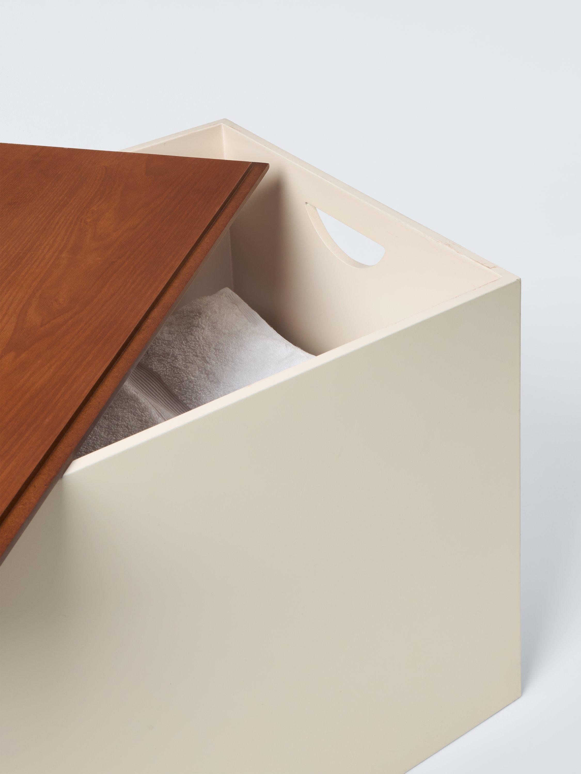 Perfect for storing clothing, toys, cushions or bedding, this lacquered box comes with an ash veneer lid that fits flush with the sides for a neat profile.