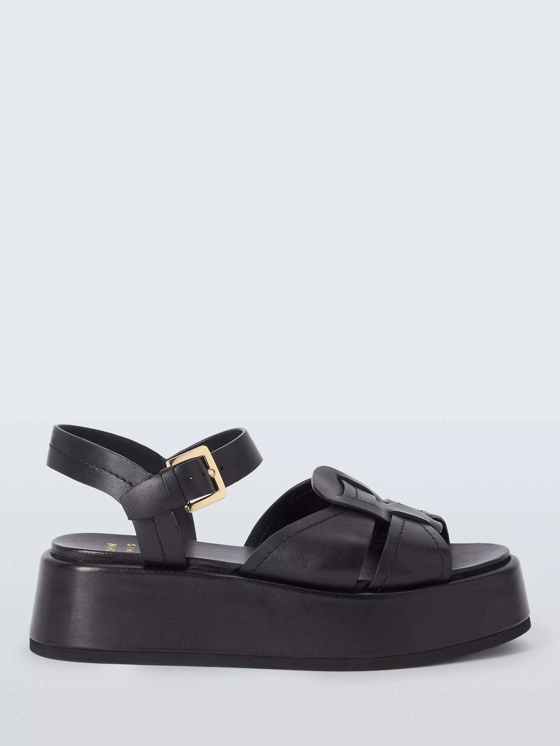 They're made from wide strips of glossy black leather that comfortably secure your foot, so you can wear them with everything from floaty dresses to relaxed tailoring.