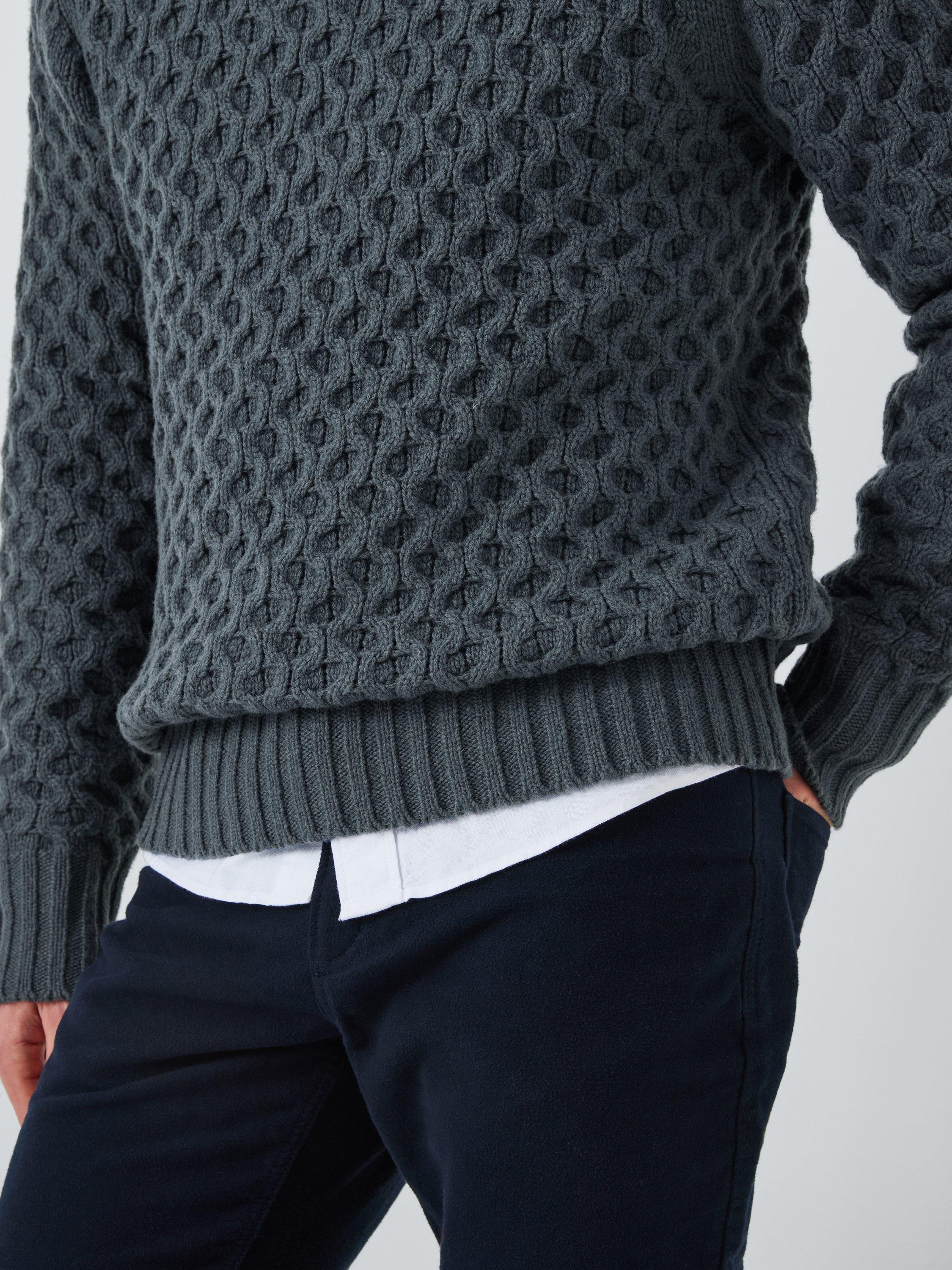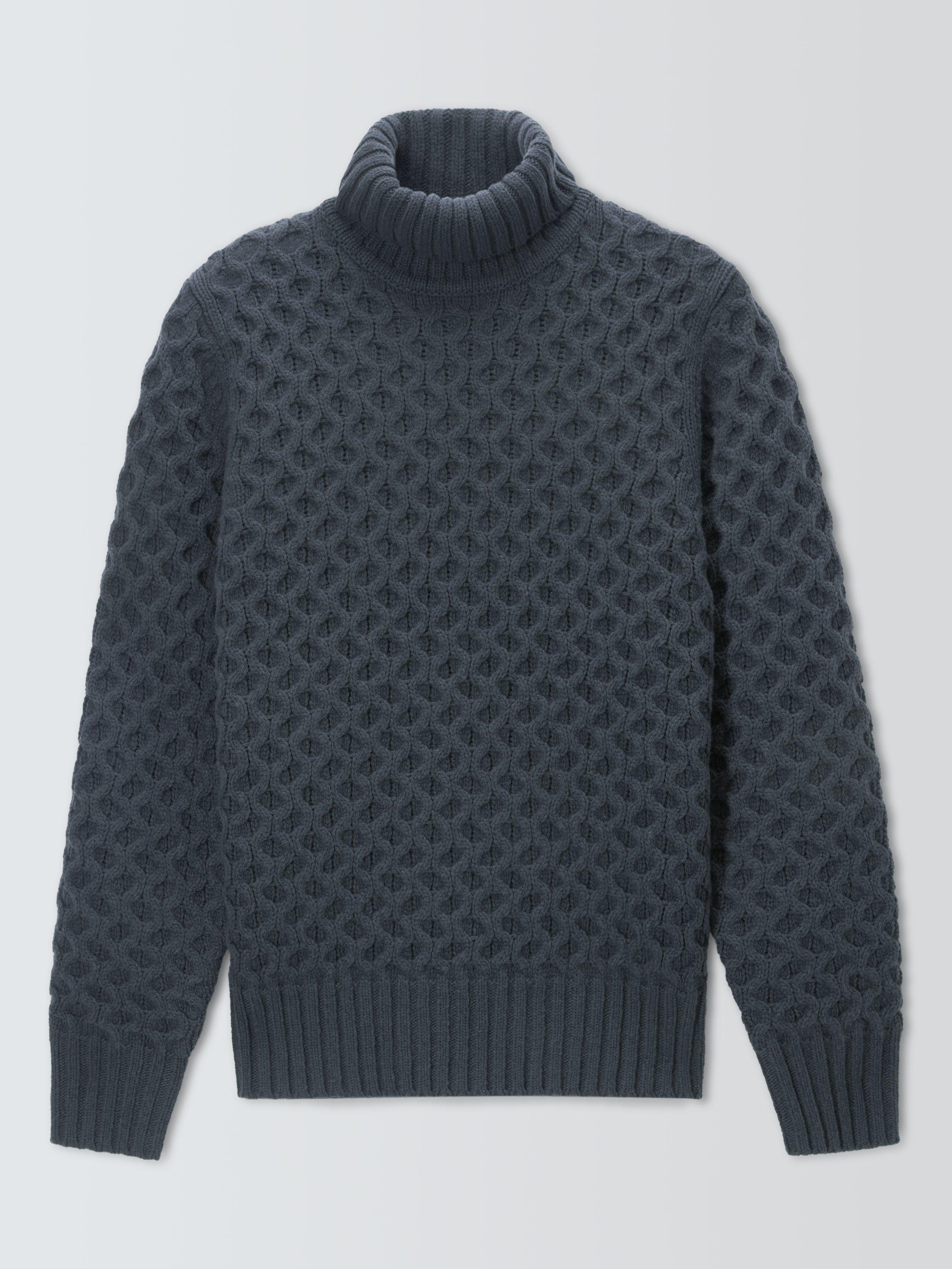 John LewisLambswool Blend Cable Knit Roll Neck Jumper, Dark Slate