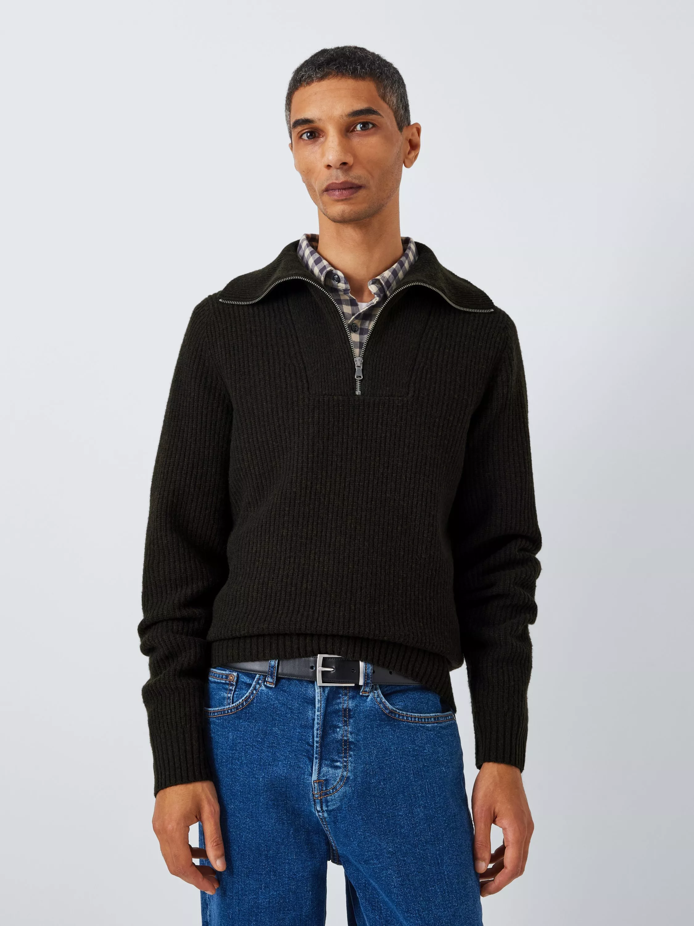 Our much-loved Lambswool Blend Zip Neck Jumper gets a style update, now knitted in a cosy ribbed texture with an extended collar for a contemporary look.