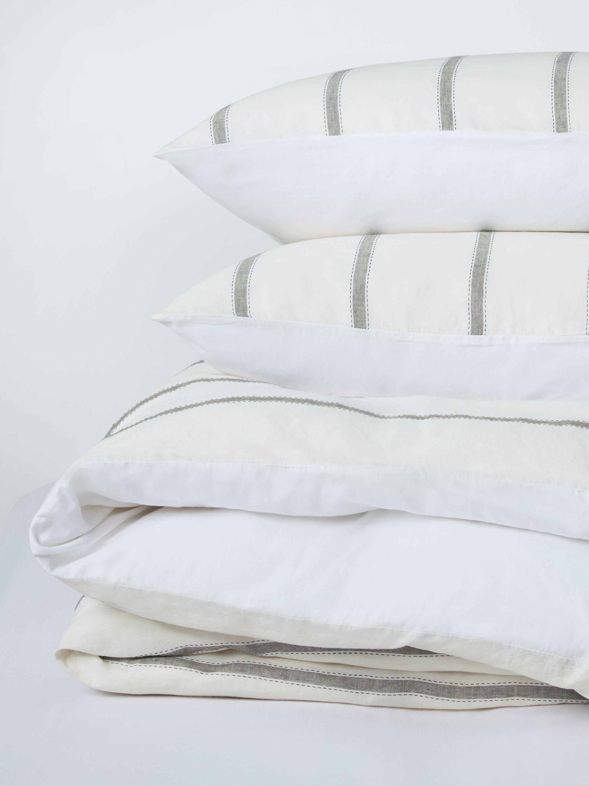 Simple and sophisticated, our Lanark bedding is made from a blend of linen and cotton. Subtle stripes offer a grown-up aesthetic which makes for a versatile base for additional decorative accessories. The reverse is plain.