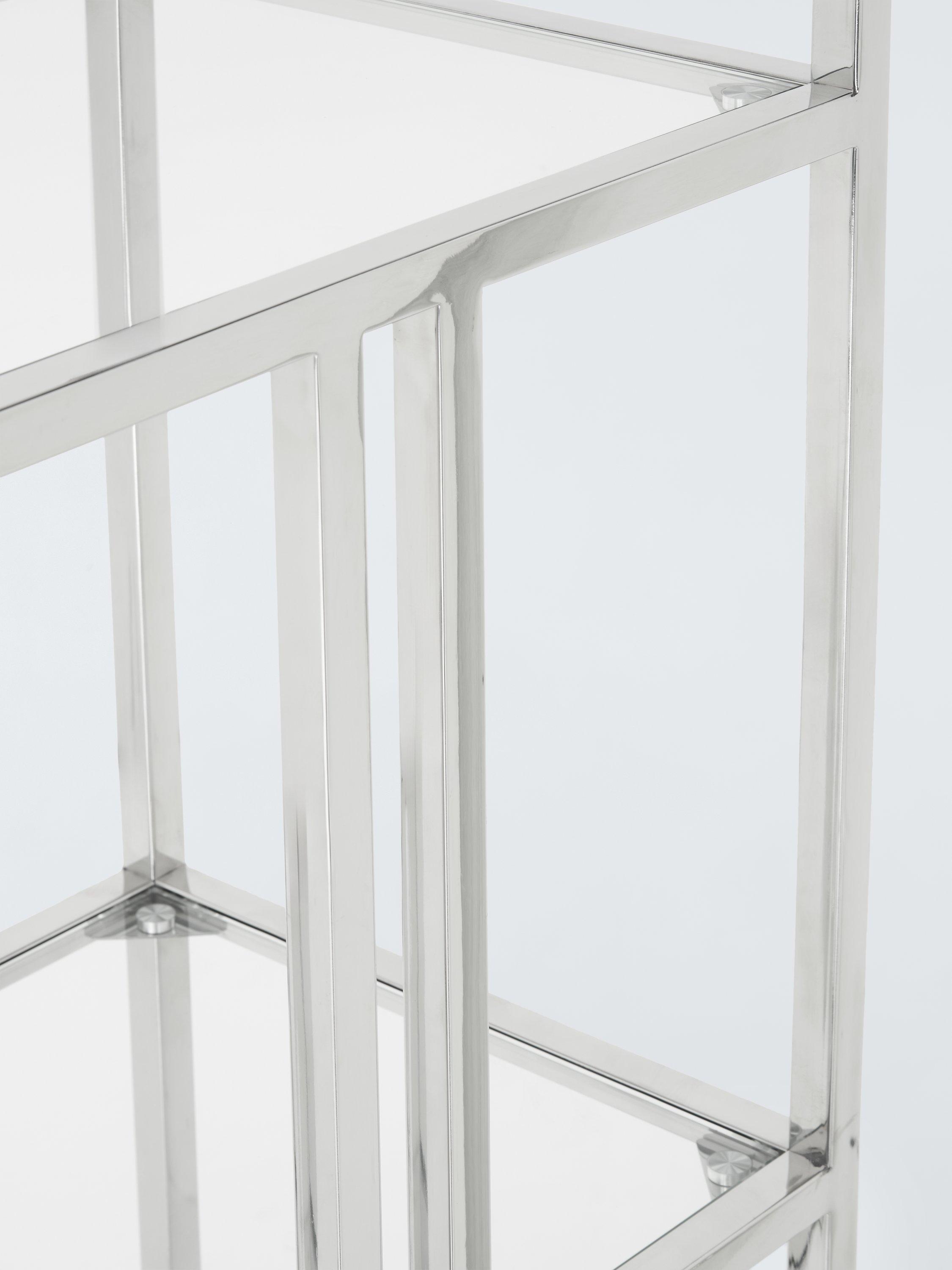 This simple yet sophisticated bookcase, with its glass shelves and brass finish metal frame, will make your space feel lighter and brighter.