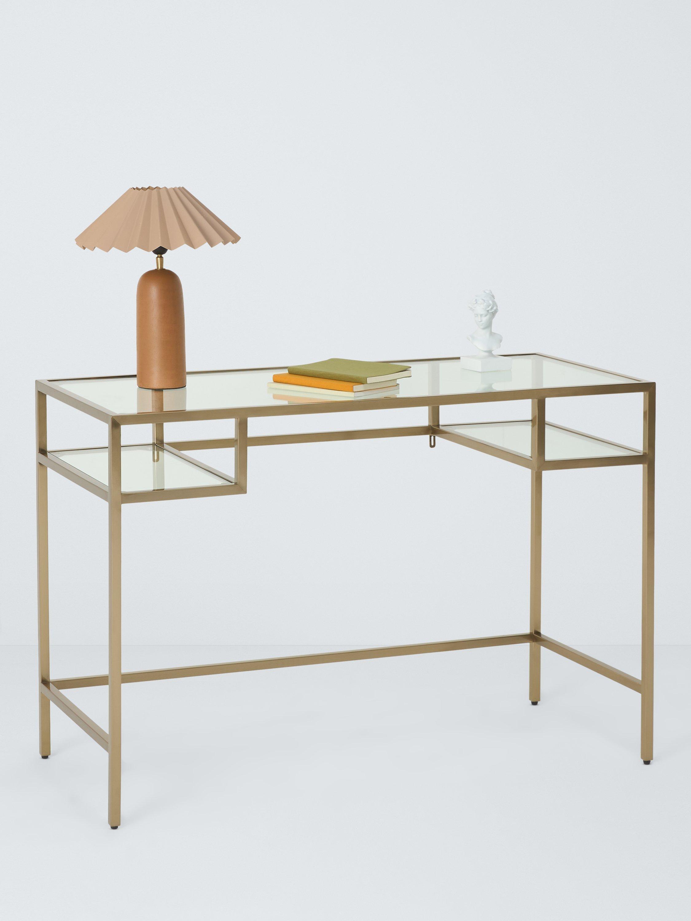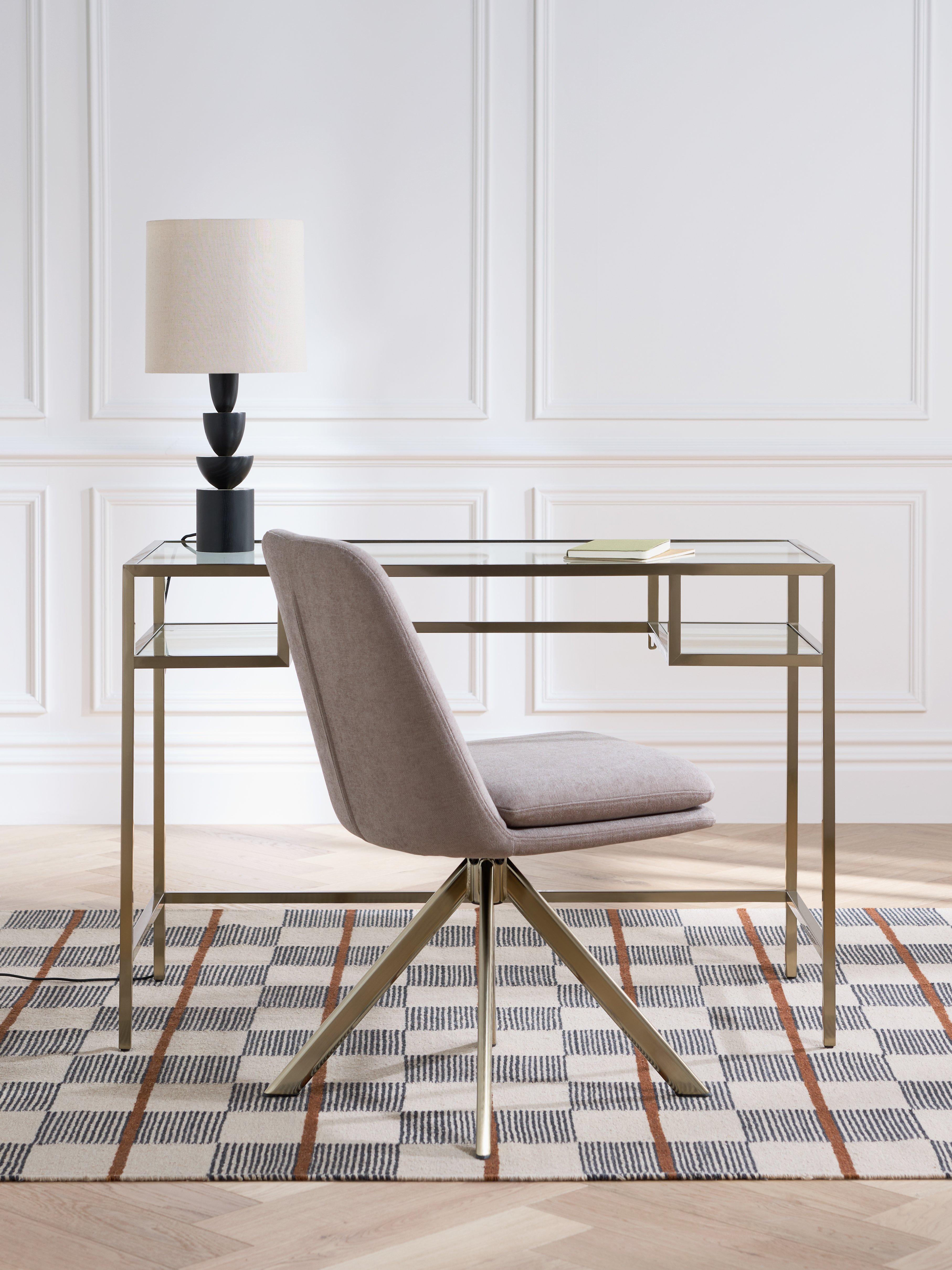 This simple yet sophisticated desk, with its glass top and metal frame, will make your space feel lighter and brighter.