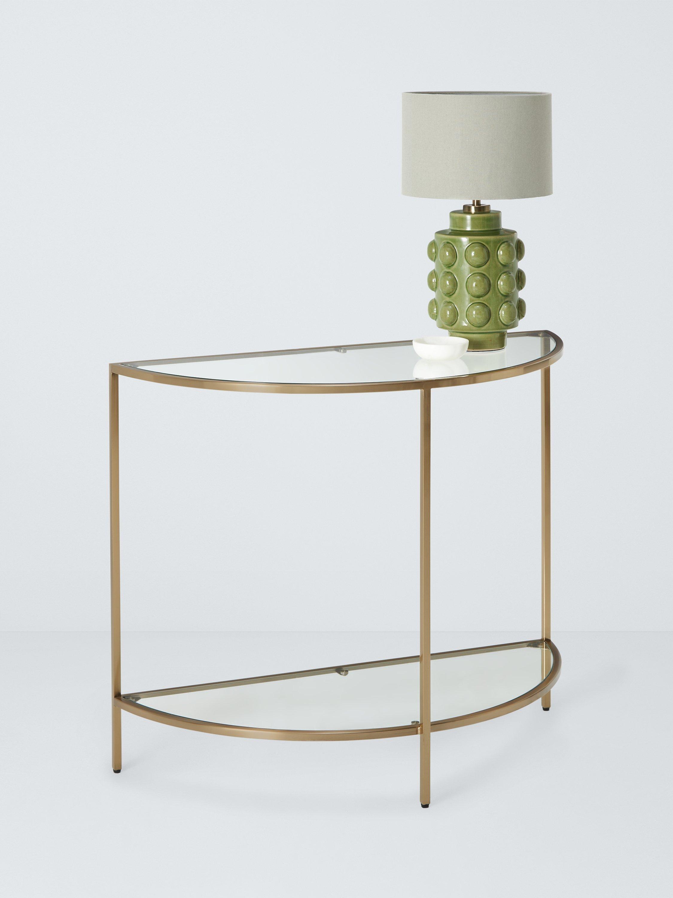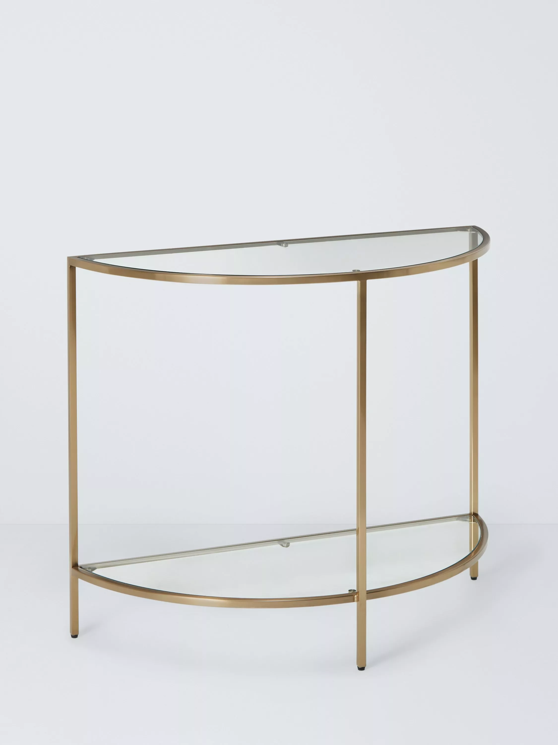 This simple yet sophisticated half moon console table, with its glass top and metal frame, will make your space feel lighter and brighter.