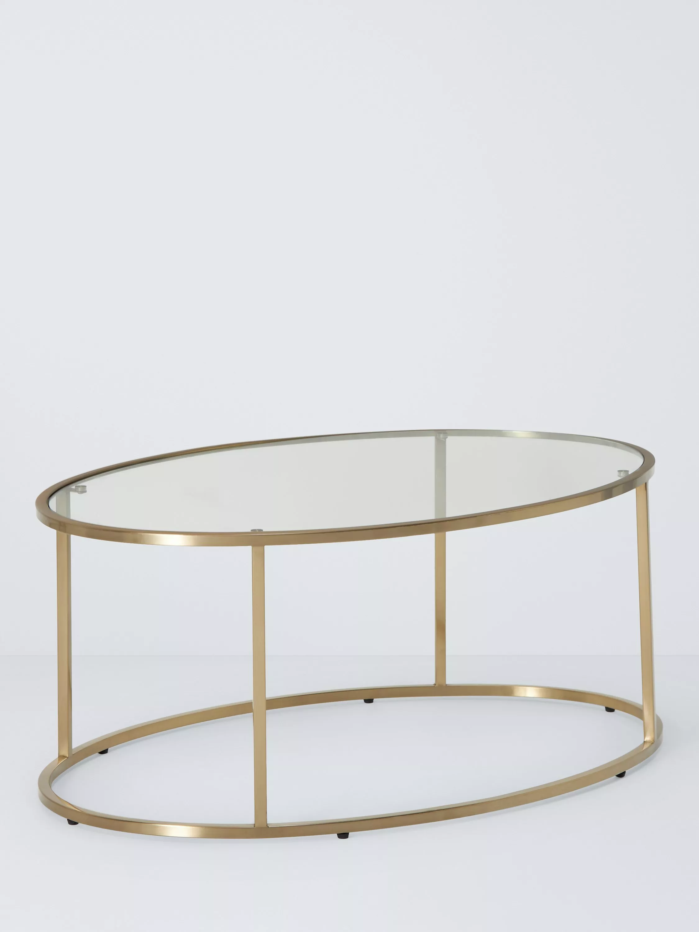 This simple yet sophisticated oval coffee table, with its glass top and metal frame, will make your space feel lighter and brighter.