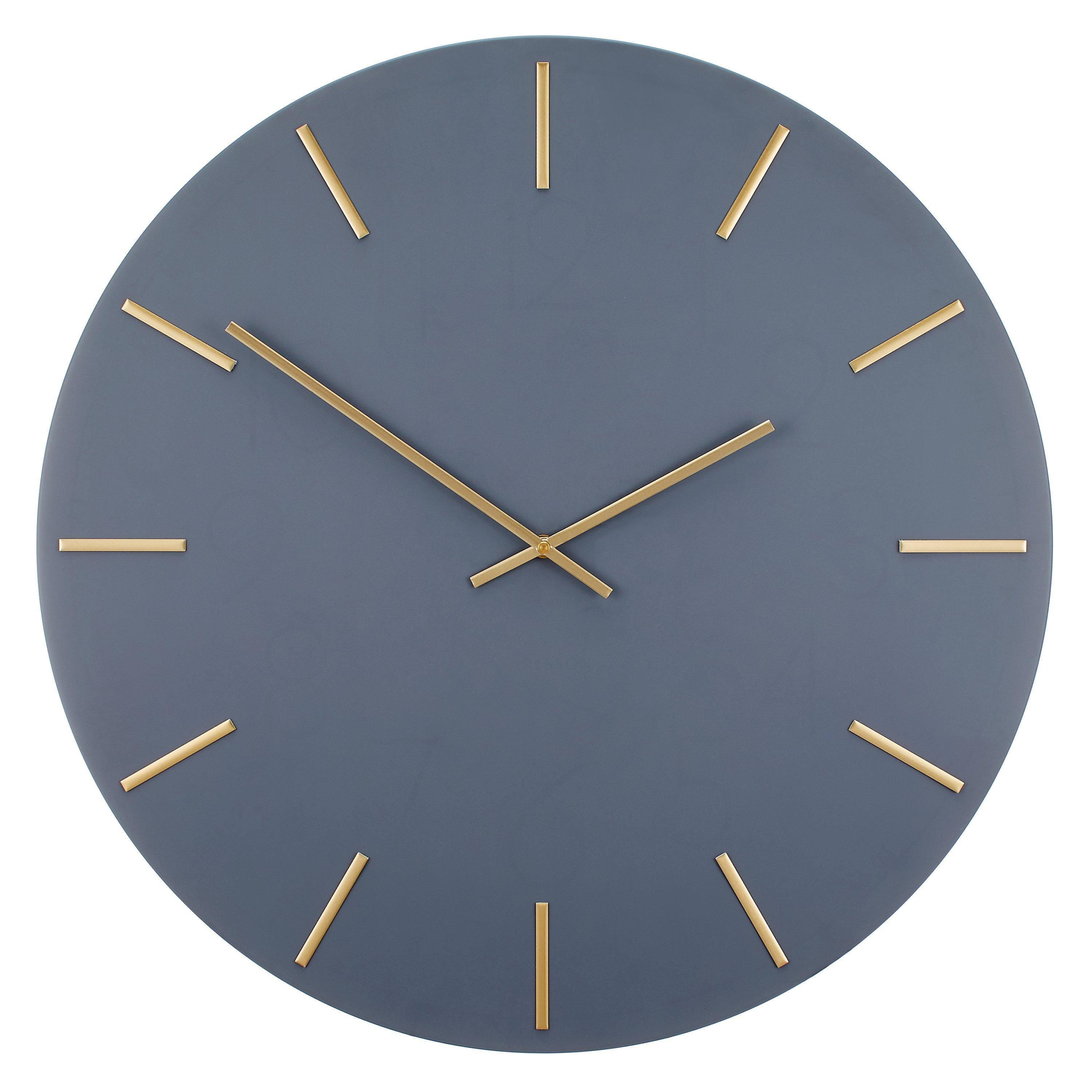 Metallic hands in a brass finish and matching hour markers contrast beautifully with the understated clock face on the Arne wall clock. Hang it on the wall by the keyhole on the back to enhance a room.