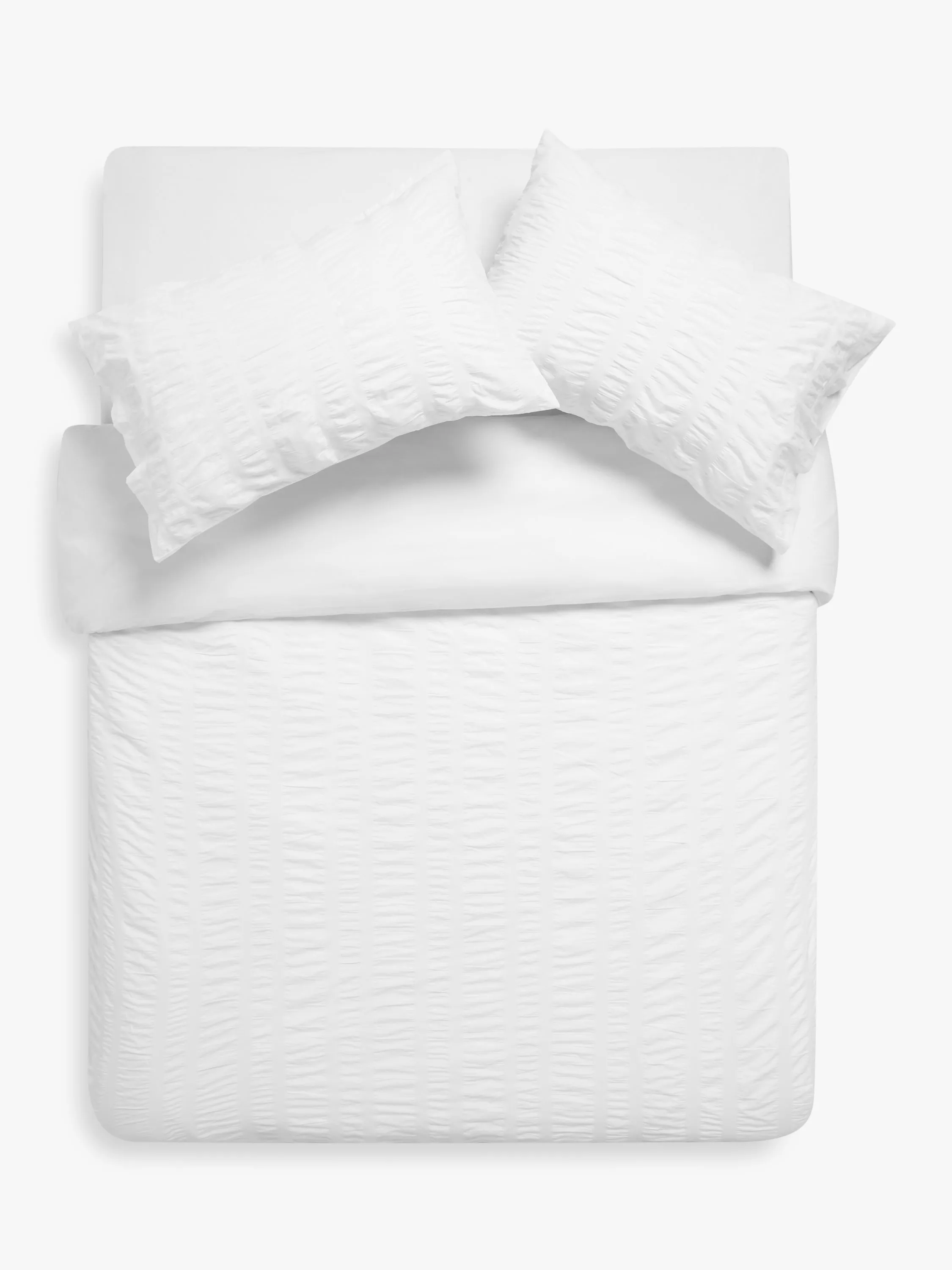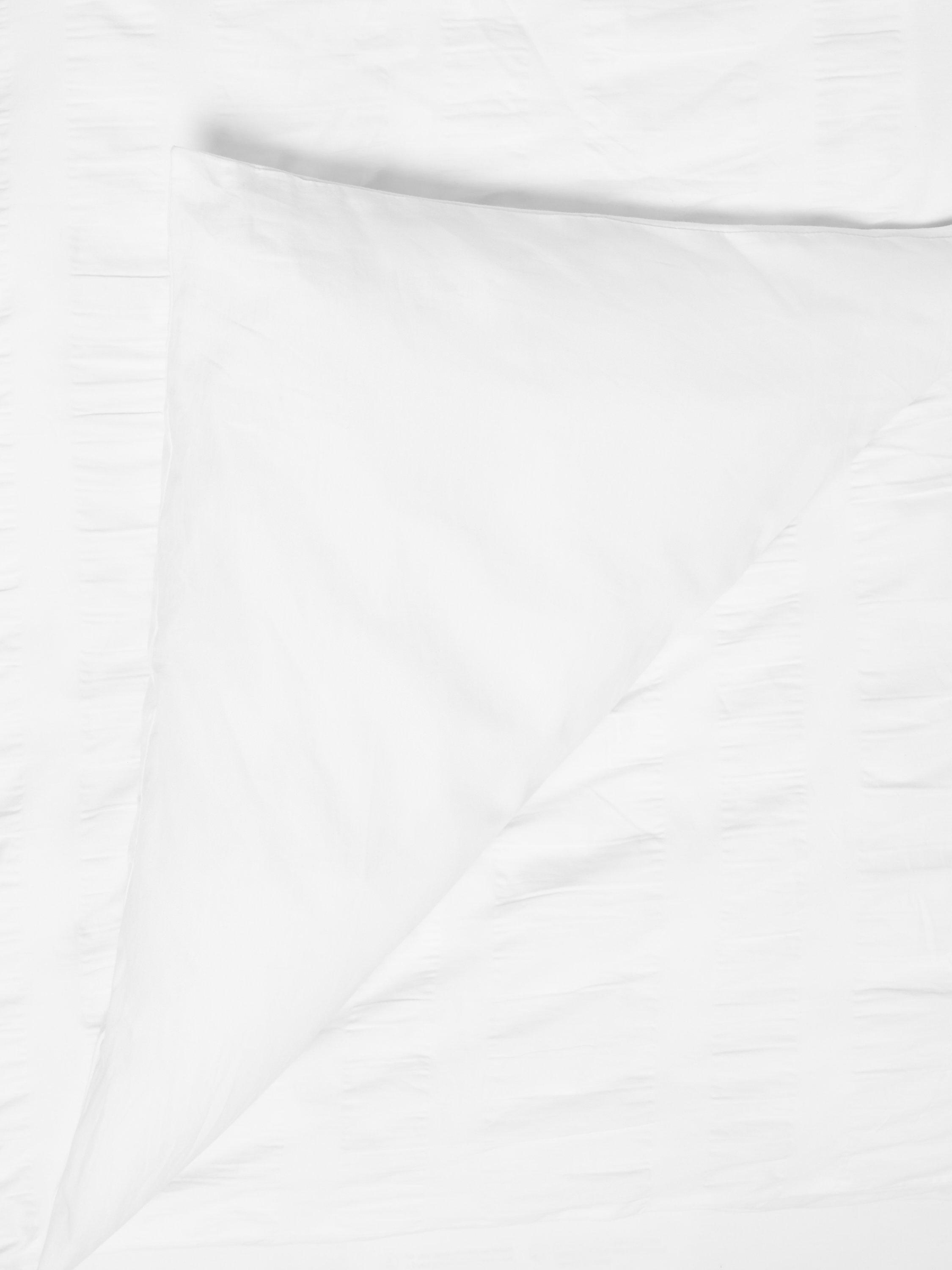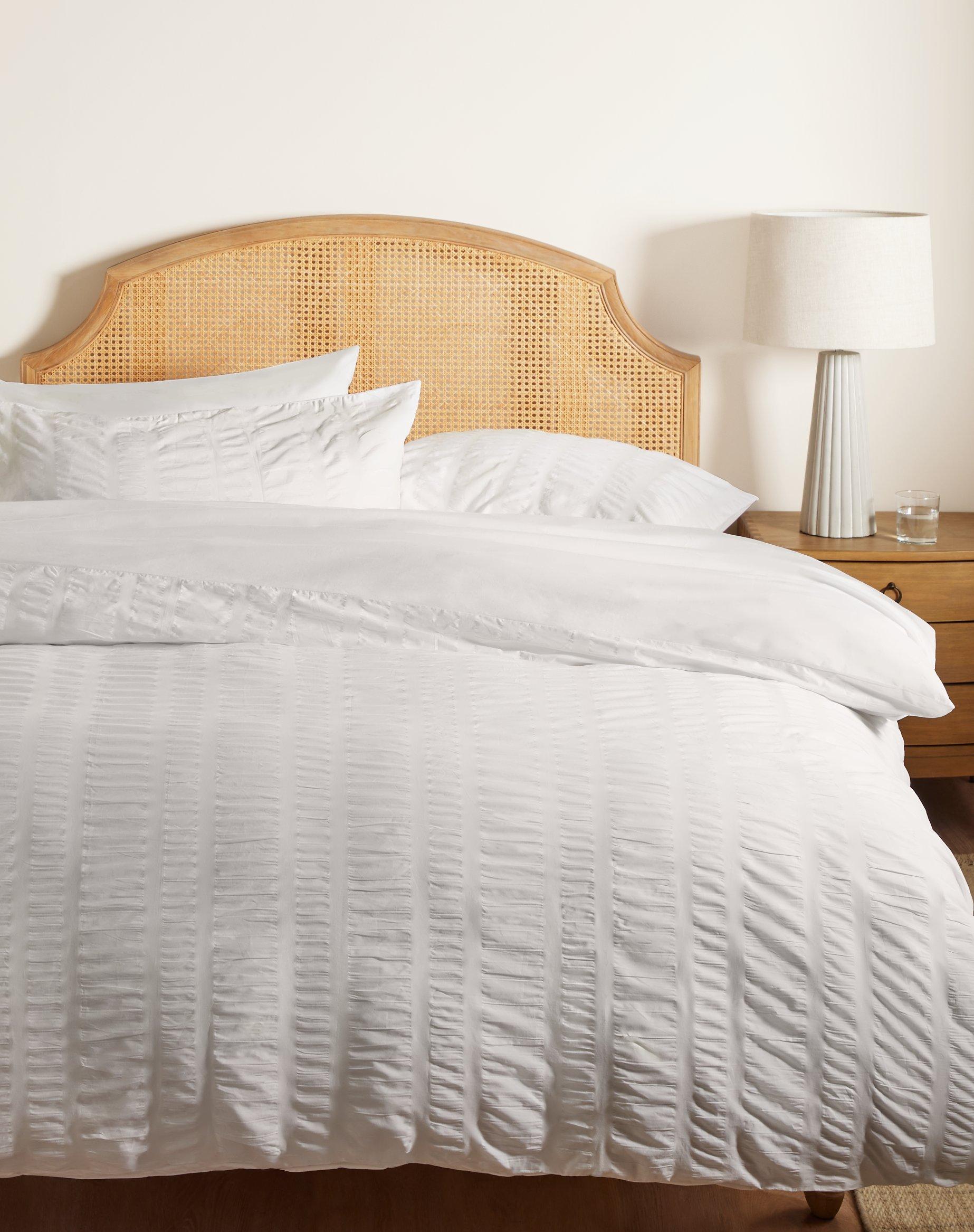 This large seersucker bedding needs little or no ironing and comes in classic white. The reverse is plain.