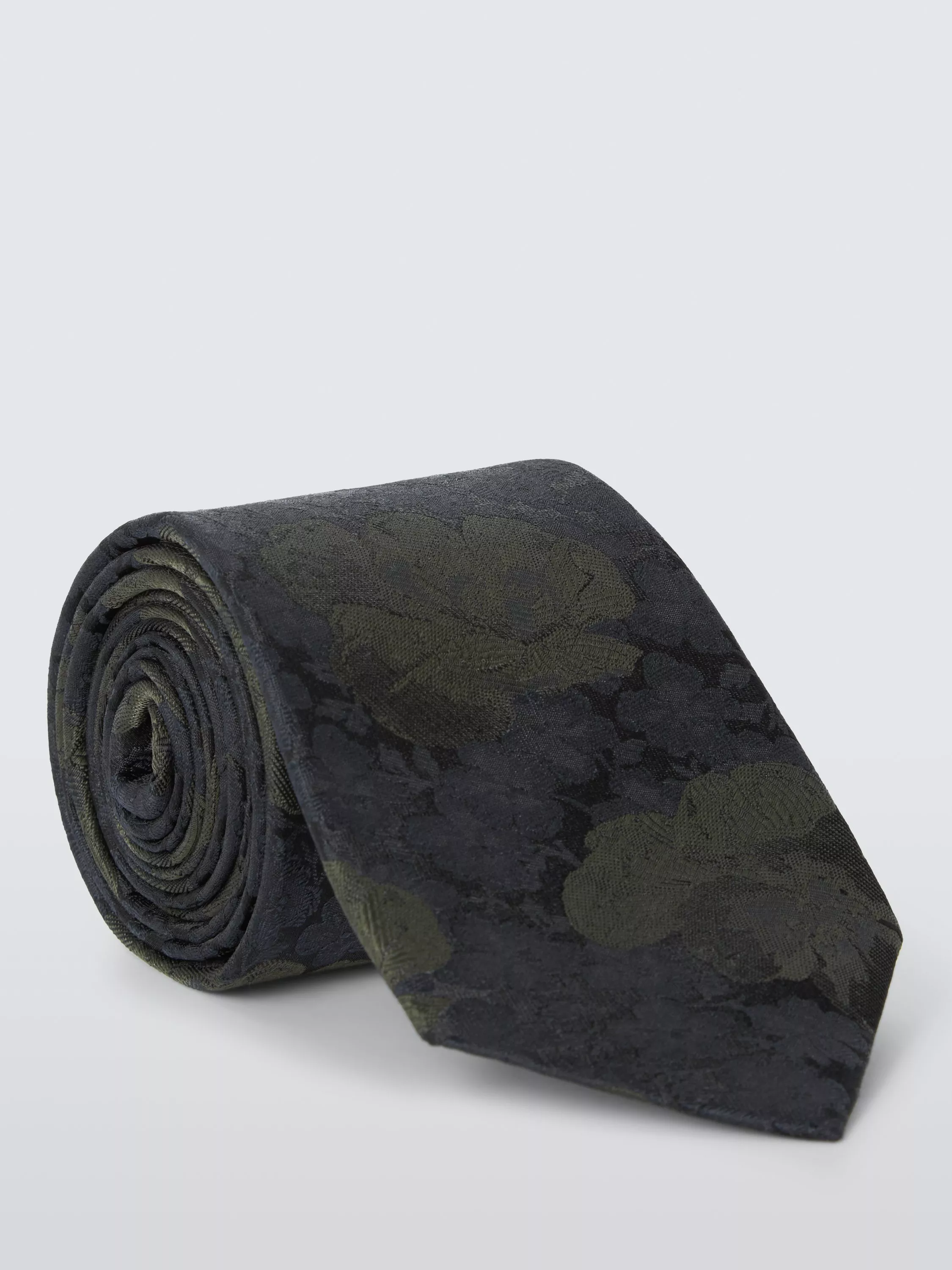 John LewisLarge Textured Floral Silk Tie, Navy/Green