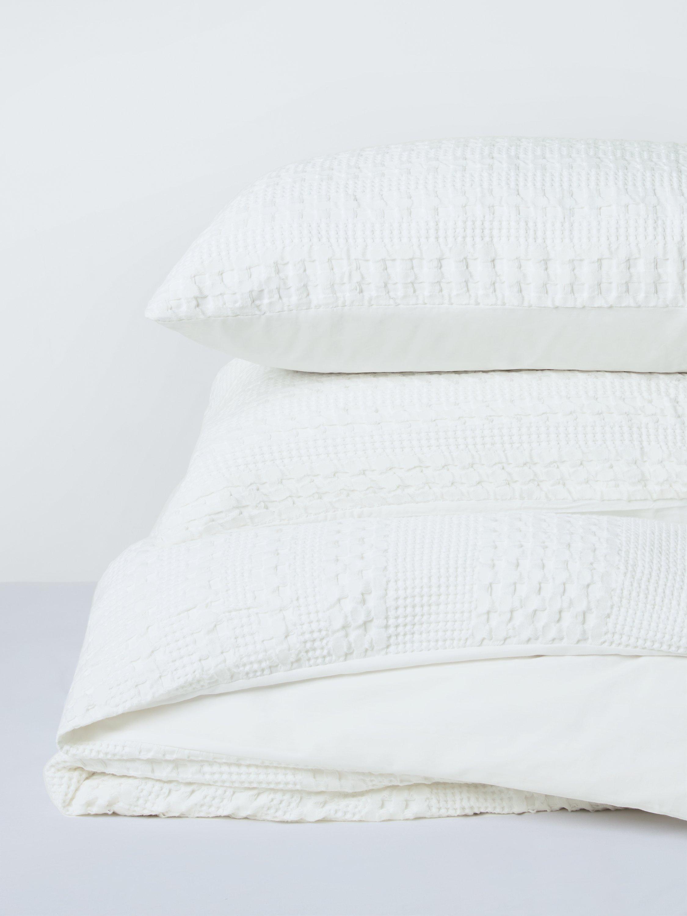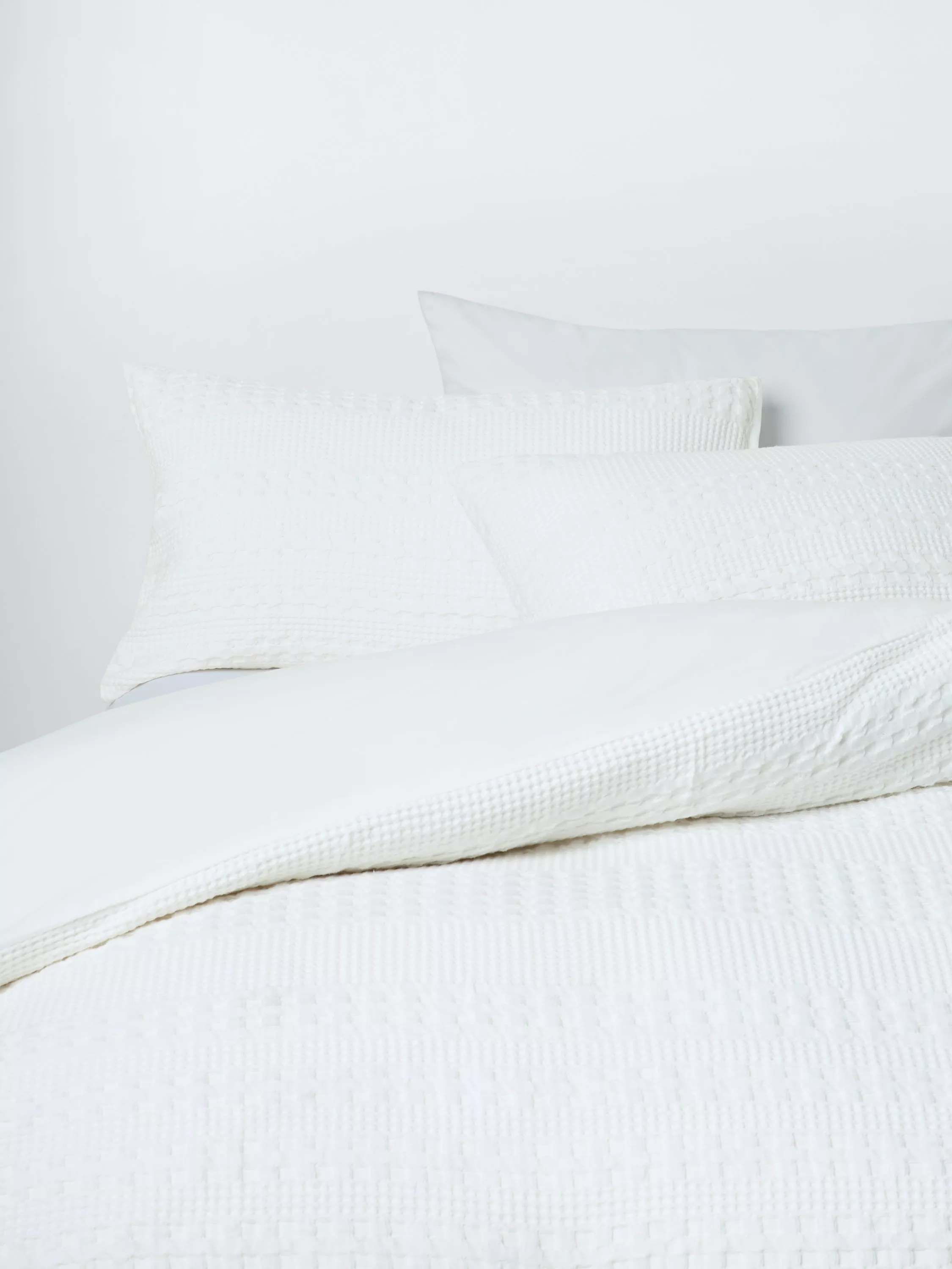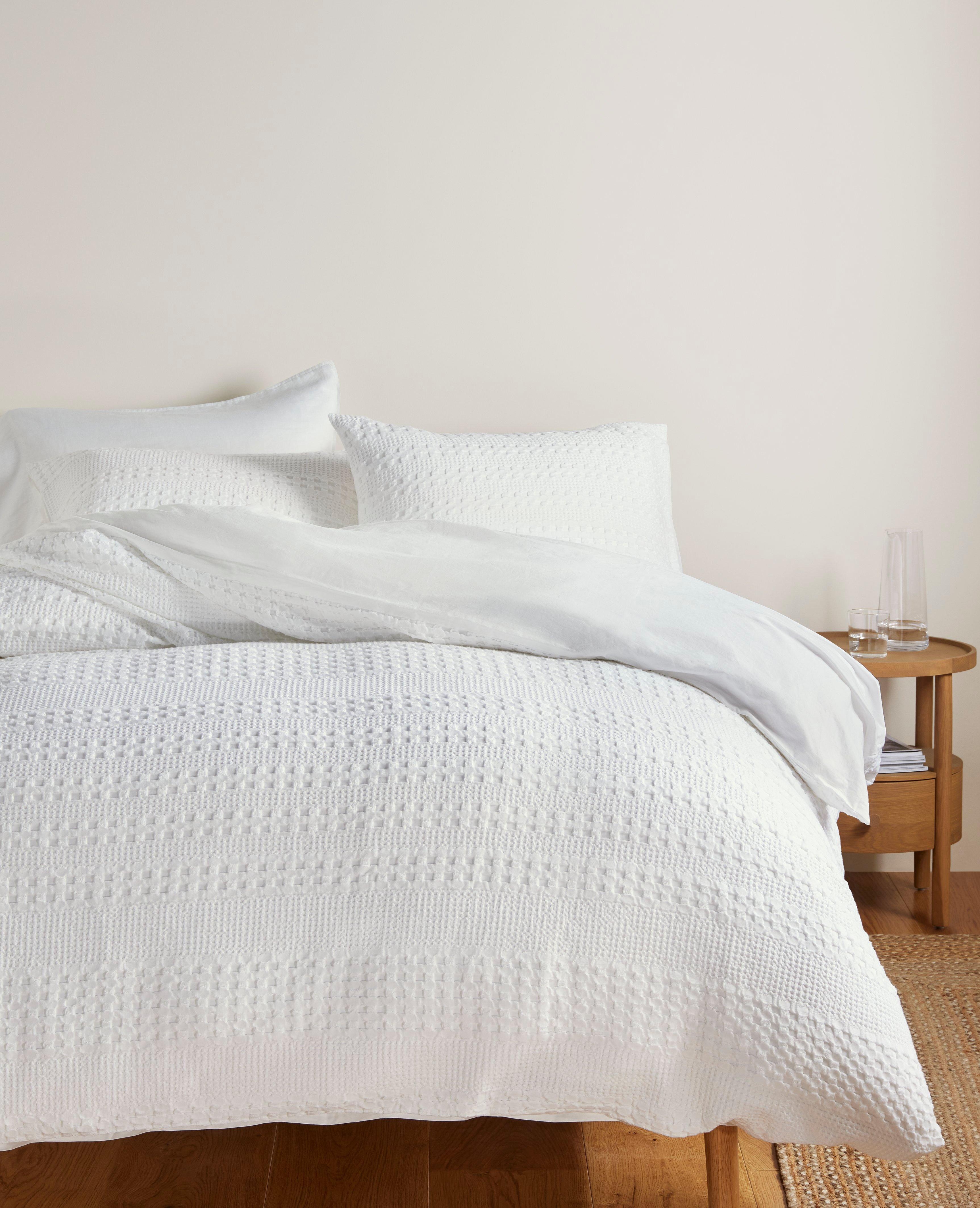 Featuring a large waffle stripe texture and a plain reverse, this bedding is made from soft and breathable cotton for a comfortable night's sleep.