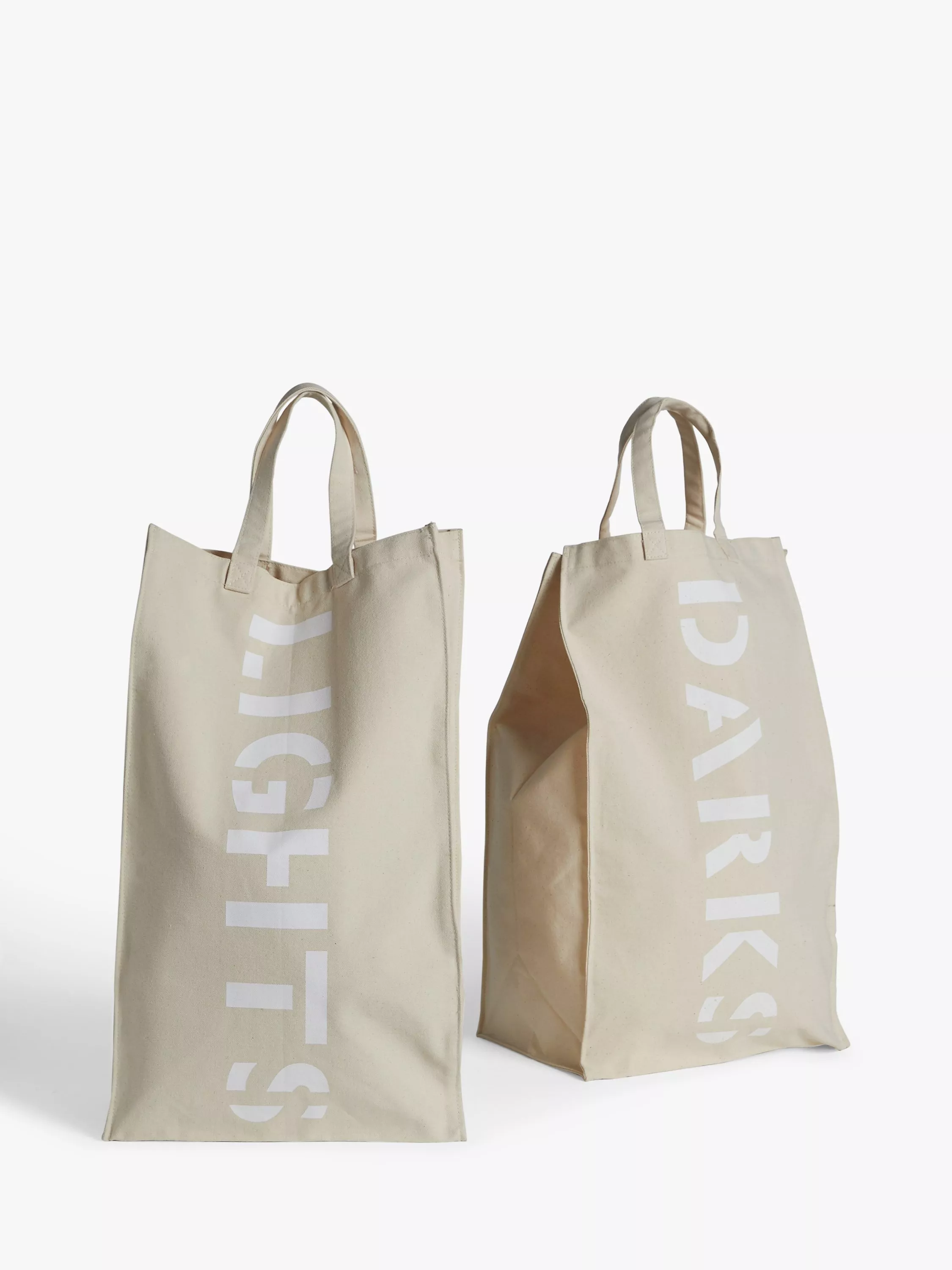 A pair of handy cotton blend totes, clearly marked to make laundry separation easy.
