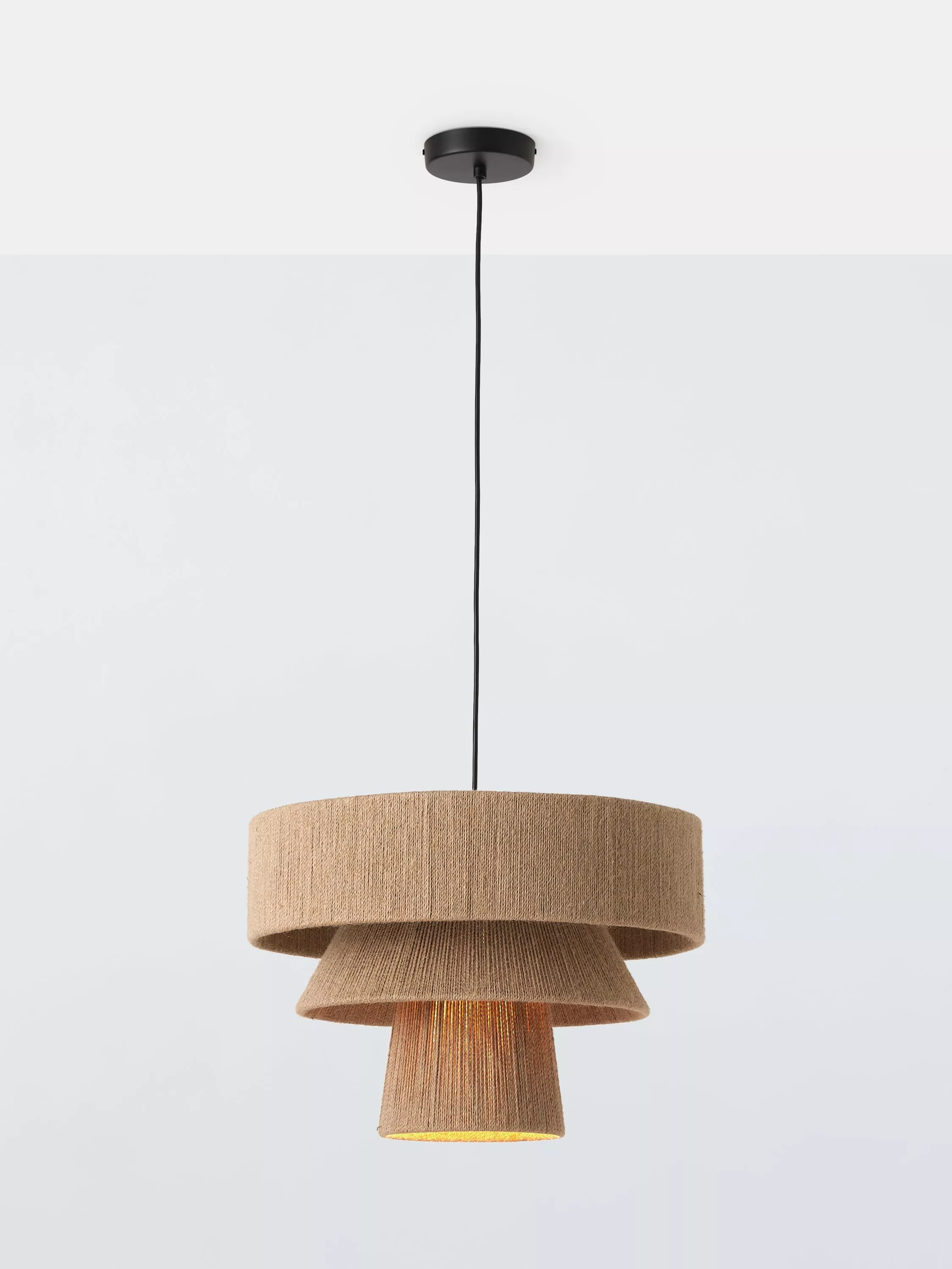 Introduce some texture to your home with this layered rope ceiling pendant. Designed with multiple tiers of natural jute rope, this pendant light creates a dynamic, eye-catching look that adds both warmth and sophistication to any space. The layers of rope gently diffuse light, casting a soft, inviting glow. Great for living rooms, dining areas and bedrooms.