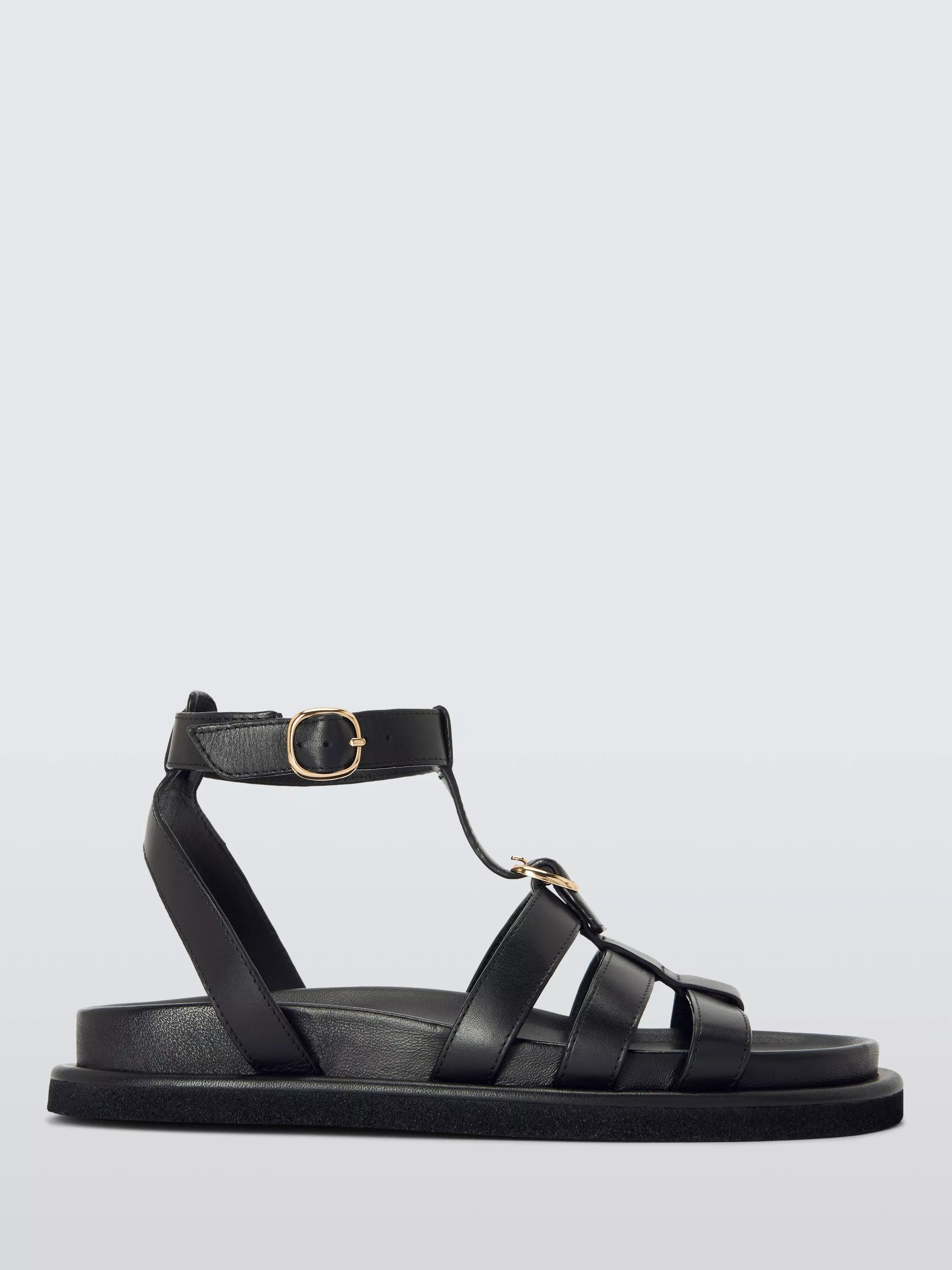 A staple for holidays and your summer wardrobe, these open-toe gladiator sandals have a leather upper with a gold-toned buckle detail. The flatform lower sole and ergonomic upper sole ensure wear-all-day comfort.
