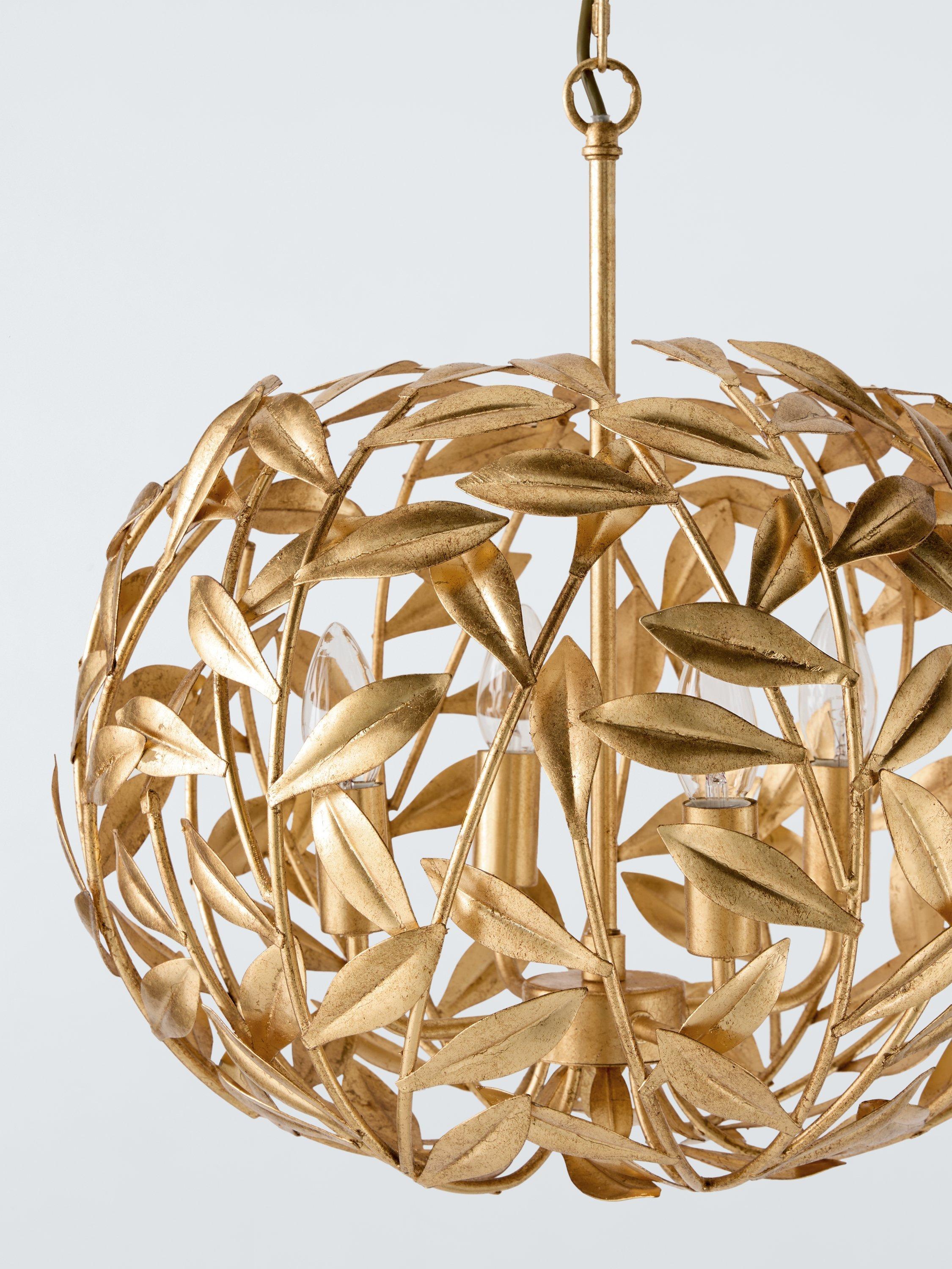 This four-bulb pendant features beautifully crafted decorative leaves in a gold-toned finish. A wonderful choice for a unique focal point and touch of opulence for a room.