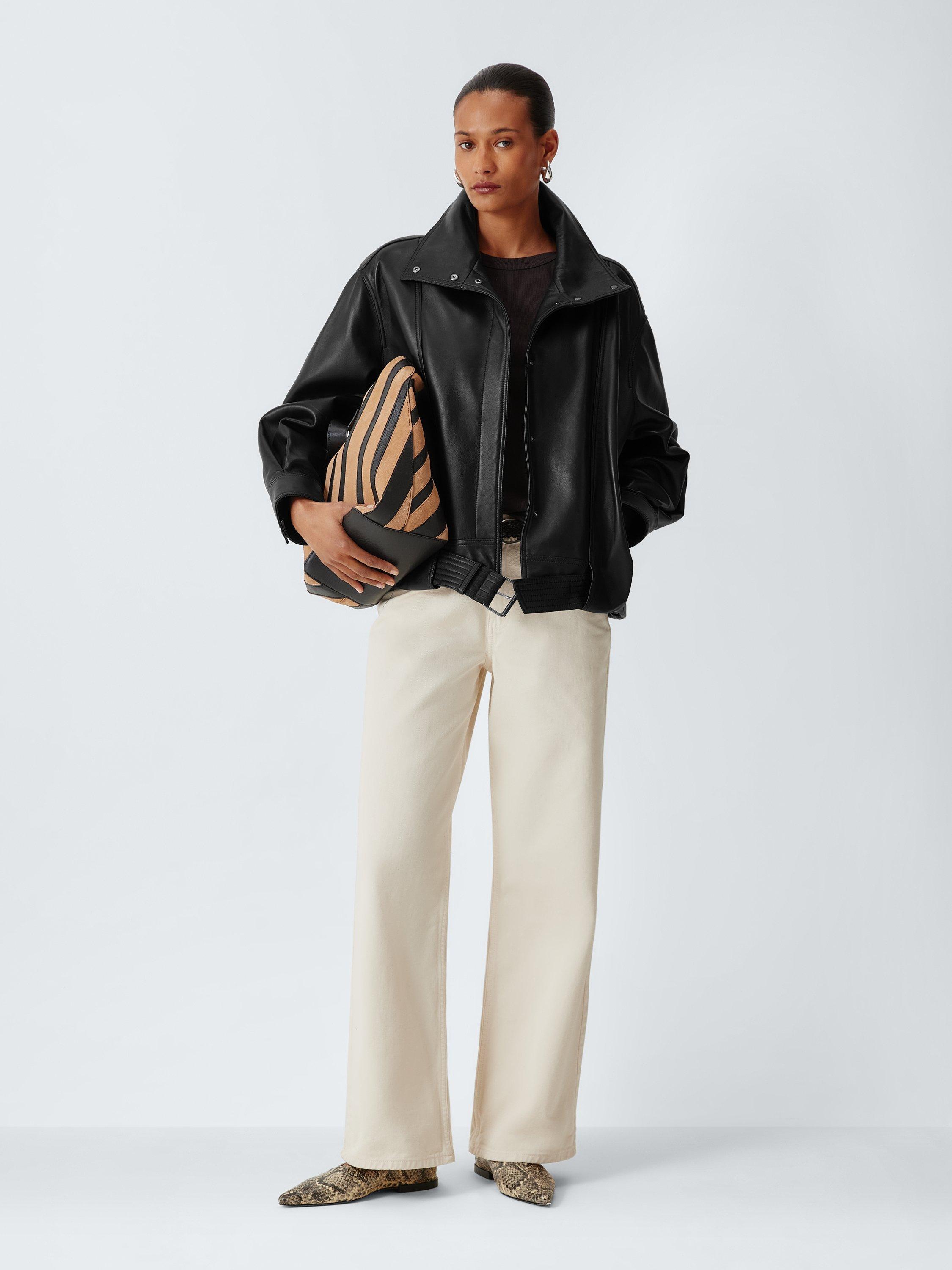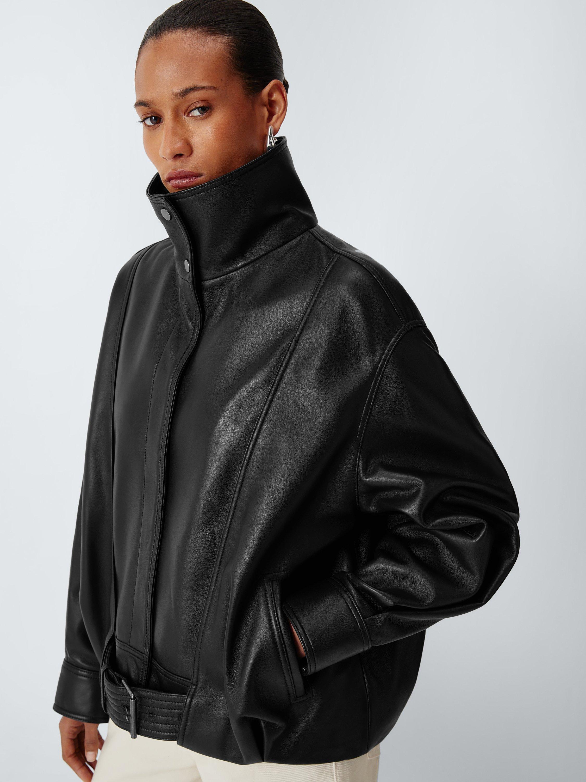 John LewisLeather Bomber Jacket, Black
