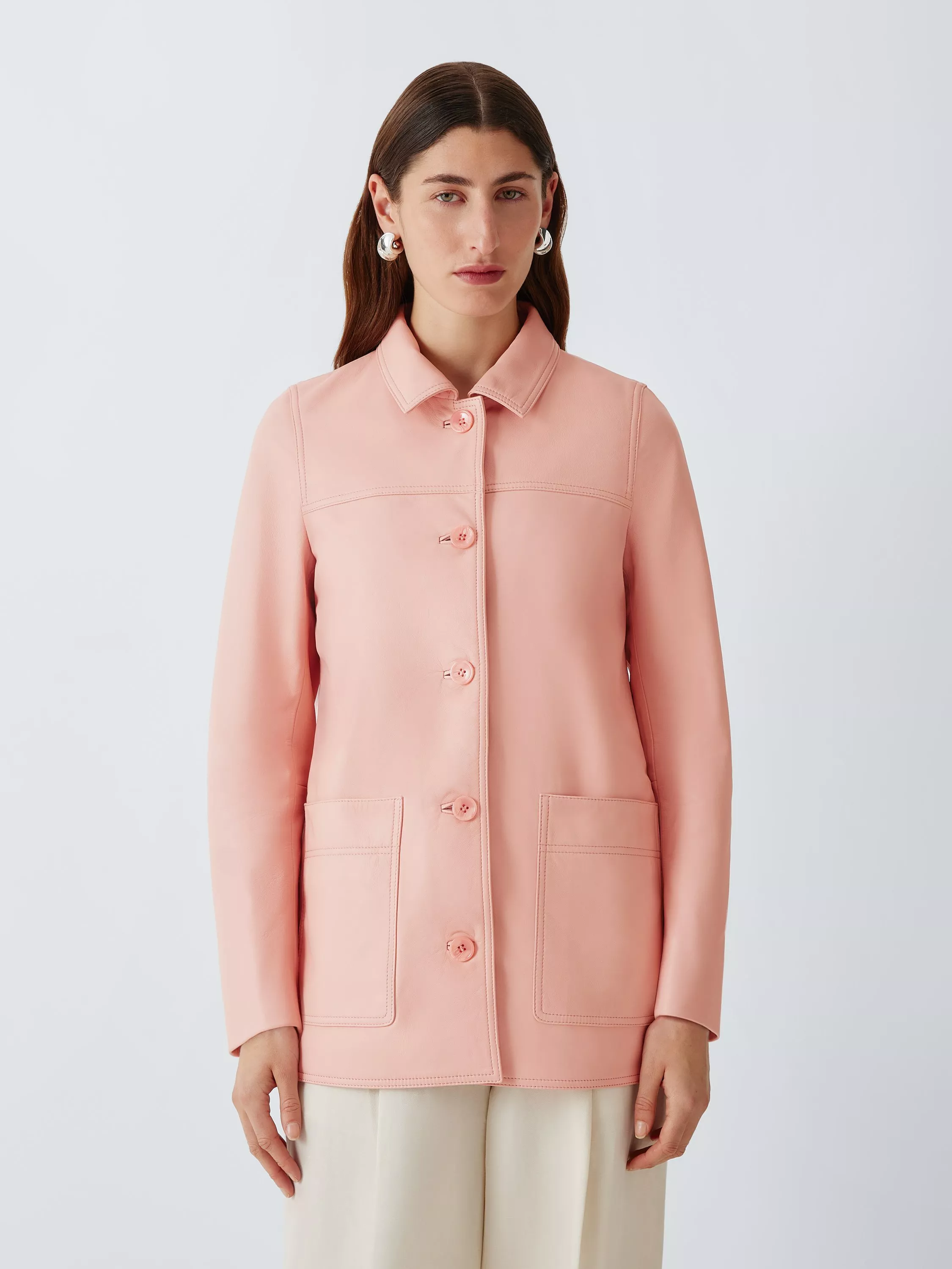 Utility meets luxury in this reimagined chore jacket, fully lined and crafted from soft leather to ensure the structured silhouette holds its shape while offering a supple, premium feel. The chest seam and oversized patch pockets provide a modern nod to heritage workwear. A confident choice for effortless layering, designed to bring a sharp, tactile edge to your seasonal wardrobe.