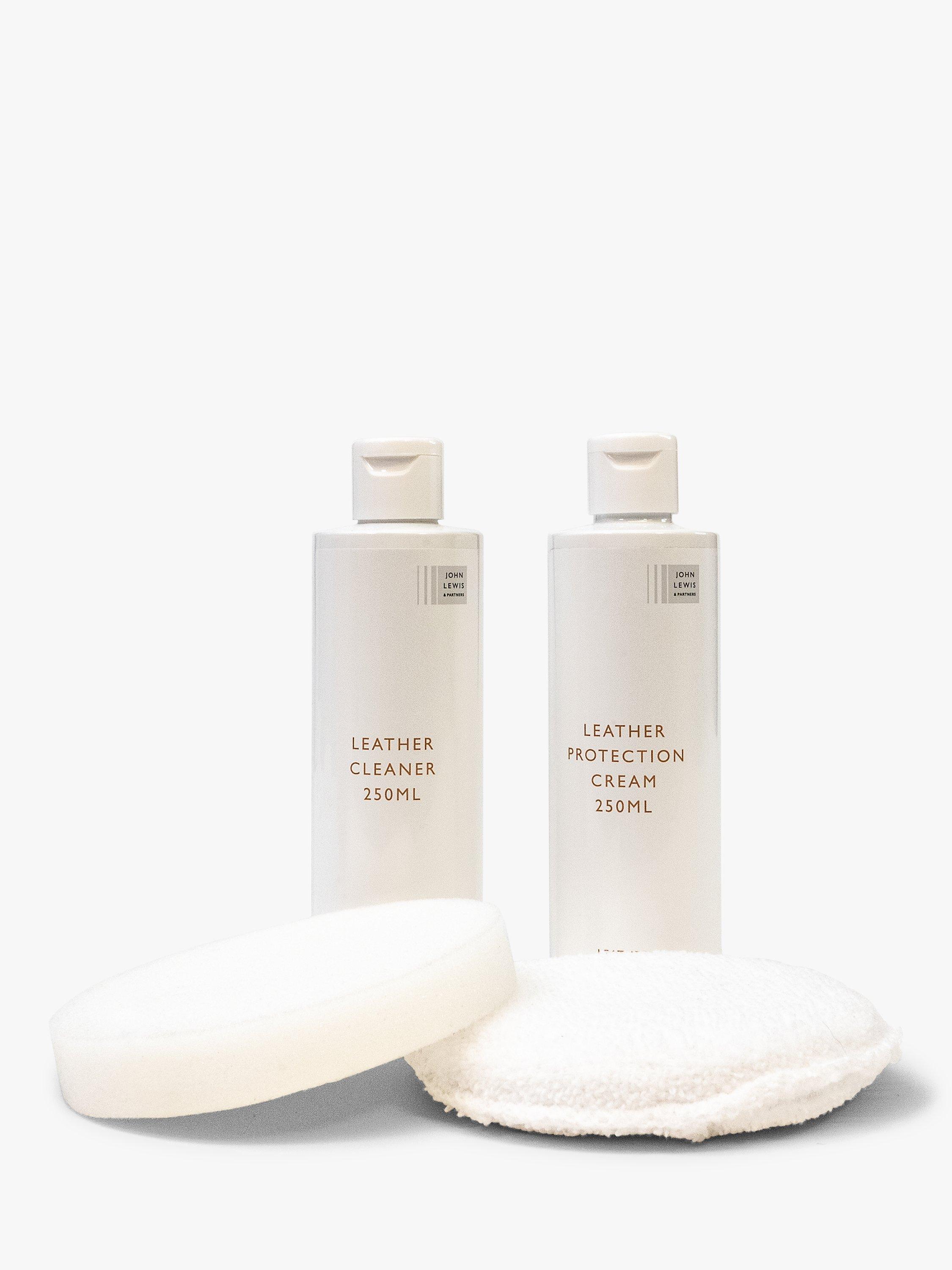 • Be sure to read the instructions fully before using and test the products on a hidden area first. The leather cleaner and protection cream are suitable for use on all our own John Lewis & Partners leathers, but not for suede or nubuck.