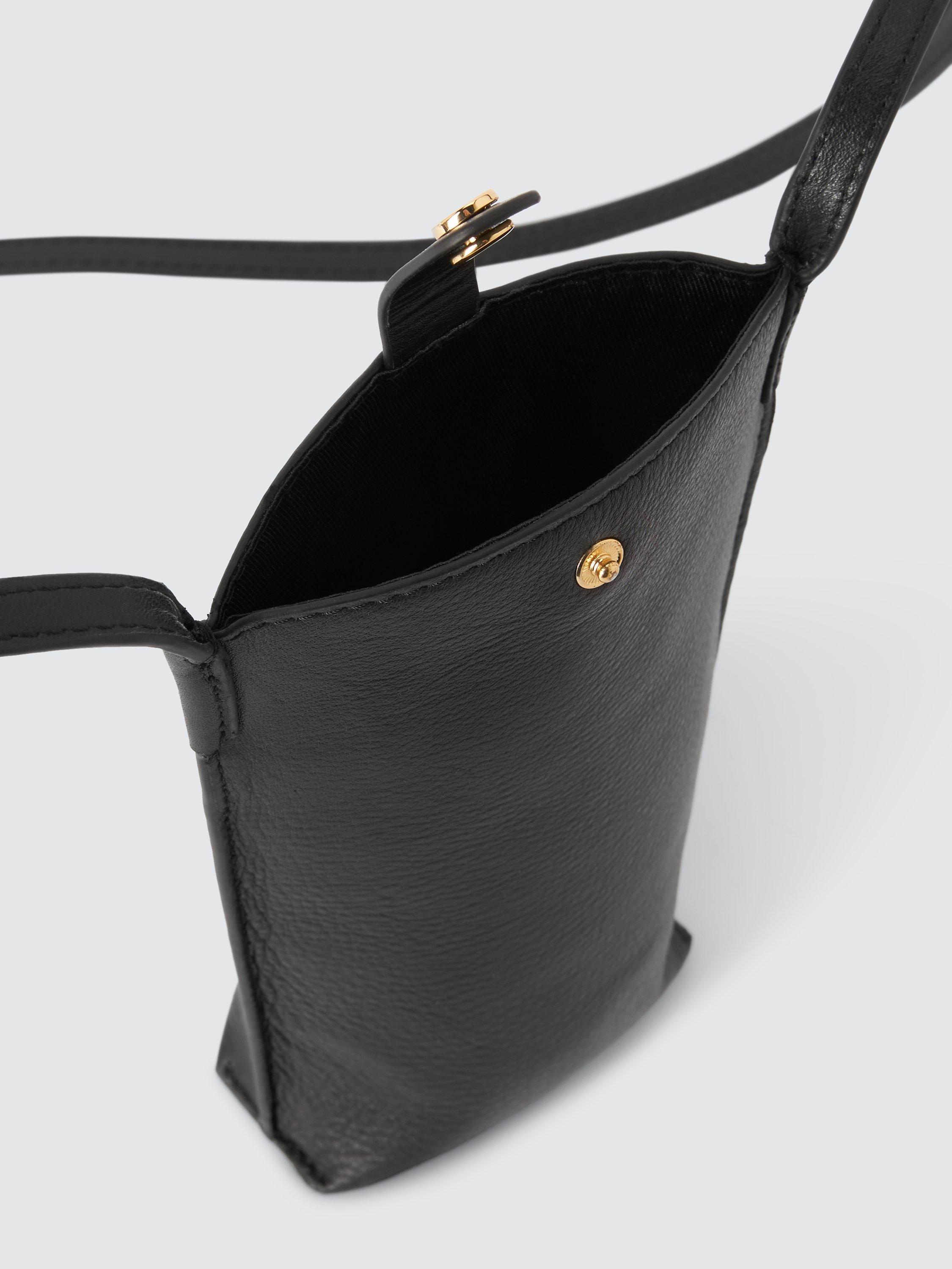 For those days when your phone is the only essential you need, complete your outfit with this sleek phone pouch. The delicate strap allows it to be carried over your shoulder while the pouch fastens securely with a press stud.