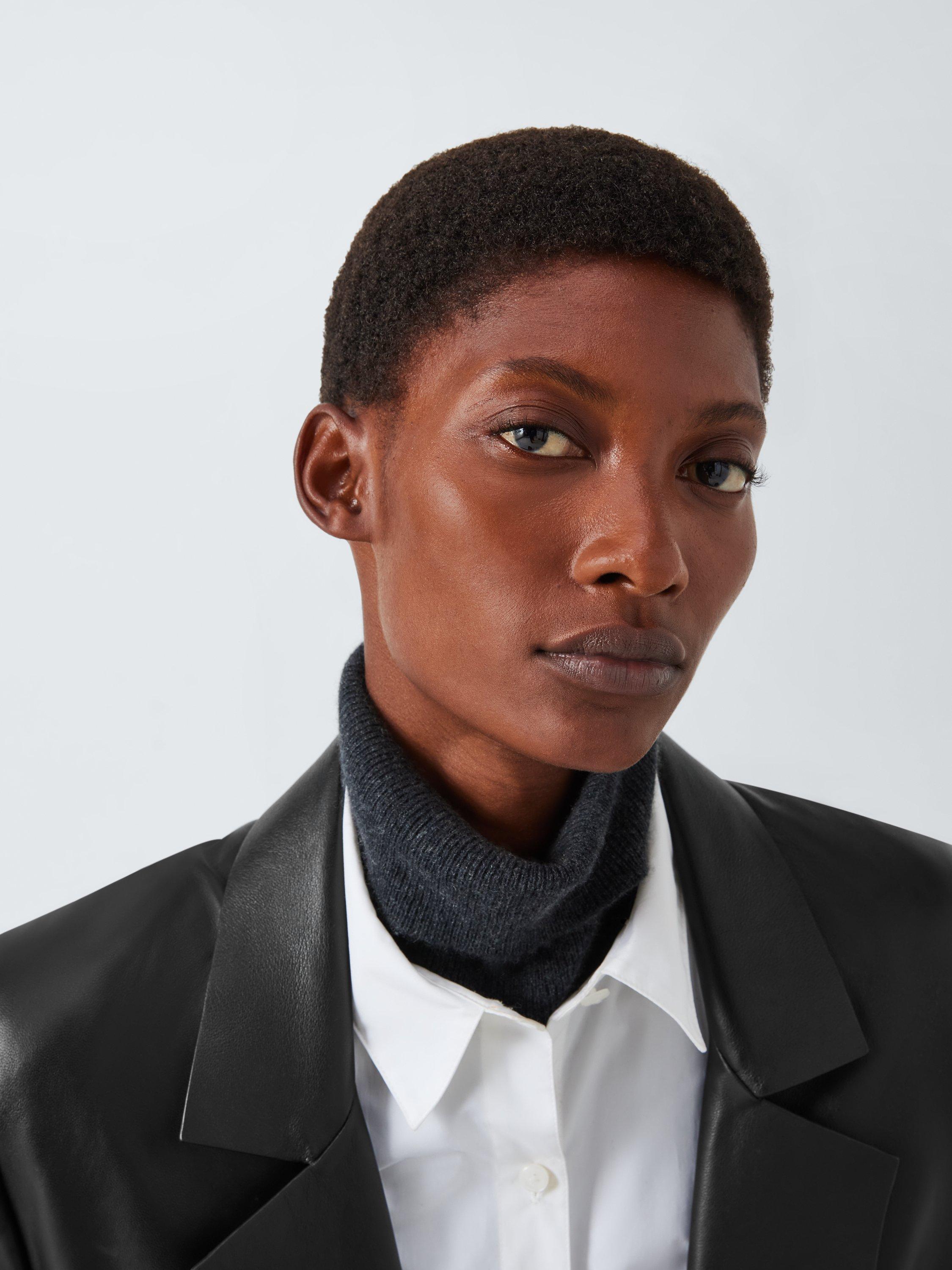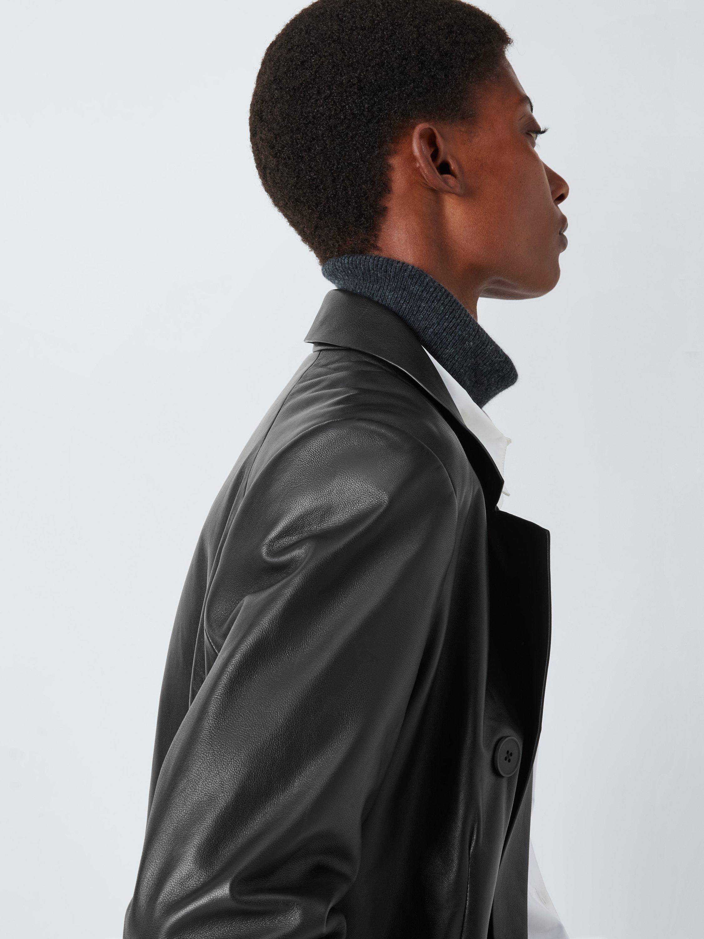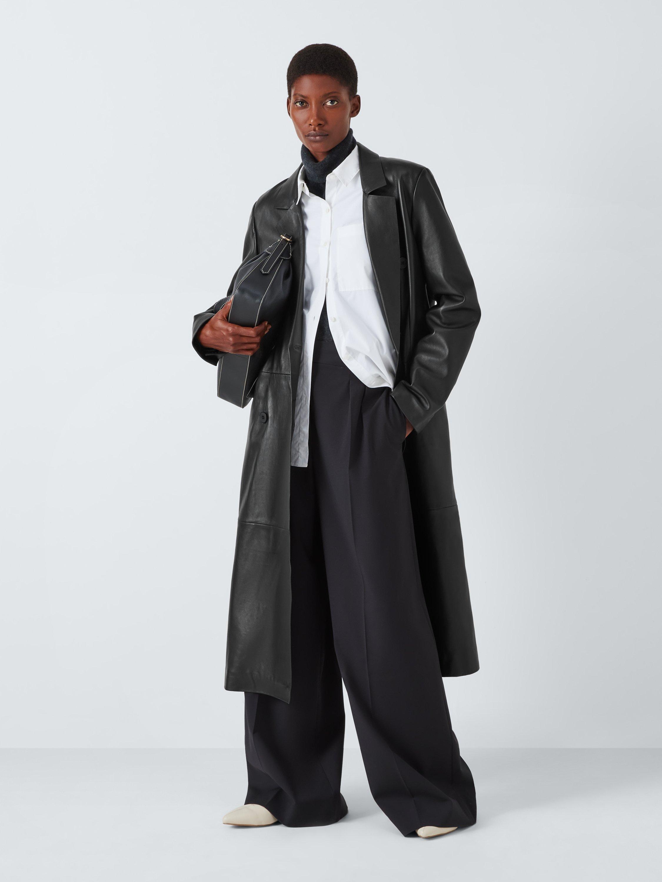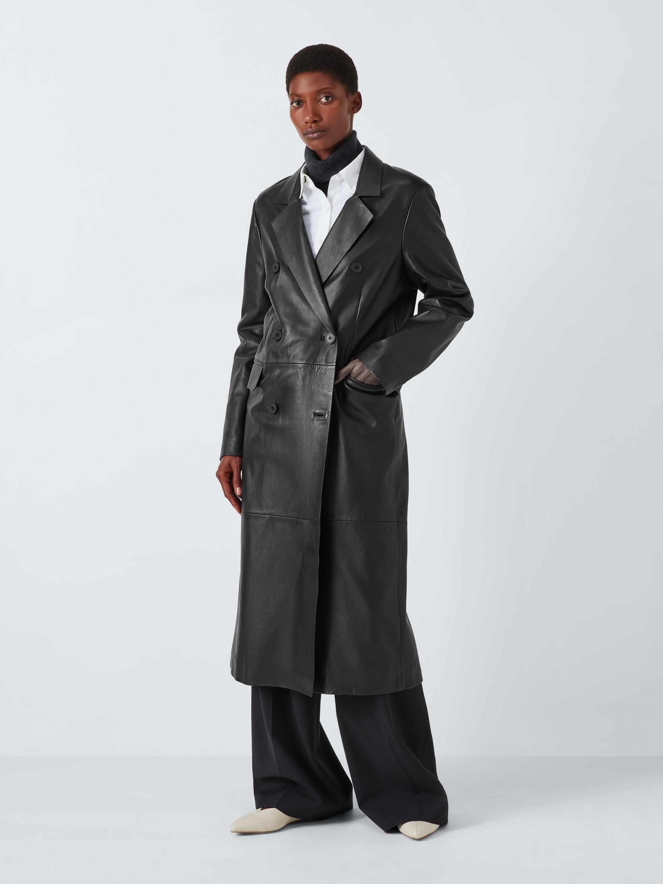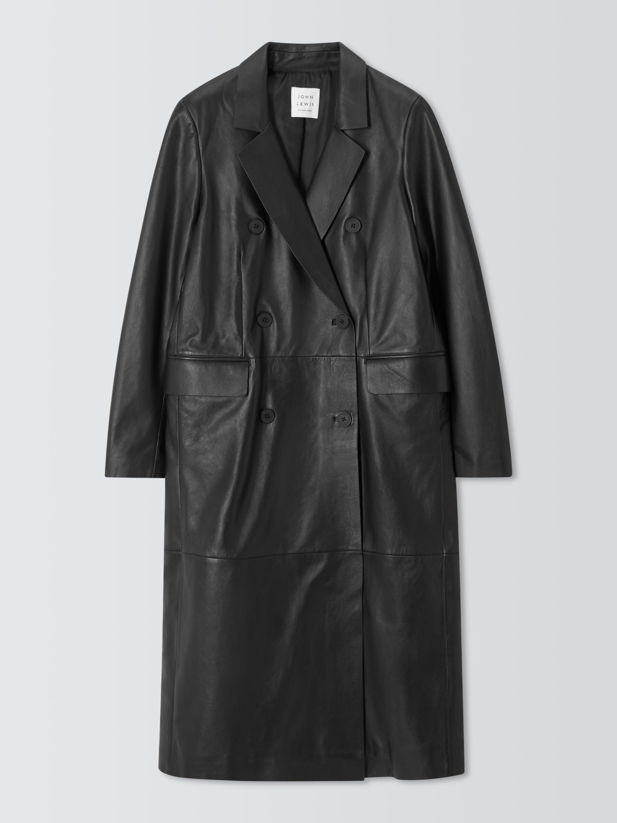John LewisLeather Double Breasted Long Coat, Black