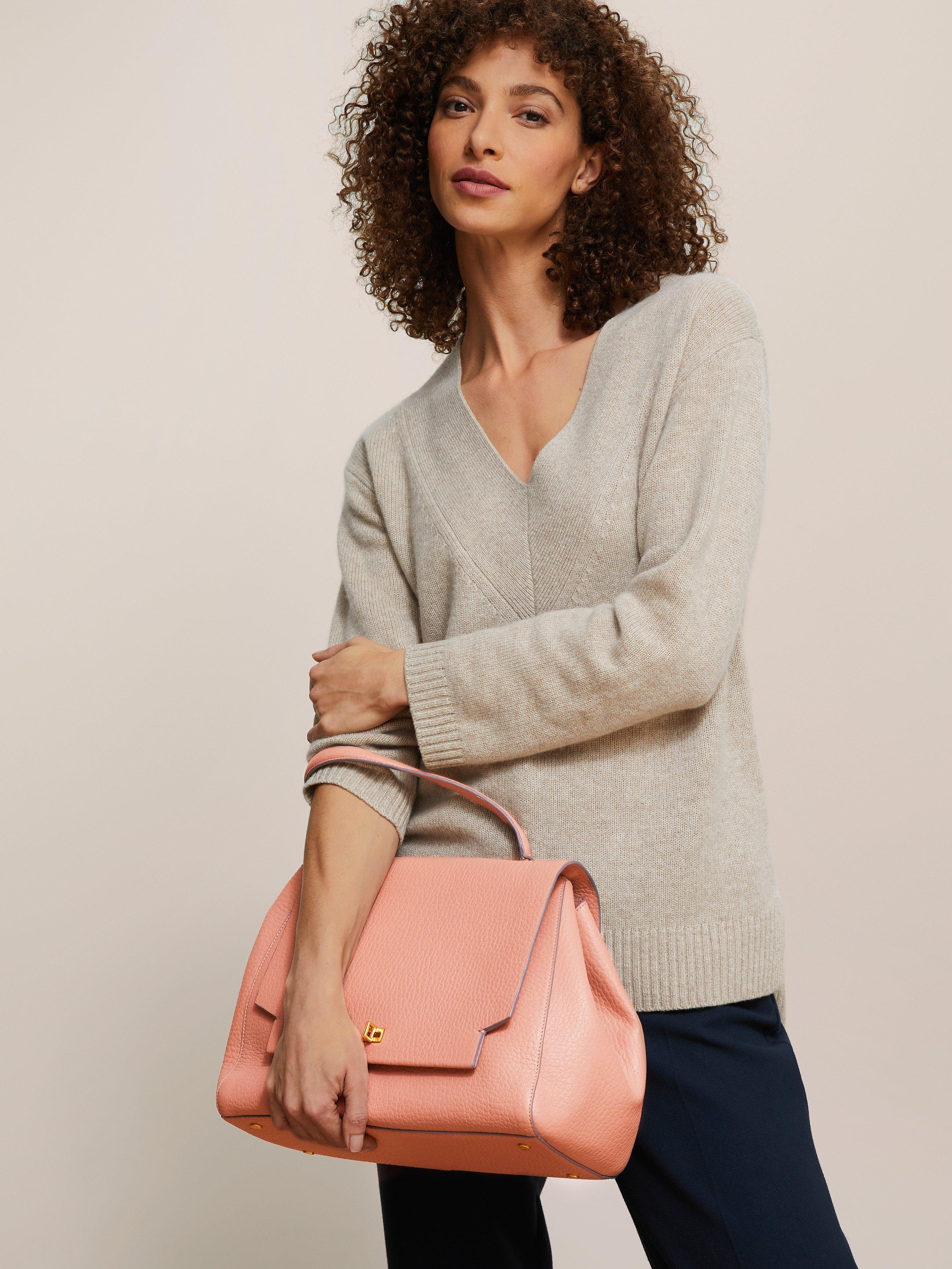 Made from textured leather in a structured, easy shape the bag opens to reveal a spacious main compartment with a useful zip pocket to keep you organised on the go.